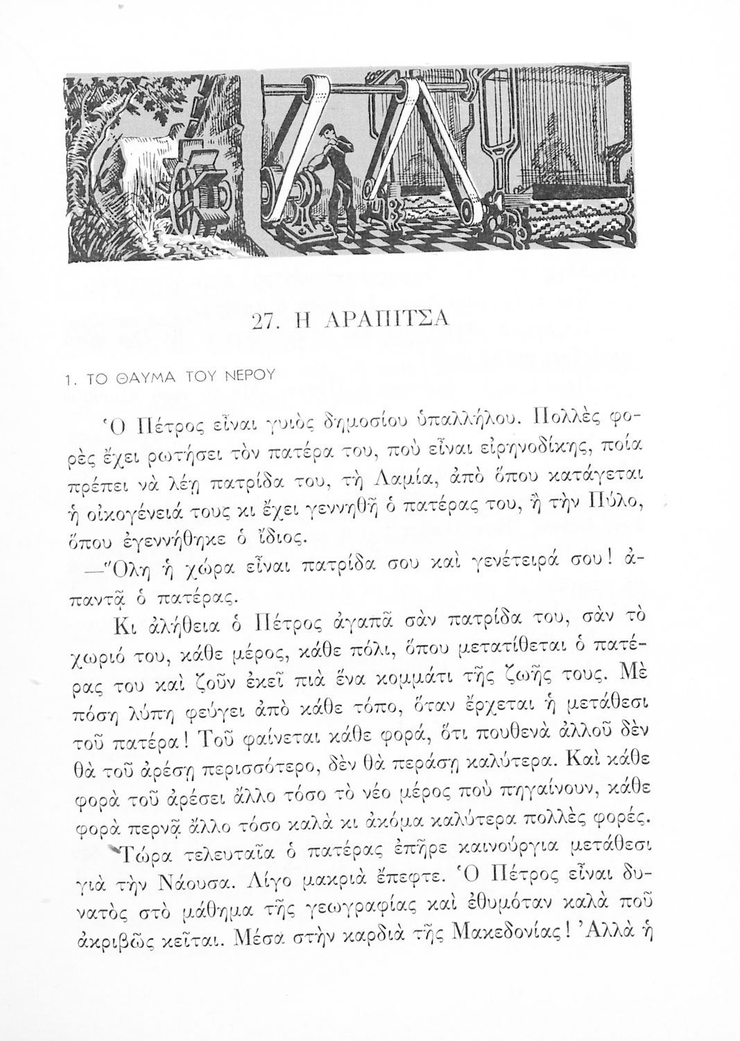 Αναγνωστικό Ε΄ Δημοτικού που περιέχει κείμενα εμπνευσμένα από την εθνική, κοινωνική και οικογενειακή ζωή και την ελληνική φύση, μυθολογία και ιστορία.