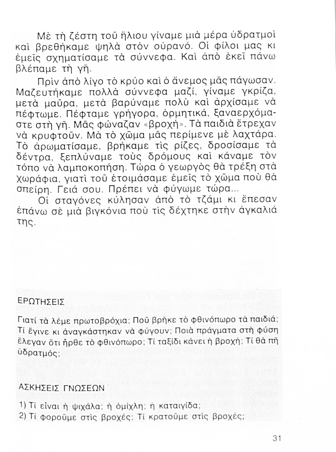 Αναγνωστικό Γ' Δημοτικού που είναι χωρισμένο σύμφωνα με τις εποχές του χρόνου και περιλαμβάνει ποιήματα και πεζά εμπνευσμένα από τη ζωή στην ύπαιθρο, την εθνική, οικογενειακή και κοινωνική ζωή, τη θρησκευτική ...