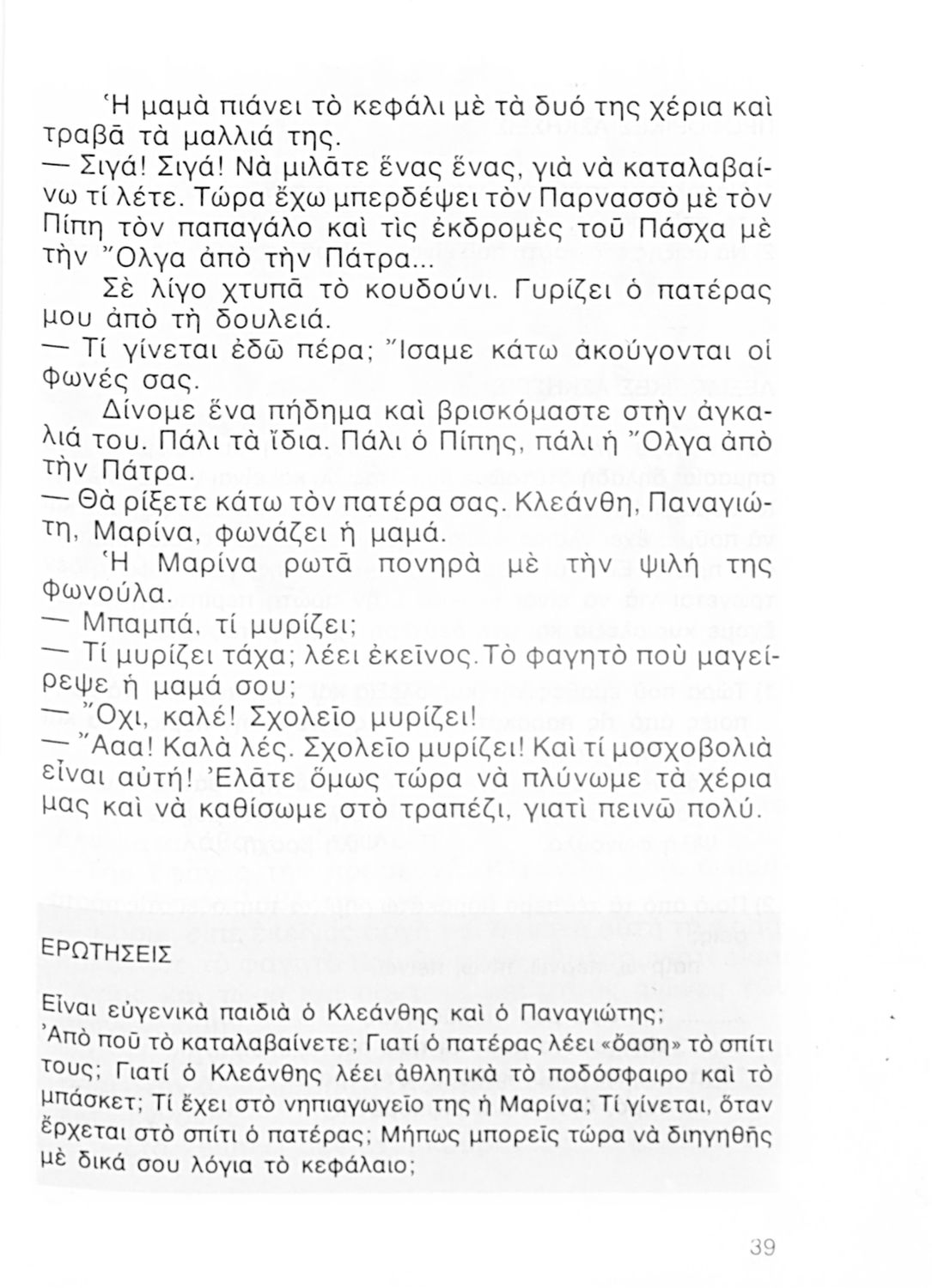 Αναγνωστικό για τους μαθητές της Γ΄ και Δ΄ Δημοτικού που περιλαμβάνει με πεζά και ποιήματα της νέας ελληνικής λογοτεχνίας εμπνευσμένα από την καθημερινότητα των παιδιών και των οικογενειών τους, την ελληνική ...