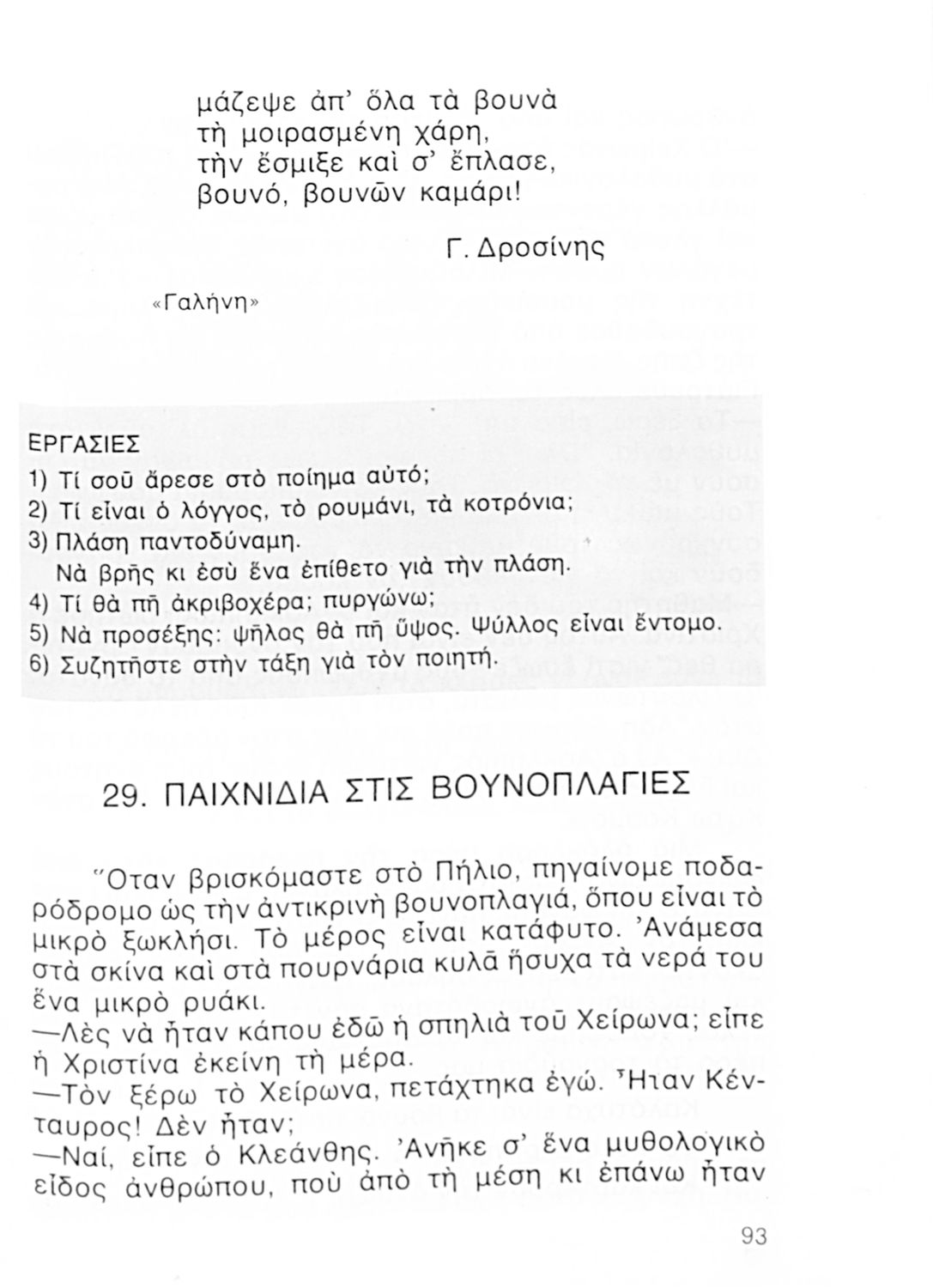 Αναγνωστικό Γ' Δημοτικού που είναι χωρισμένο σύμφωνα με τις εποχές του χρόνου και περιλαμβάνει ποιήματα και πεζά εμπνευσμένα από τη ζωή στην ύπαιθρο, την εθνική, οικογενειακή και κοινωνική ζωή, τη θρησκευτική ...