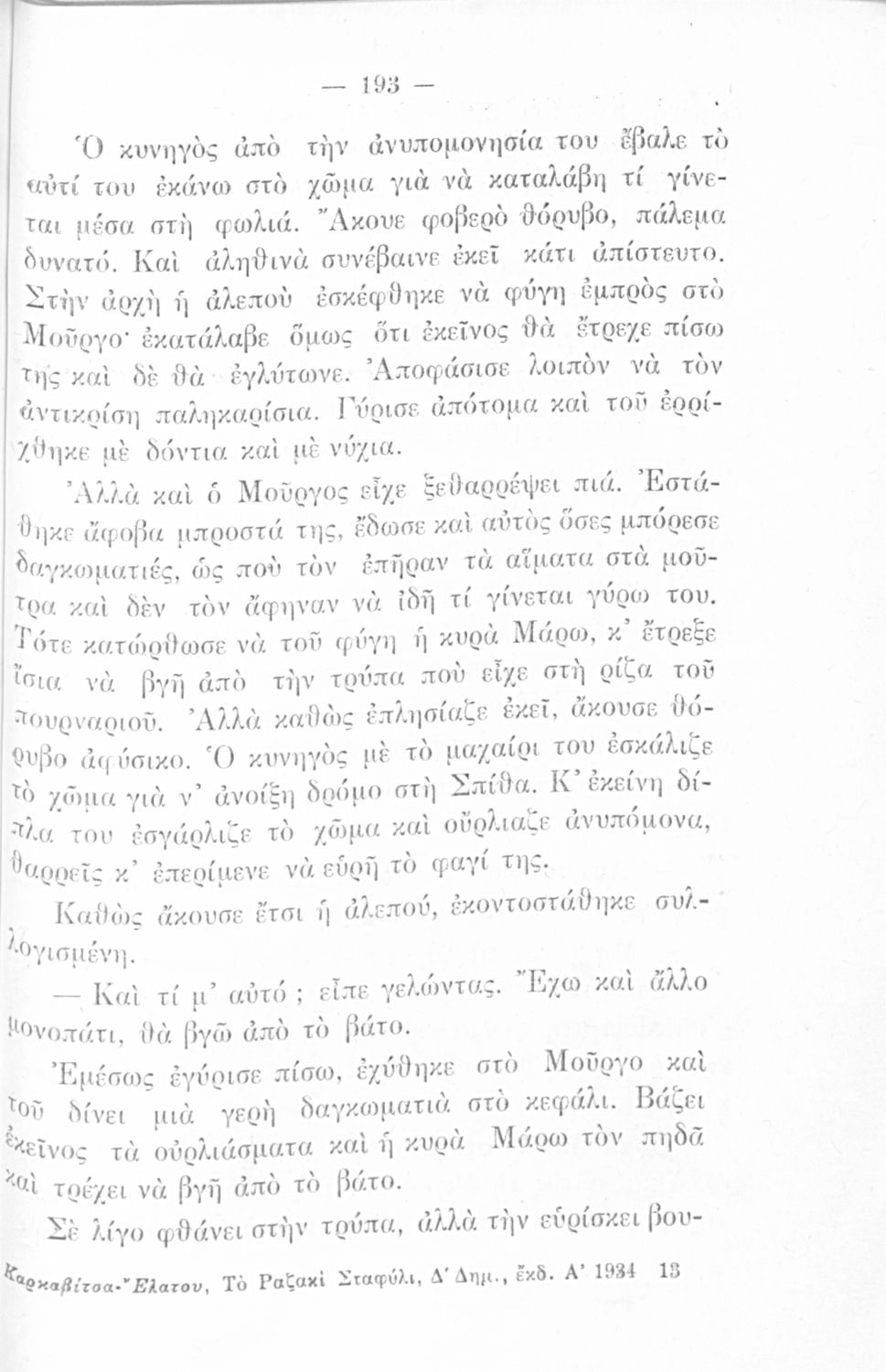Αναγνωστικό Δ΄ Δημοτικού που περιέχει πεζά και ποιήματα με περιεχόμενο διδακτικό και ηθικοπλαστικό εμπνευσμένα από την ελληνική ιστορία και μυθολογία, και την αγροτική και κοινωνική ζωή.