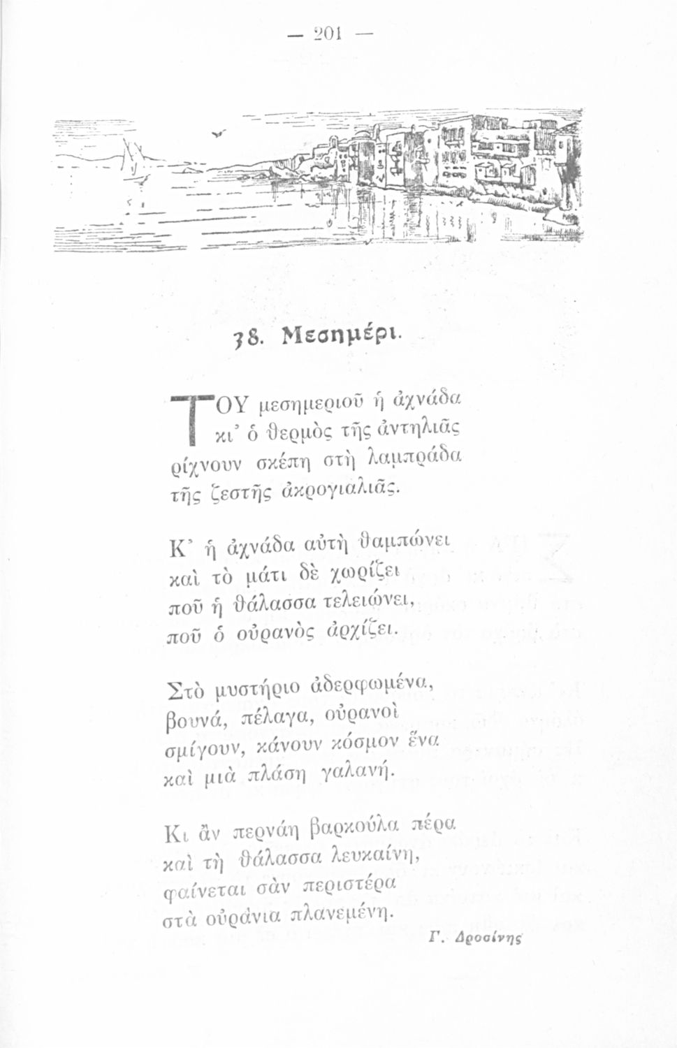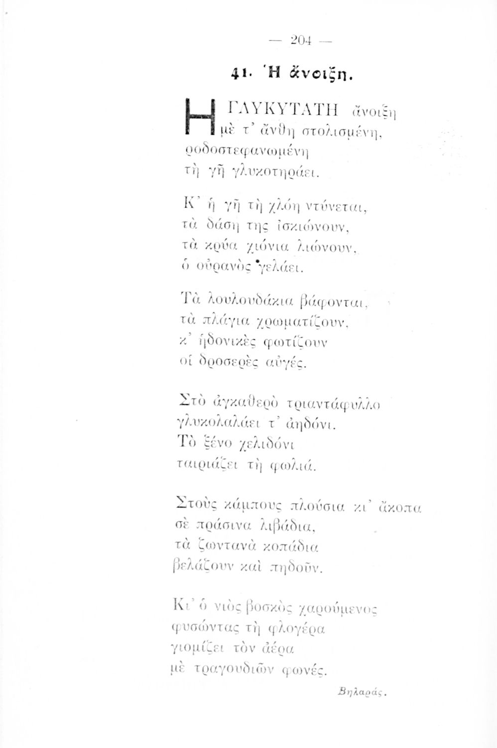 Αναγνωστικό για την Δ΄ τάξη του Δημοτικού. Περιλαμβάνει ένα κείμενο στο οποίο παρεμβάλλονται ποιήματα δημοτικά και Ελλήνων ποιητών.