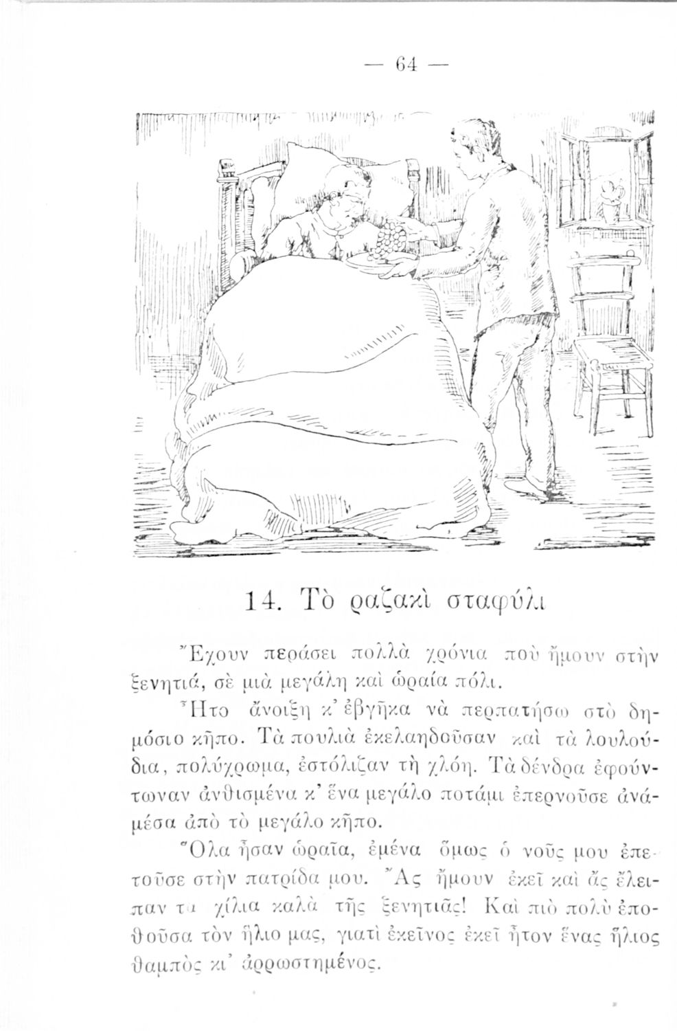 Αναγνωστικό Δ΄ Δημοτικού που περιέχει πεζά και ποιήματα με περιεχόμενο διδακτικό και ηθικοπλαστικό εμπνευσμένα από την ελληνική ιστορία και μυθολογία, και την αγροτική και κοινωνική ζωή.