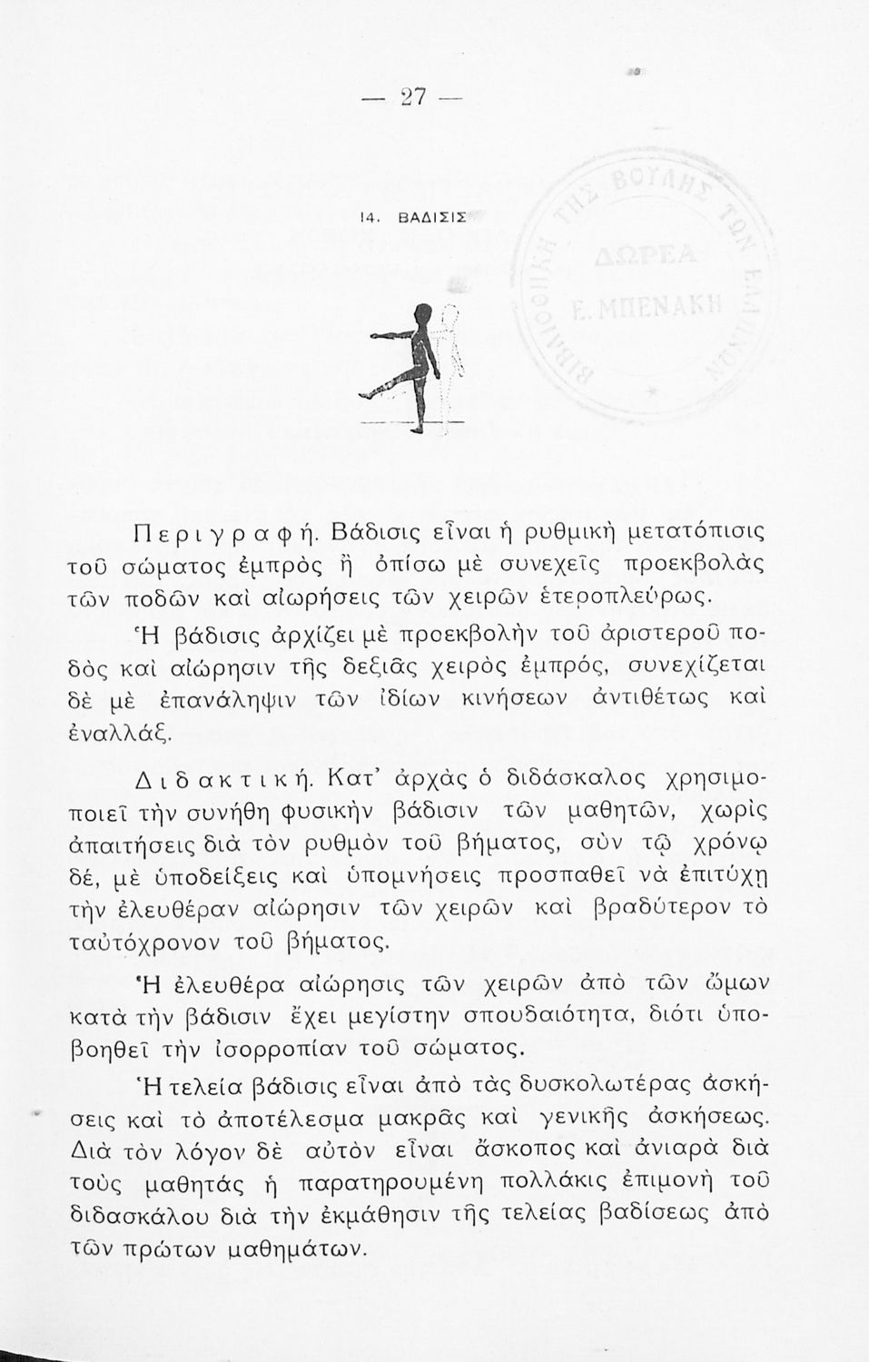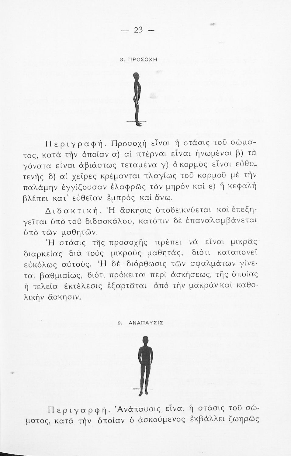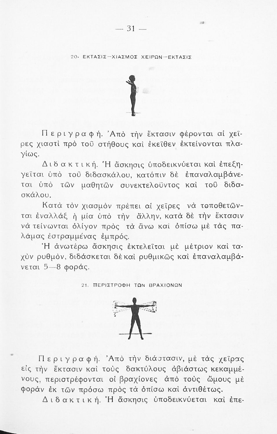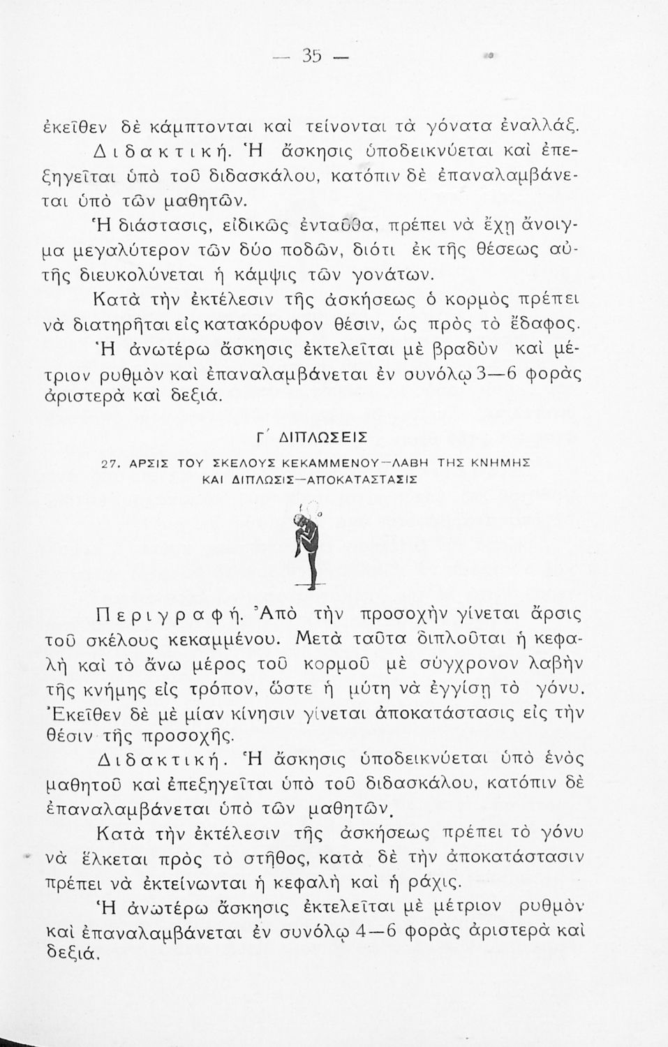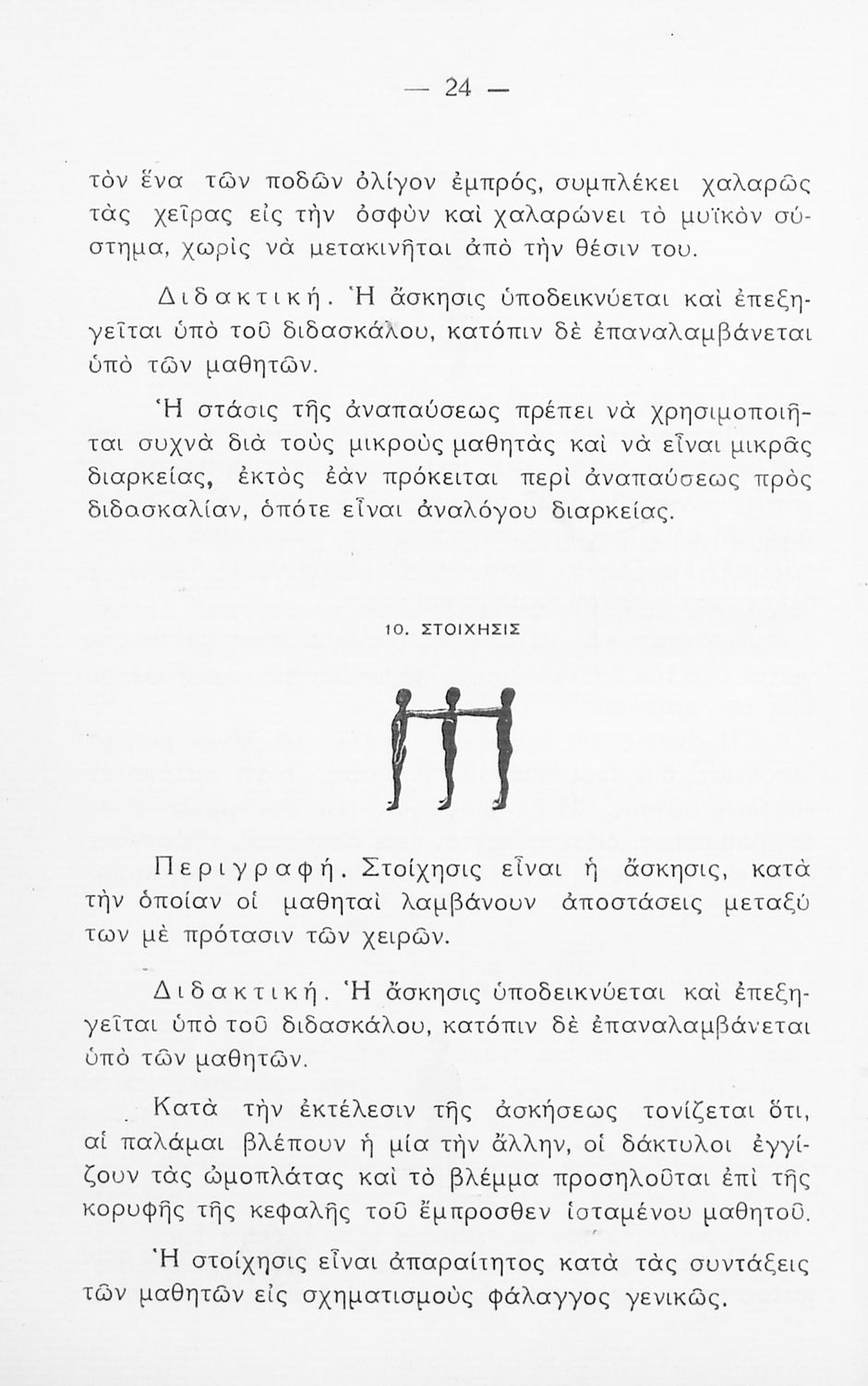 Παιδαγωγικό βοήθημα Γυμναστικής για τις Α' και Β' Δημοτικού που περιέχει θεωρεία και εικόνες και βασίζεται στις αρχές της Σουηδικής Γυμναστικής. Στο πρόλογο δεν παραλείπεται η σύνδεση της γυμναστικής με τους Αρχαίους Έλληνες.