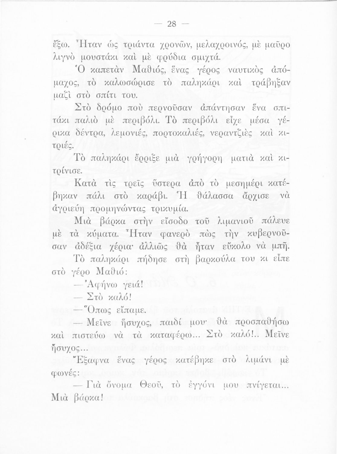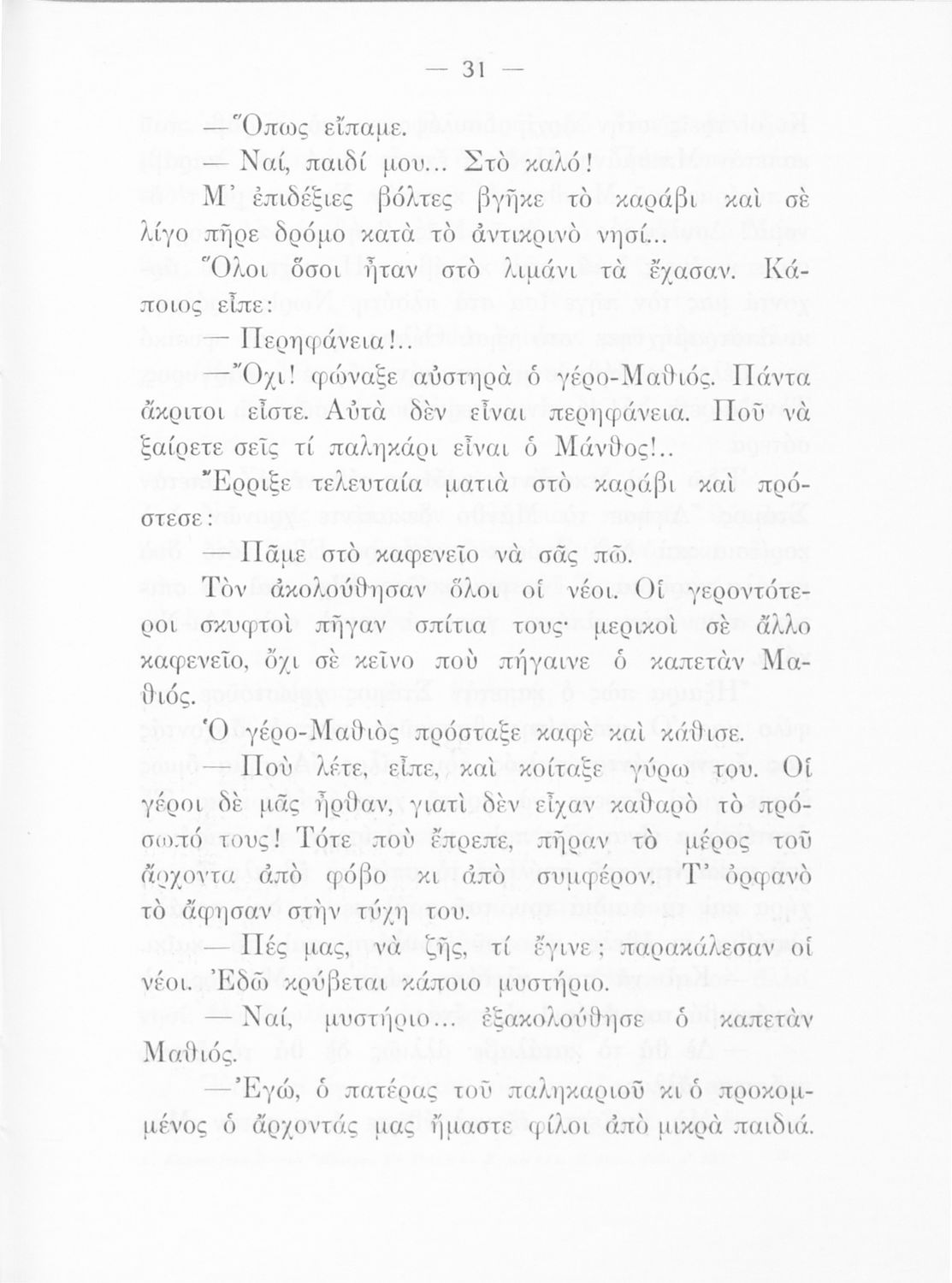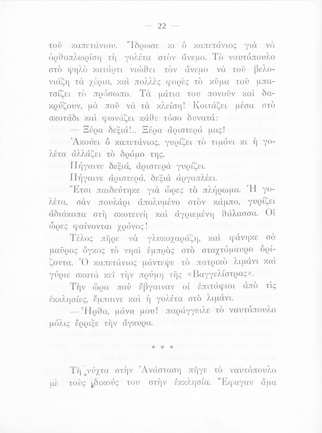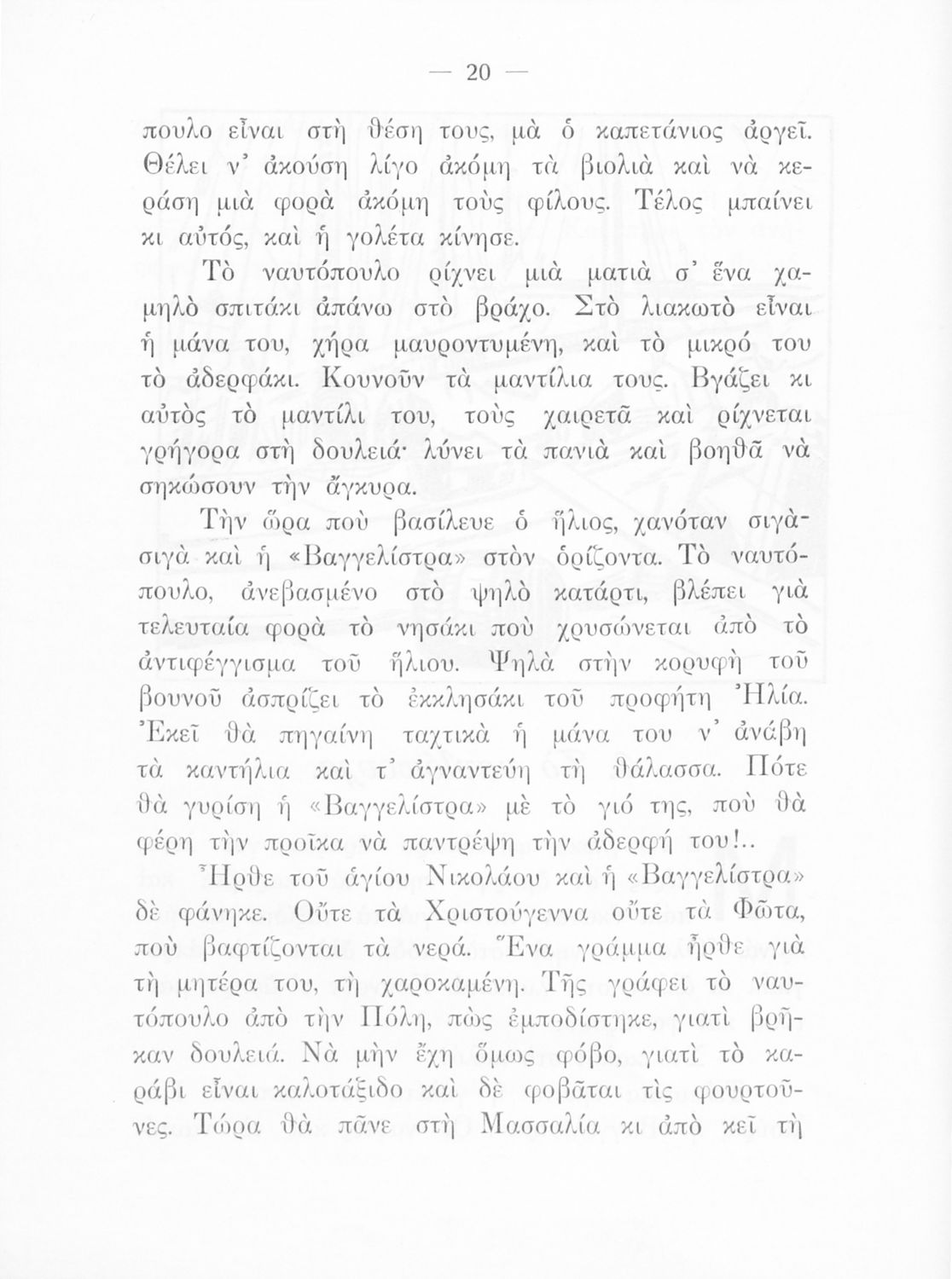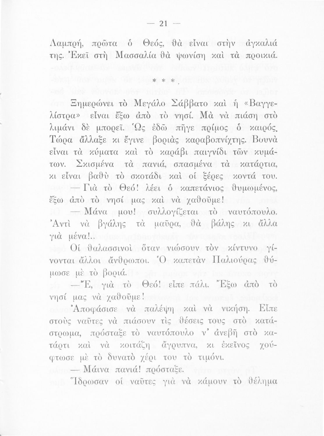 Αναγνωστικό για την Δ΄ τάξη του Δημοτικού. Περιλαμβάνει ένα κείμενο στο οποίο παρεμβάλλονται ποιήματα δημοτικά και Ελλήνων ποιητών.