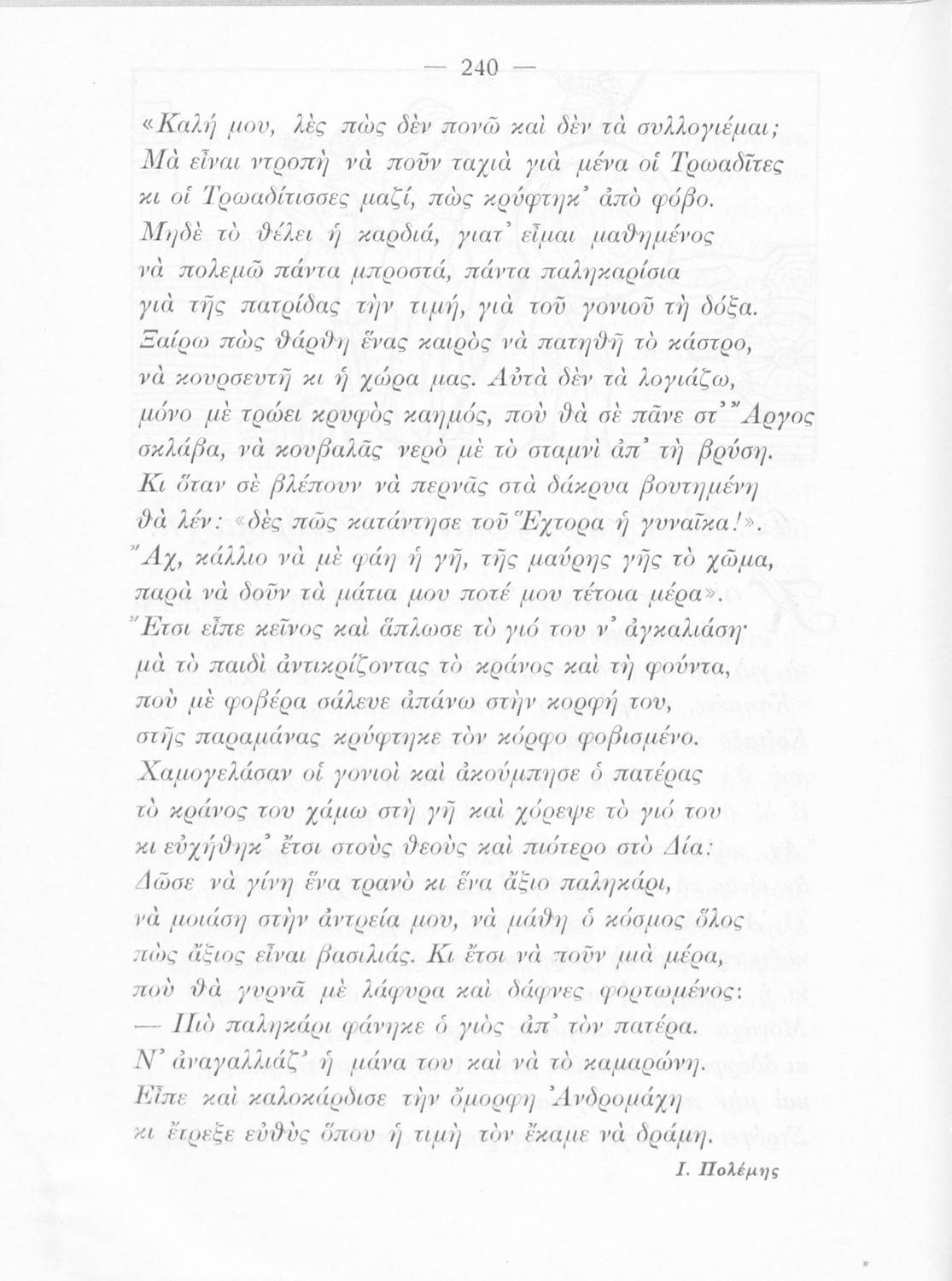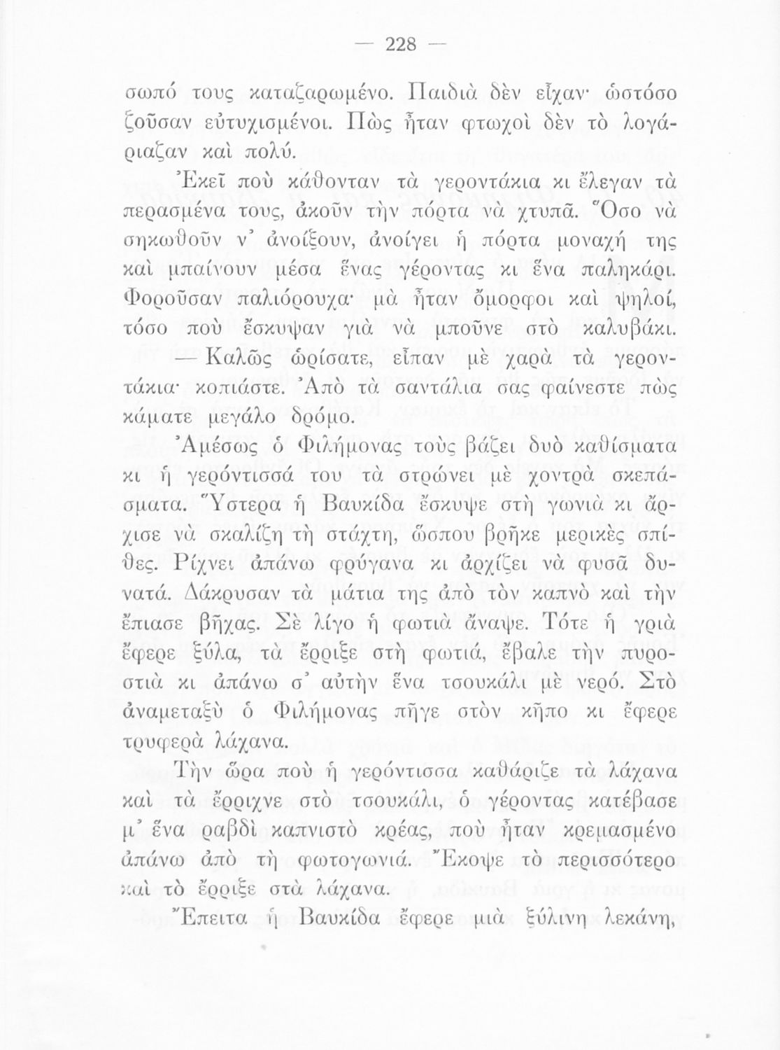 Αναγνωστικό Δ΄ Δημοτικού που περιέχει πεζά και ποιήματα με περιεχόμενο διδακτικό και ηθικοπλαστικό εμπνευσμένα από την ελληνική ιστορία και μυθολογία, και την αγροτική και κοινωνική ζωή.