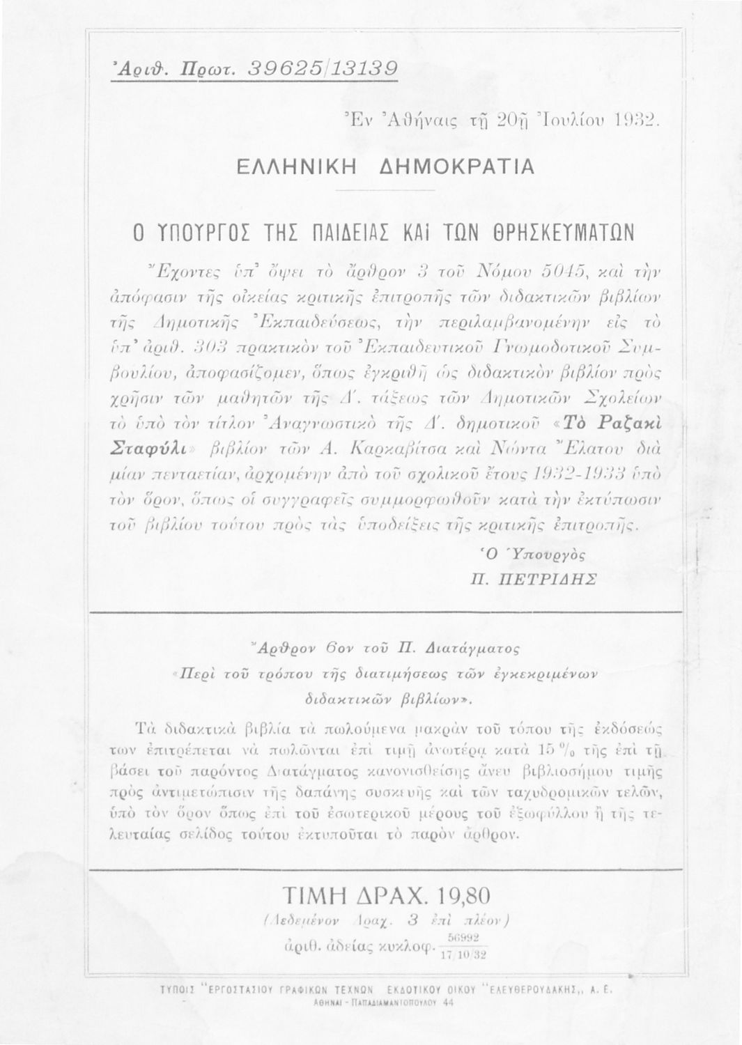 Υπουργική απόφαση / Σύμβαση: 39625-13139/28-7-1932