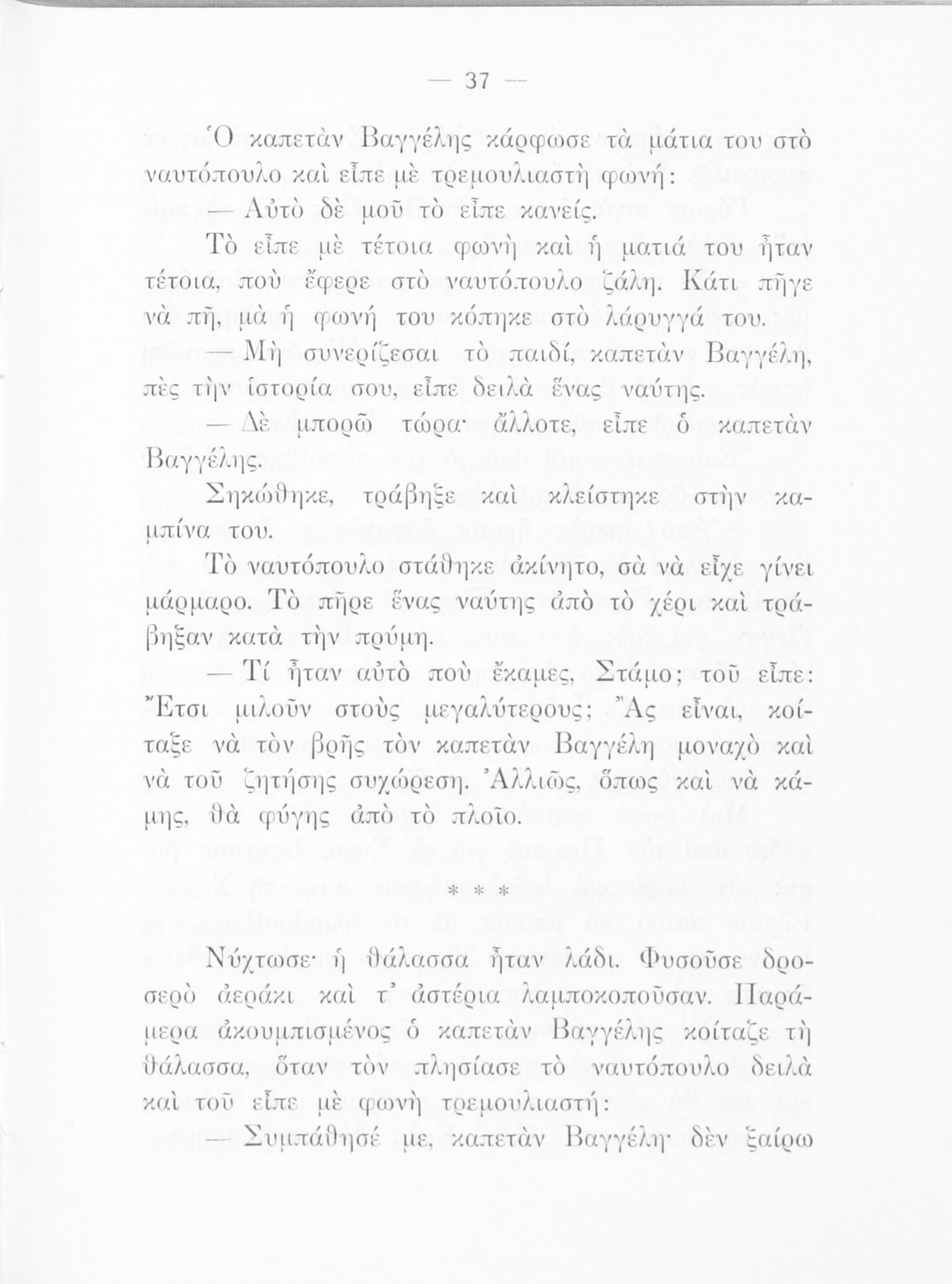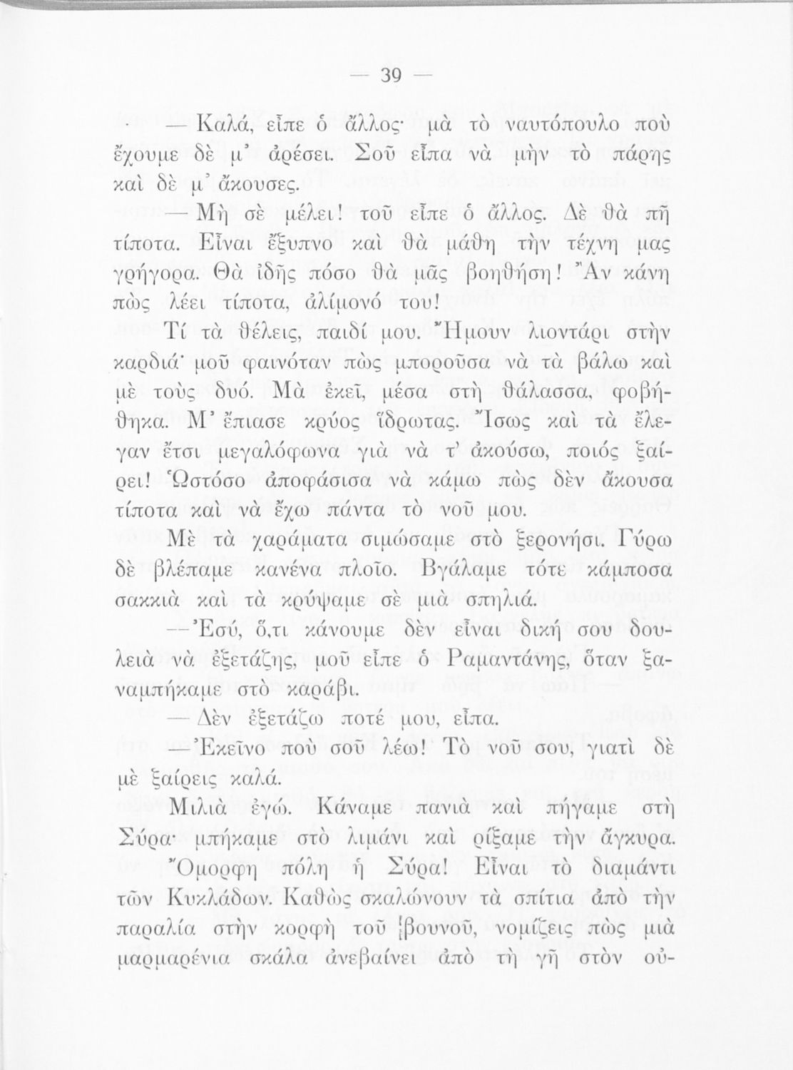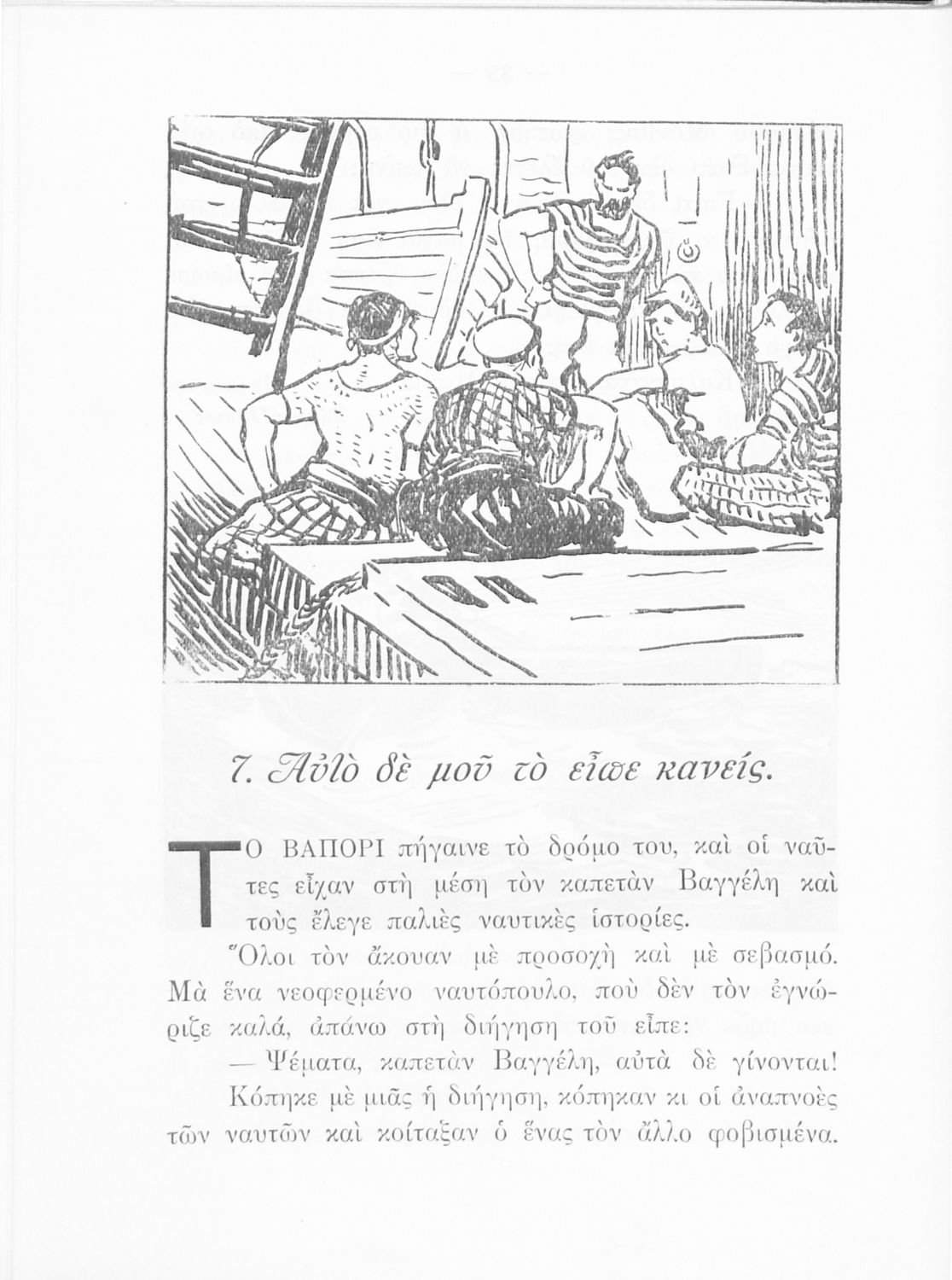 Αναγνωστικό για την Δ΄ τάξη του Δημοτικού. Περιλαμβάνει ένα κείμενο στο οποίο παρεμβάλλονται ποιήματα δημοτικά και Ελλήνων ποιητών.