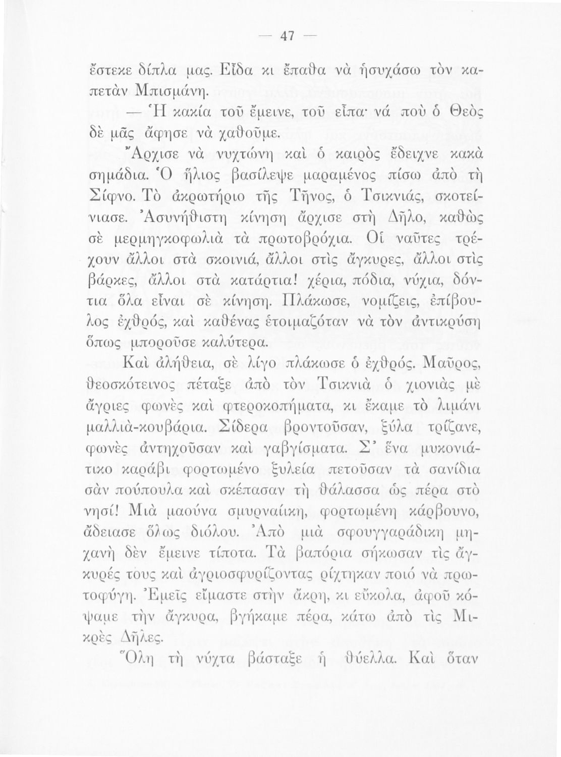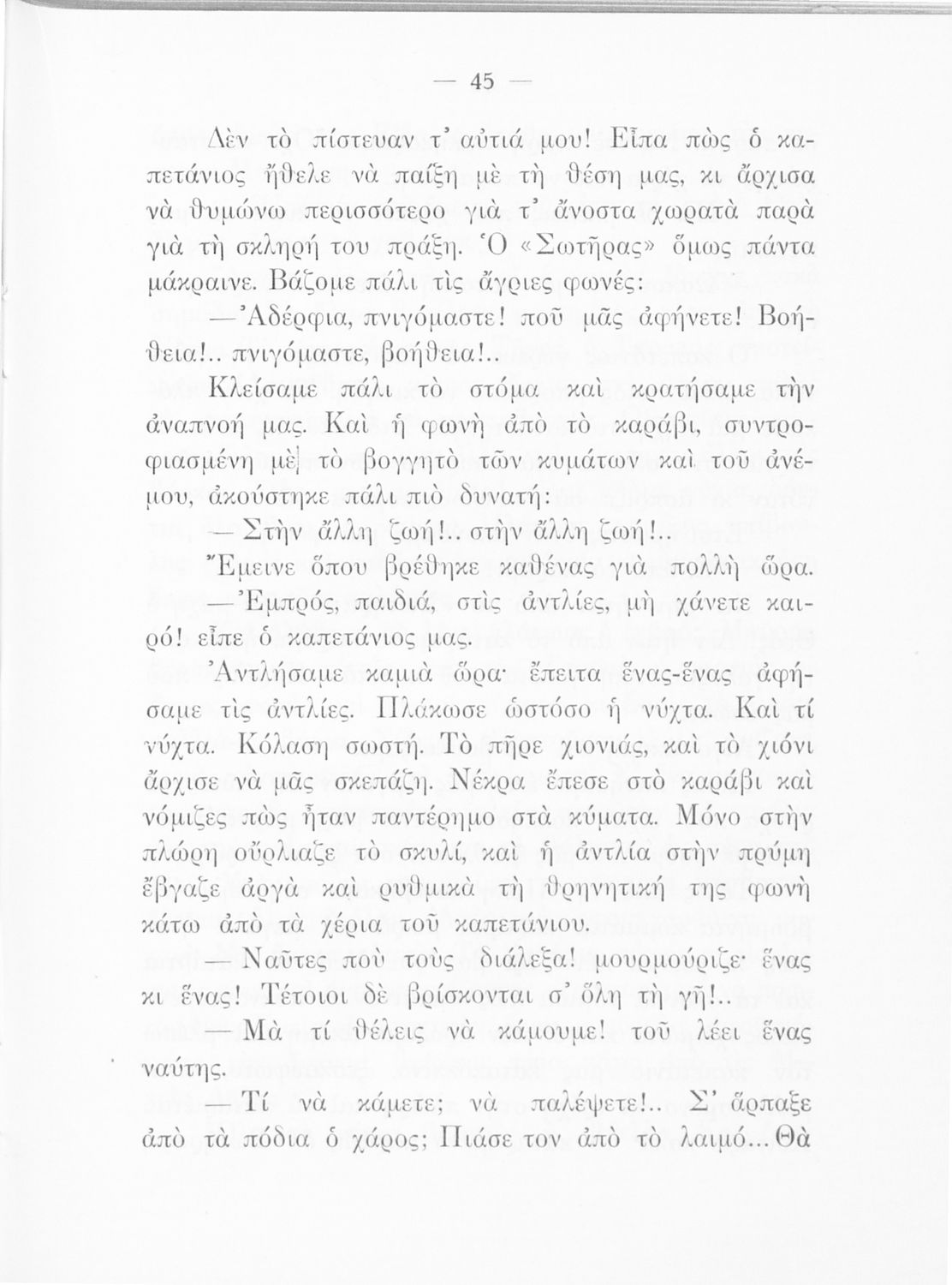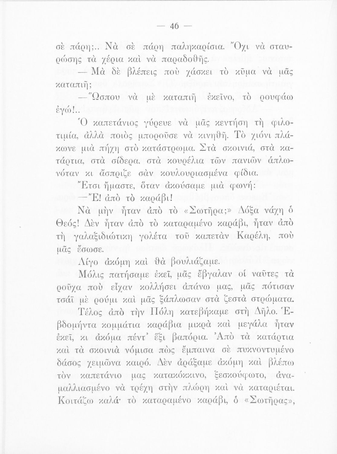 Αναγνωστικό για την Δ΄ τάξη του Δημοτικού. Περιλαμβάνει ένα κείμενο στο οποίο παρεμβάλλονται ποιήματα δημοτικά και Ελλήνων ποιητών.