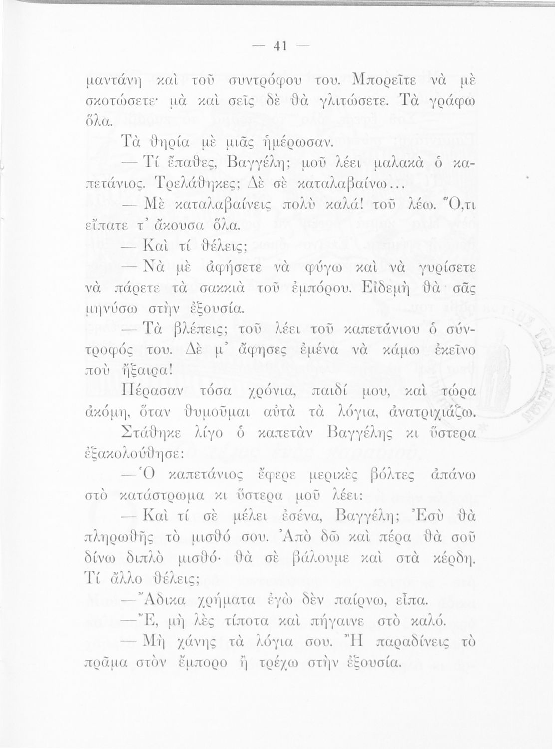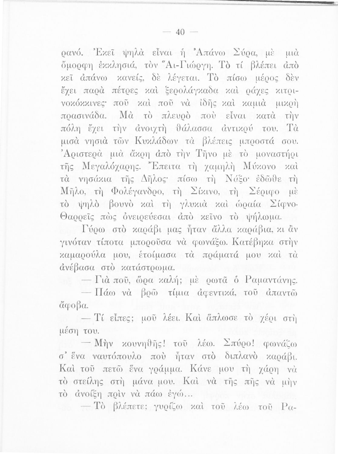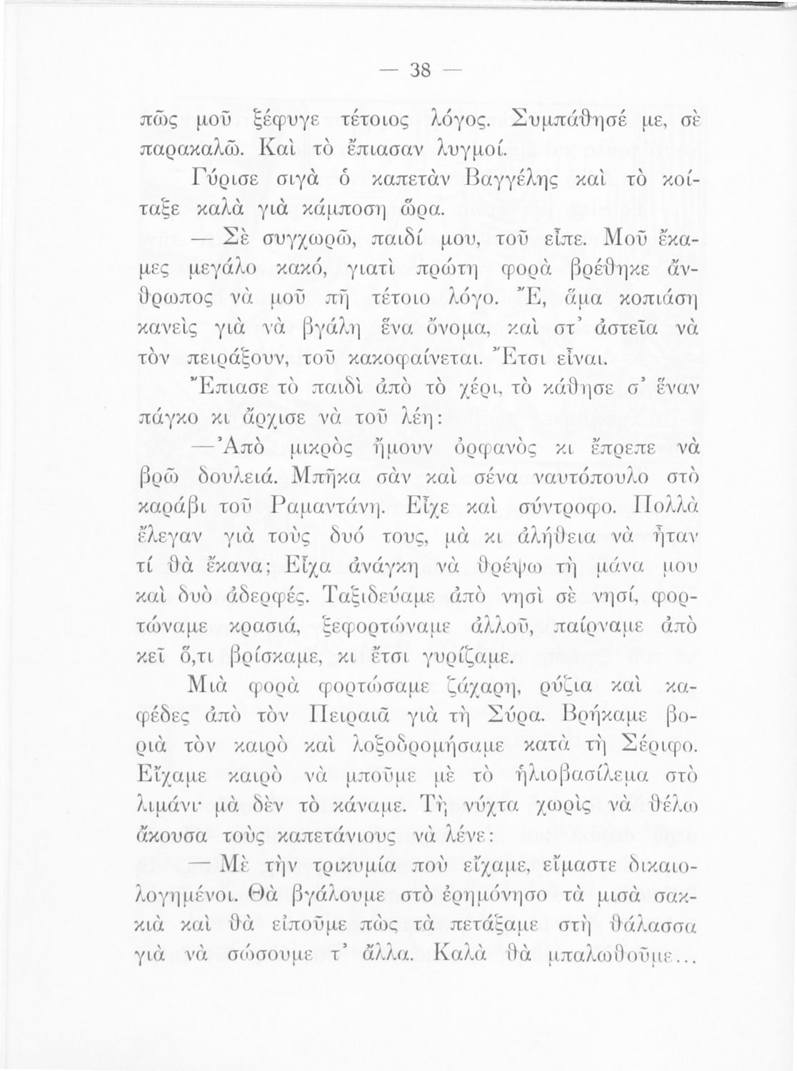 Αναγνωστικό Δ΄ Δημοτικού που περιέχει πεζά και ποιήματα με περιεχόμενο διδακτικό και ηθικοπλαστικό εμπνευσμένα από την ελληνική ιστορία και μυθολογία, και την αγροτική και κοινωνική ζωή.