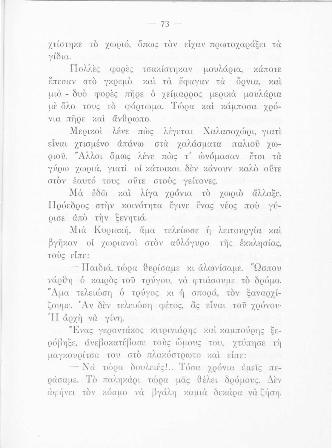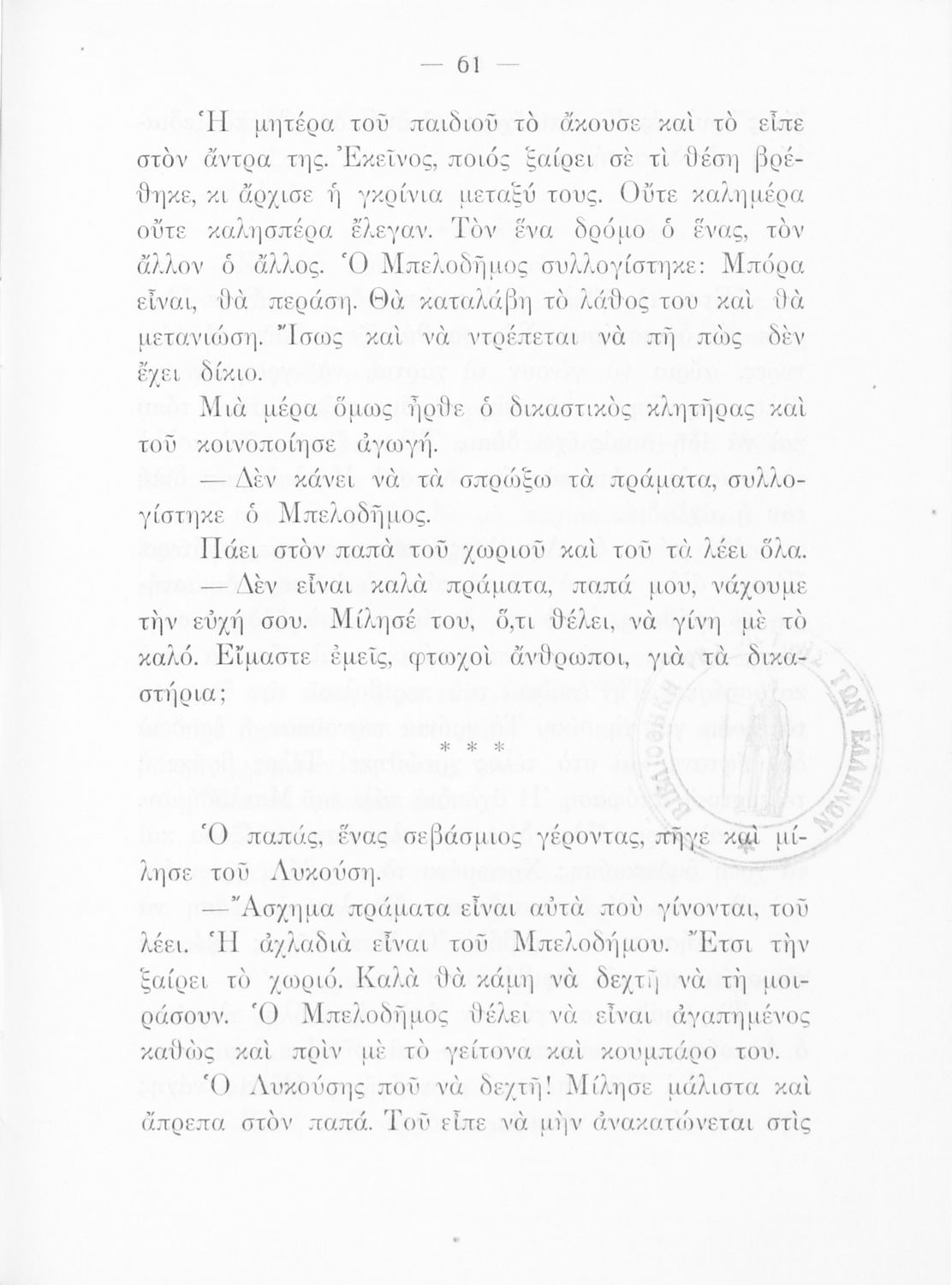 Αναγνωστικό Δ΄ Δημοτικού που περιέχει πεζά και ποιήματα με περιεχόμενο διδακτικό και ηθικοπλαστικό εμπνευσμένα από την ελληνική ιστορία και μυθολογία, και την αγροτική και κοινωνική ζωή.