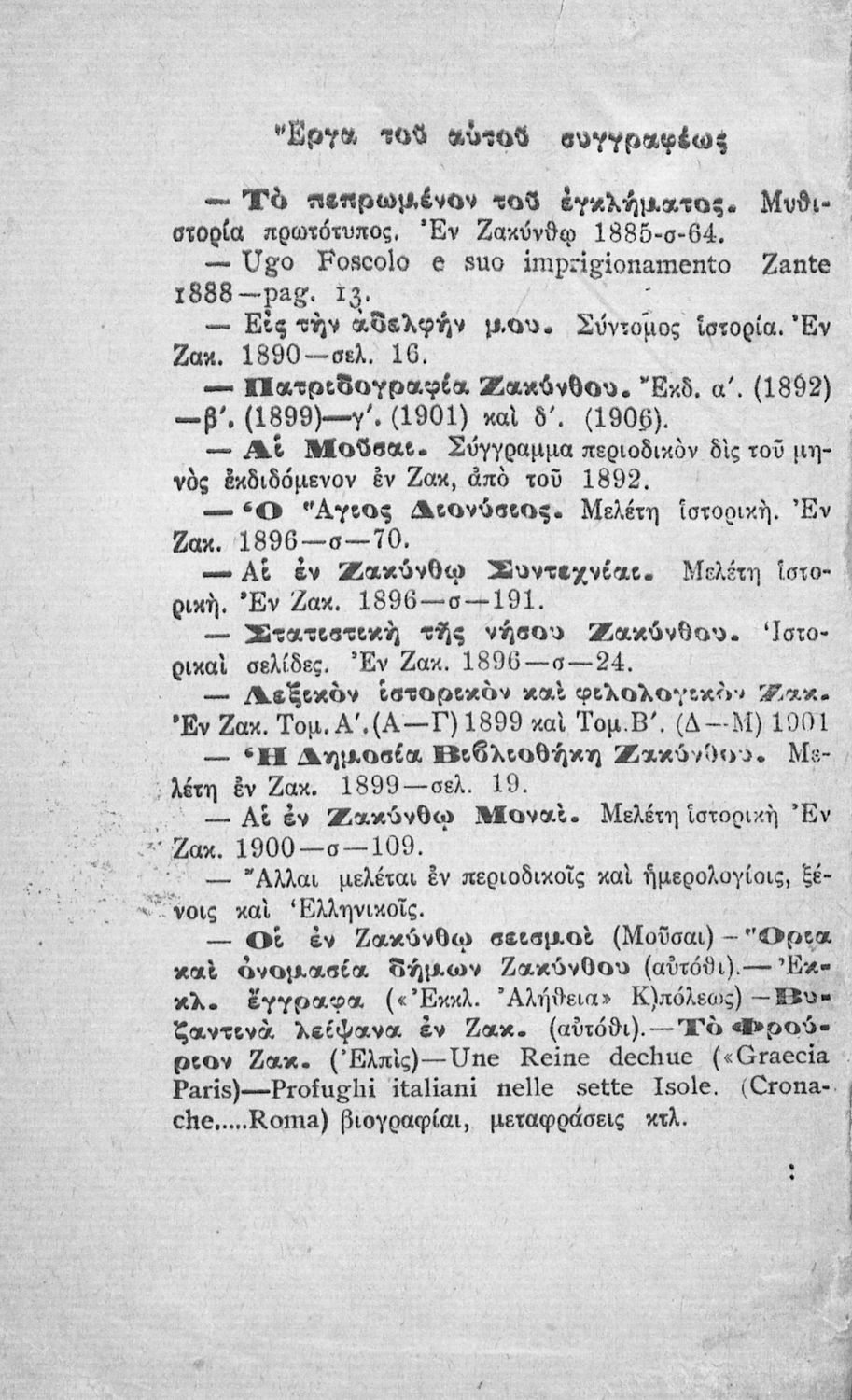 Εκδότης: Πρόοδος Έτος έκδοσης: 1913 Τόπος έκδοσης: Ζάκυνθος Έκδοση: 5η |
