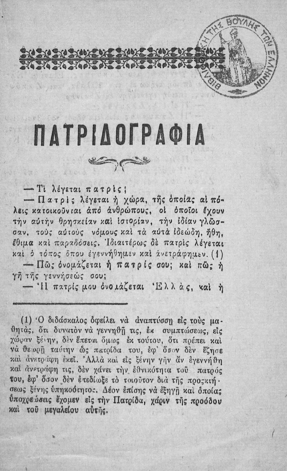 Βαθμίδα εκπαίδευσης: Πρωτοβάθμια Μάθημα: Γεωγραφία Γλώσσα: Απλή καθαρεύουσα Παρουσίαση περιεχομένου: Σχολικό εγχειρίδιο Πατριδογνωσίας για τους μαθητές του Δημοτικού που περιλαμβάνει στοιχεία για τη γεωγραφία, και την πολιτική και θρησκευτική ιστορία της Ζακύνθου. |