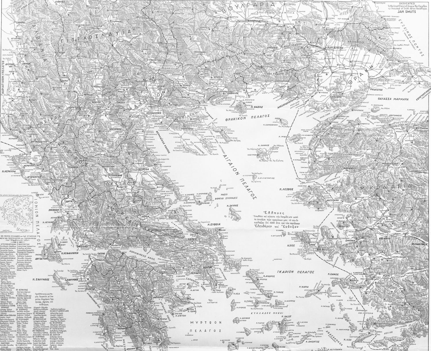 Μάθημα: Γεωγραφία Παρουσίαση περιεχομένου: Ο χαρτογράφος ήταν μηχανικός-τοπογράφος. Ο χάρτης αφιερώνεται στον "φιλέλληνα Πρόεδρον της Νοτιοαφρικανικής Δημοκρατίας Γιάν Σματς". |