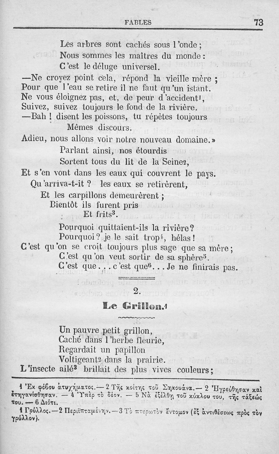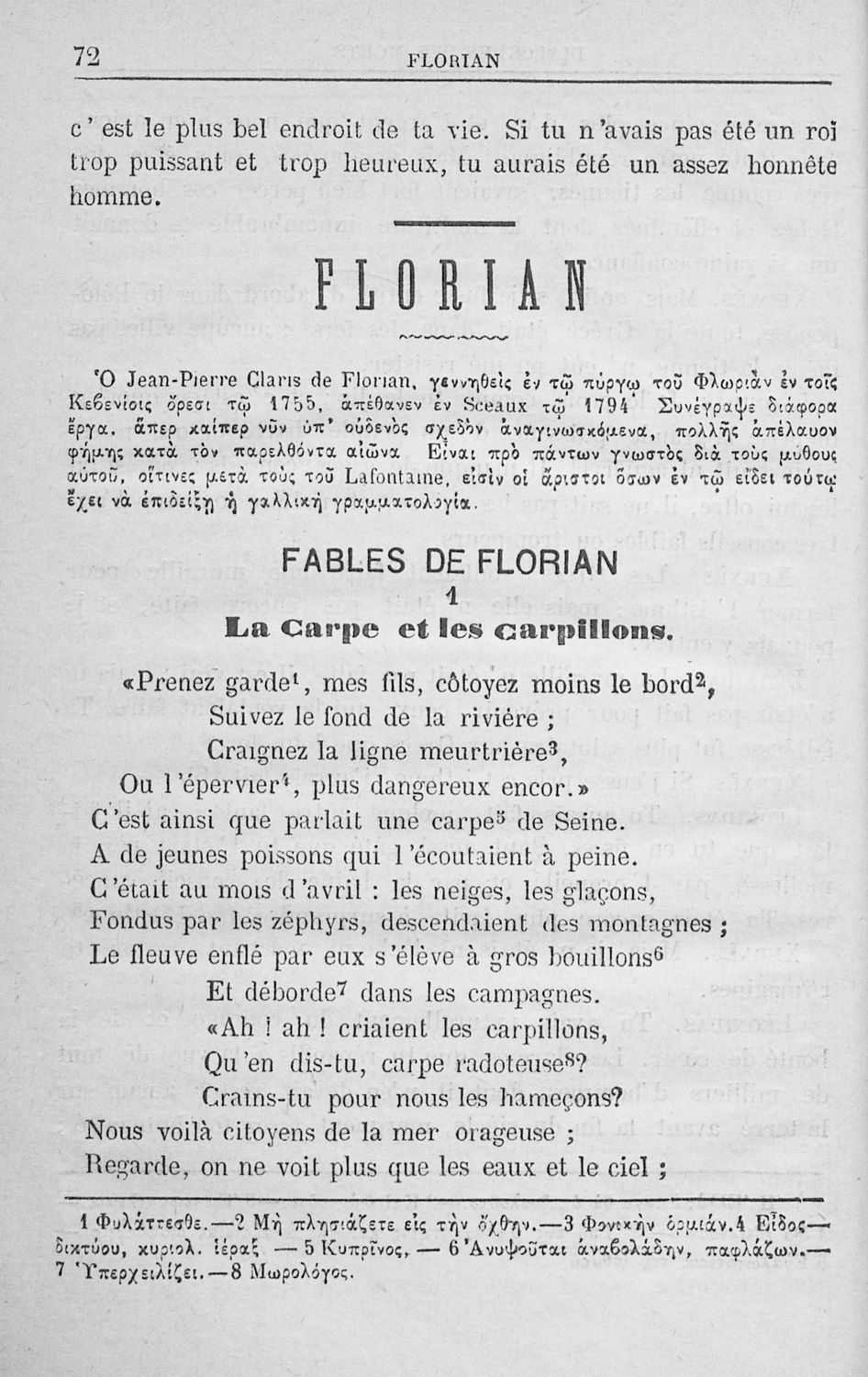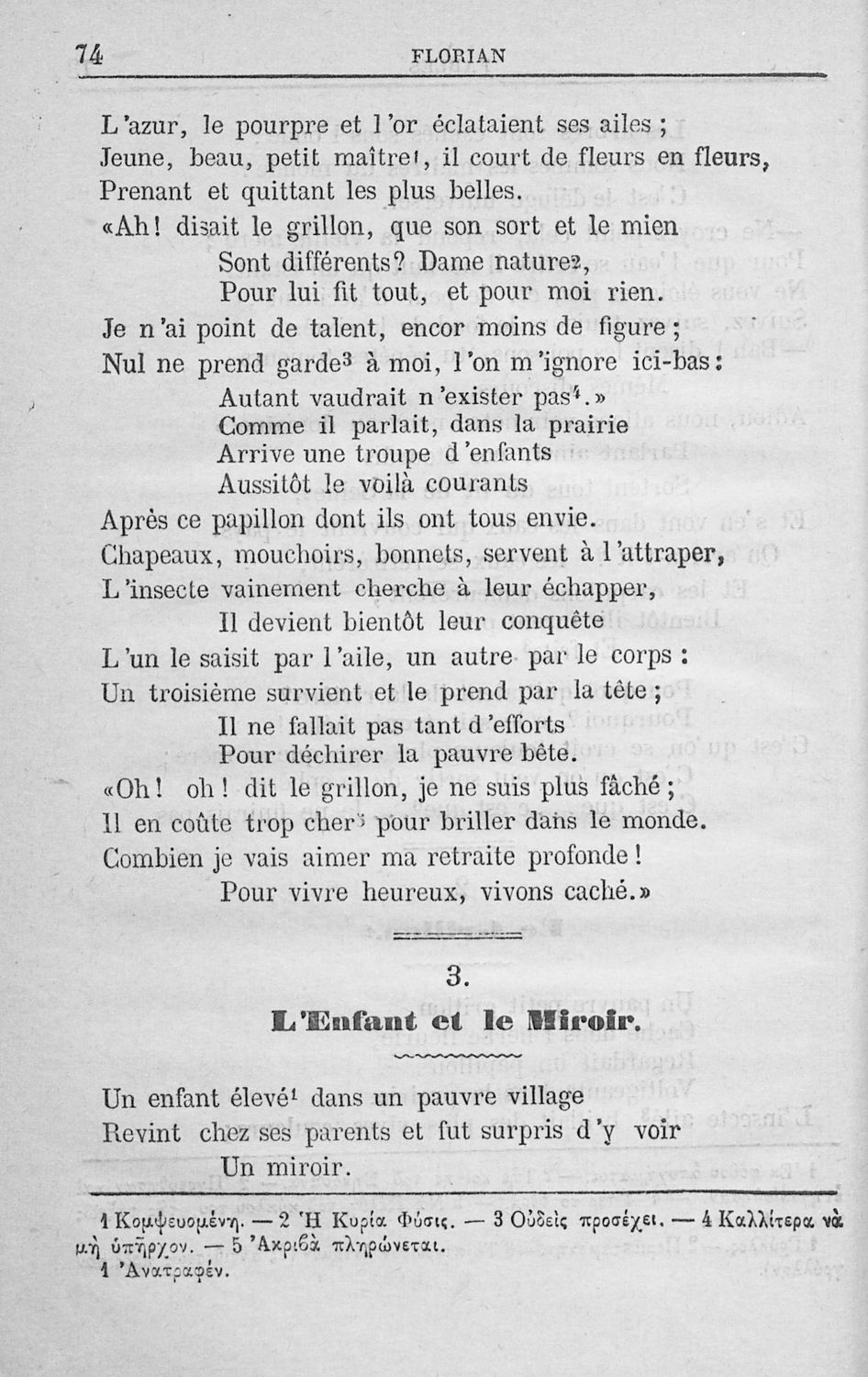 Βαθμίδα εκπαίδευσης: Δευτεροβάθμια Τάξη: Α' Γυμνασίου Μάθημα: Γαλλικά Γλώσσα: Καθαρεύουσα Παρουσίαση περιεχομένου: Σχολικό εγχειρίδιο Γαλλικών Α' Γυμνασίου που περιλαμβάνεται έργα επιφανών γάλλων συγγραφέων, βιογραφικά σημειώματα και λεξιλογικές σημειώσεις. |