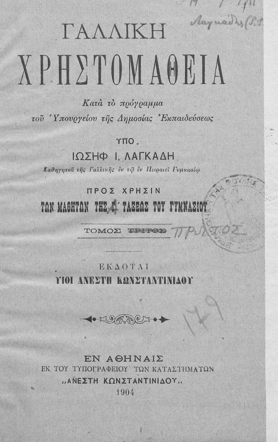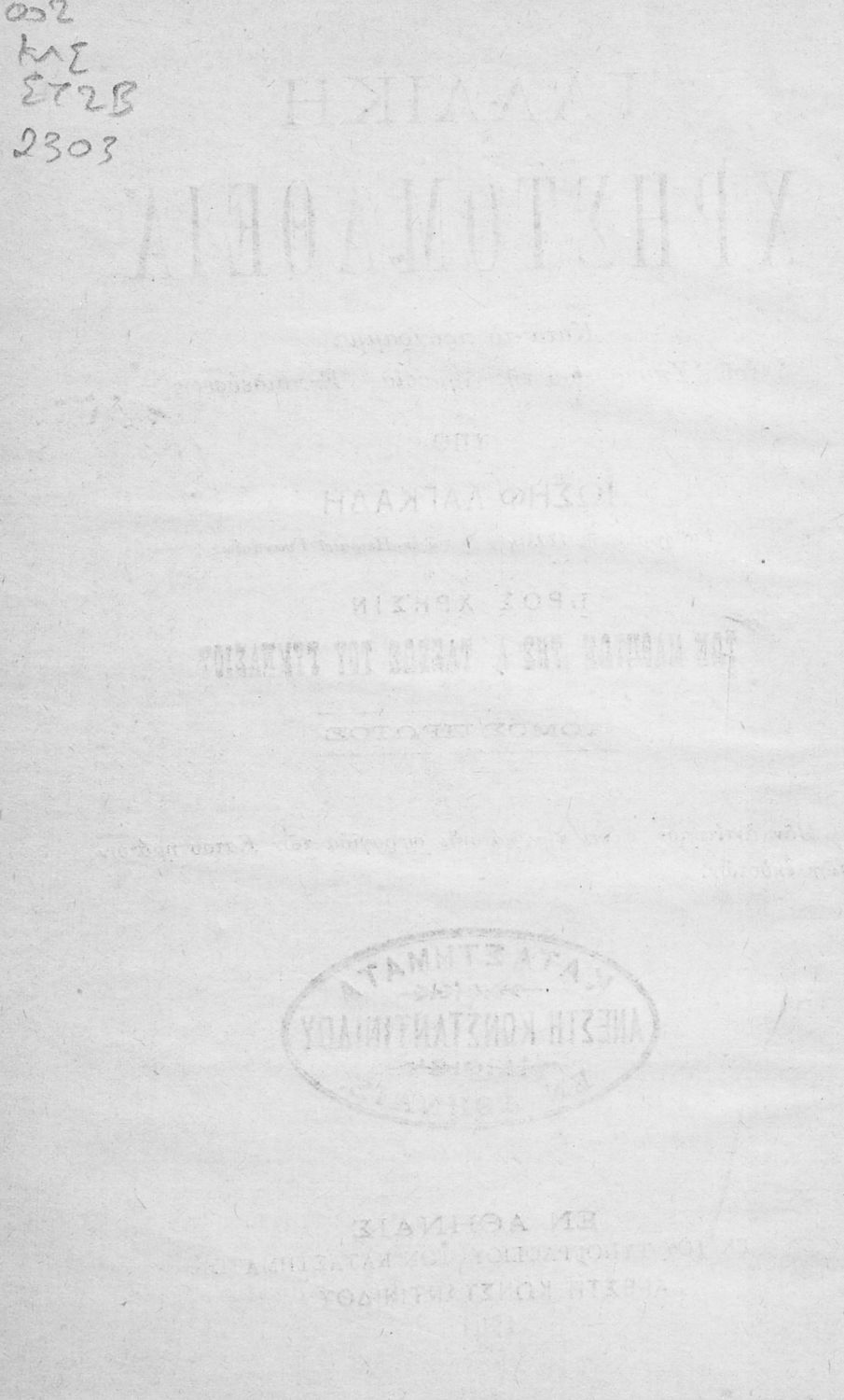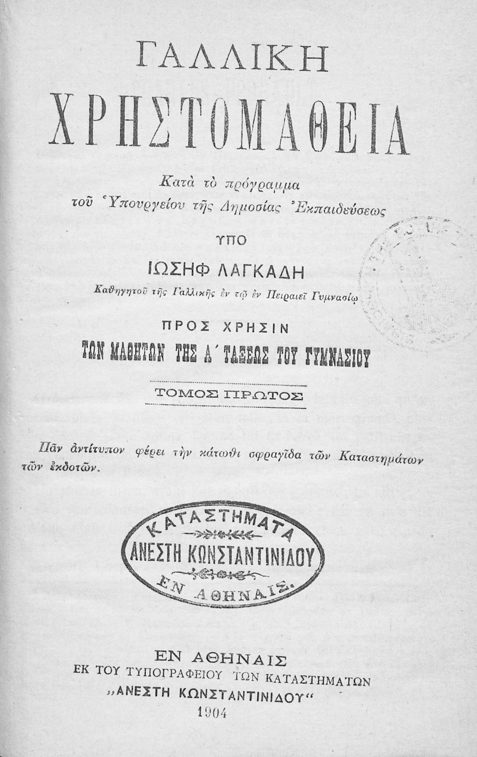 Εκδότης: Ανέστης Κωνσταντινίδης Έτος έκδοσης: 1904 Τόπος έκδοσης: Αθήνα |