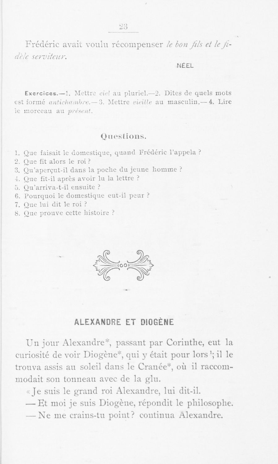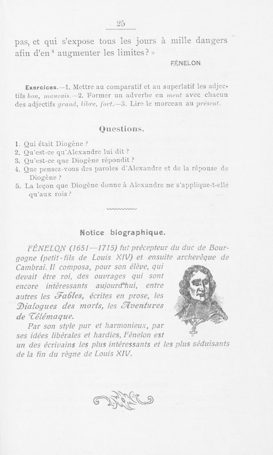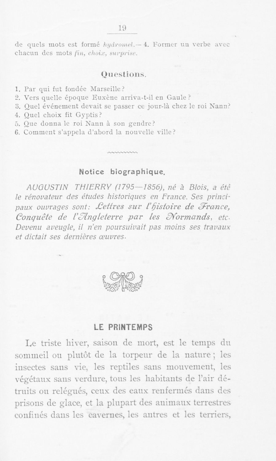 Σχολικό εγχειρίδιο Γαλλικών για τις Γ΄ Γυμνάσιου, Β΄ Διδασκαλείου Θηλέων και Α' Διδασκαλείου Αρρένων που περιέχει αποσπάσματα έργων Γάλλων συγγραφέων, και γλωσσικά και ερμηνευτικά σχόλια.