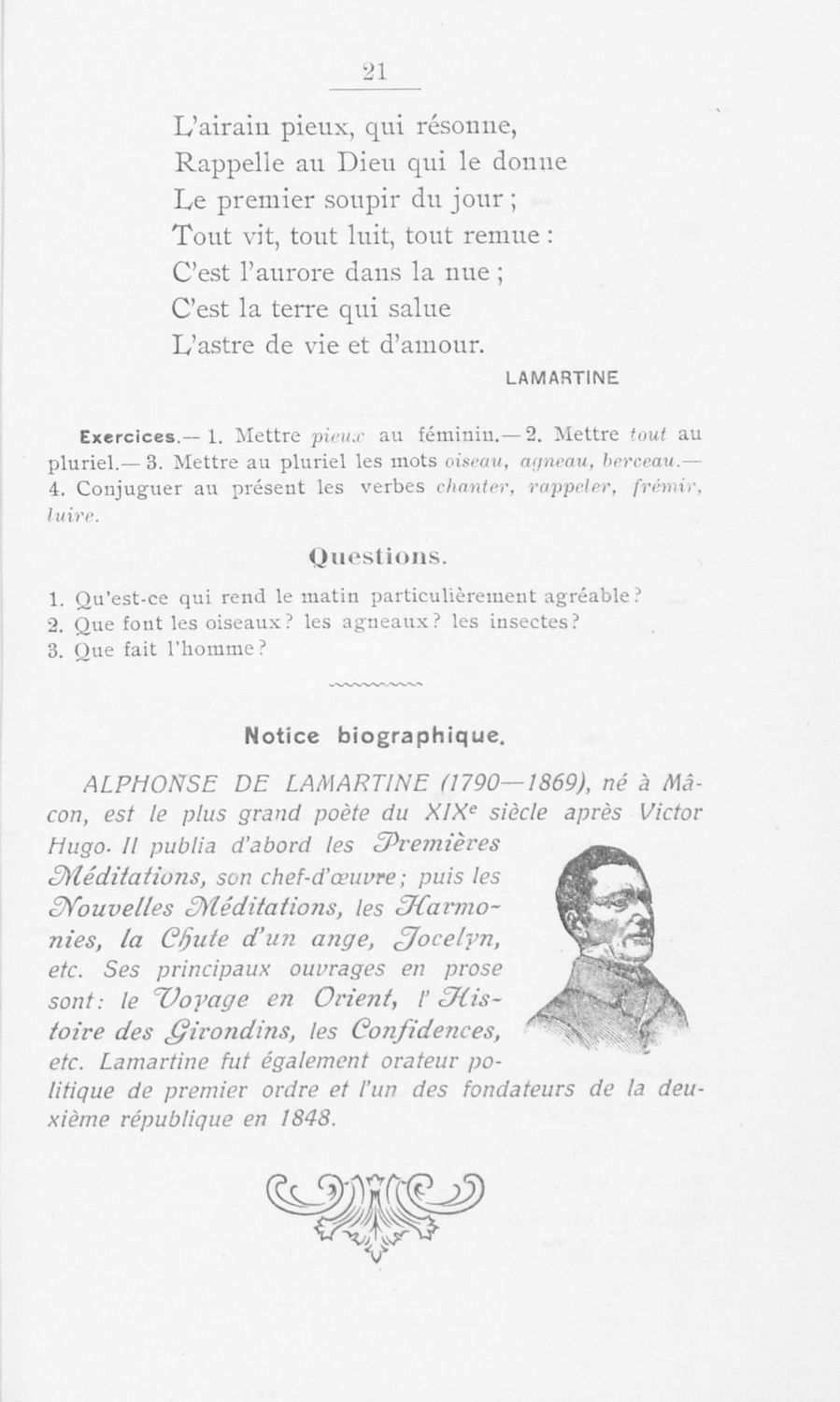 Σχολικό εγχειρίδιο Γαλλικής γλώσσας των τάξεων της Γ΄ Γυμνάσιου, Β΄ Διδασκαλείου Θηλέων και Α' Διδασκαλείου Αρρένων που περιέχει σειρά ποιημάτων και πεζών Γάλλων συγγραφέων, σύντομα βιογραφικά σημειώματα, ...