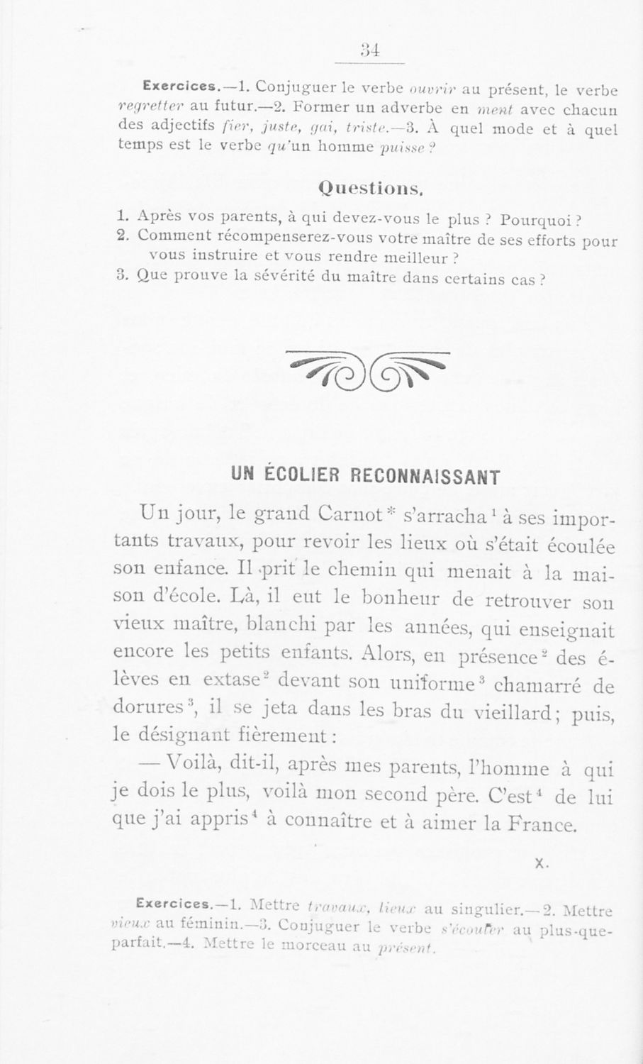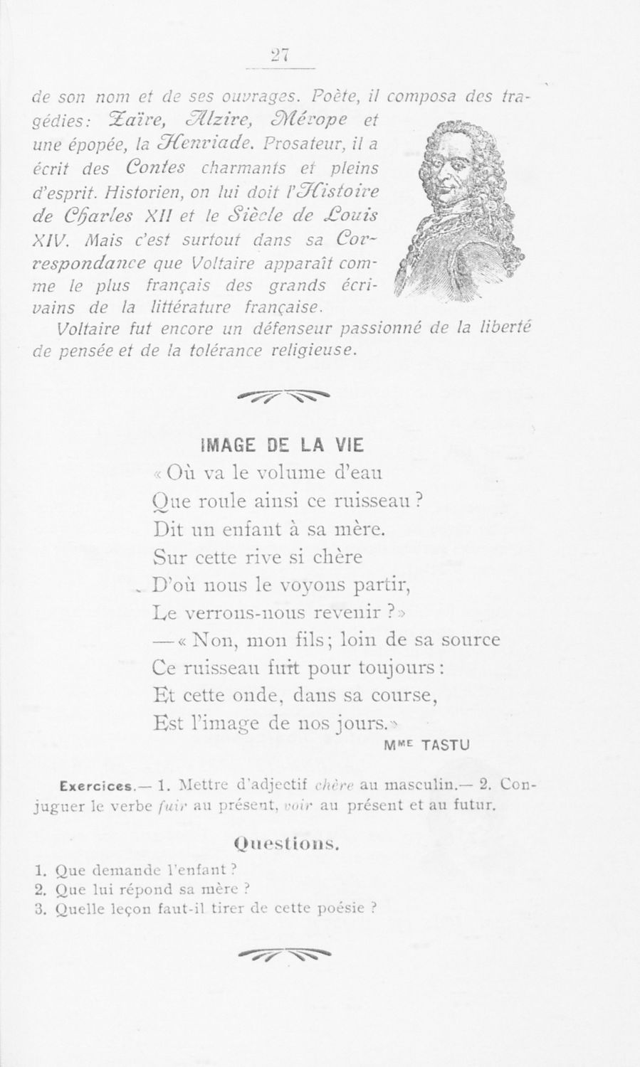 Σχολικό εγχειρίδιο Γαλλικών Α΄ Γυμνασίου και Β΄ και Γ΄ Αστικού Σχολείου που περιλαμβάνει αποσπάσματα έργων επιφανών Γάλλων συγγραφέων, σύντομα βιογραφικά σημειώματα, επεξηγηματικά σχόλια, ασκήσεις και λεξιλόγιο.