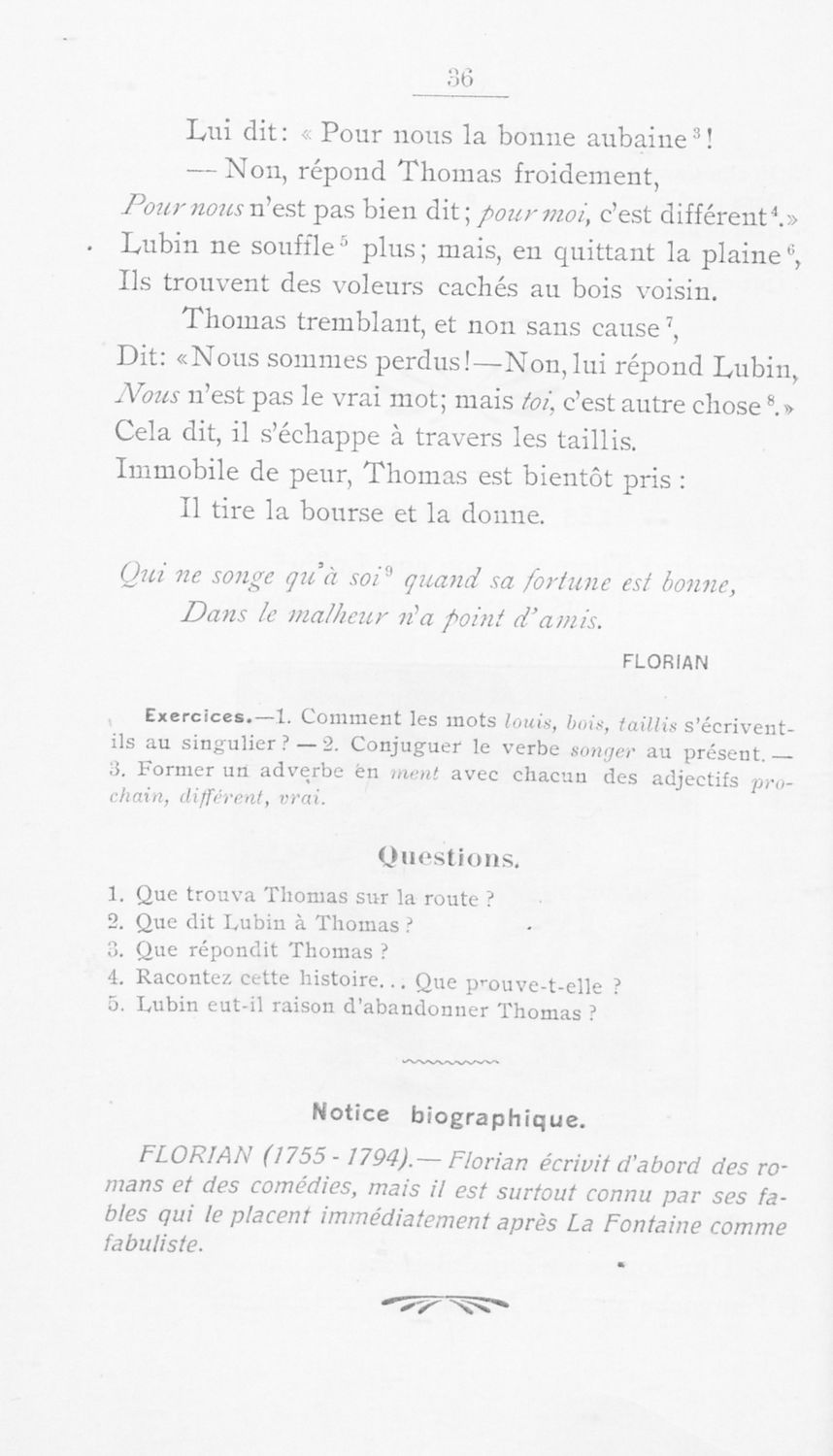 Σχολικό εγχειρίδιο Γαλλικών για την Α΄ Γυμνασίου και τις Β΄ και Γ τάξεις των Αστικών Σχολείων που περιλαμβάνει πεζά, ποιήματα, λεξιλόγιο, βιογραφικά σημειώματα των συγγραφέων και επεξηγηματικές σημειώσεις.