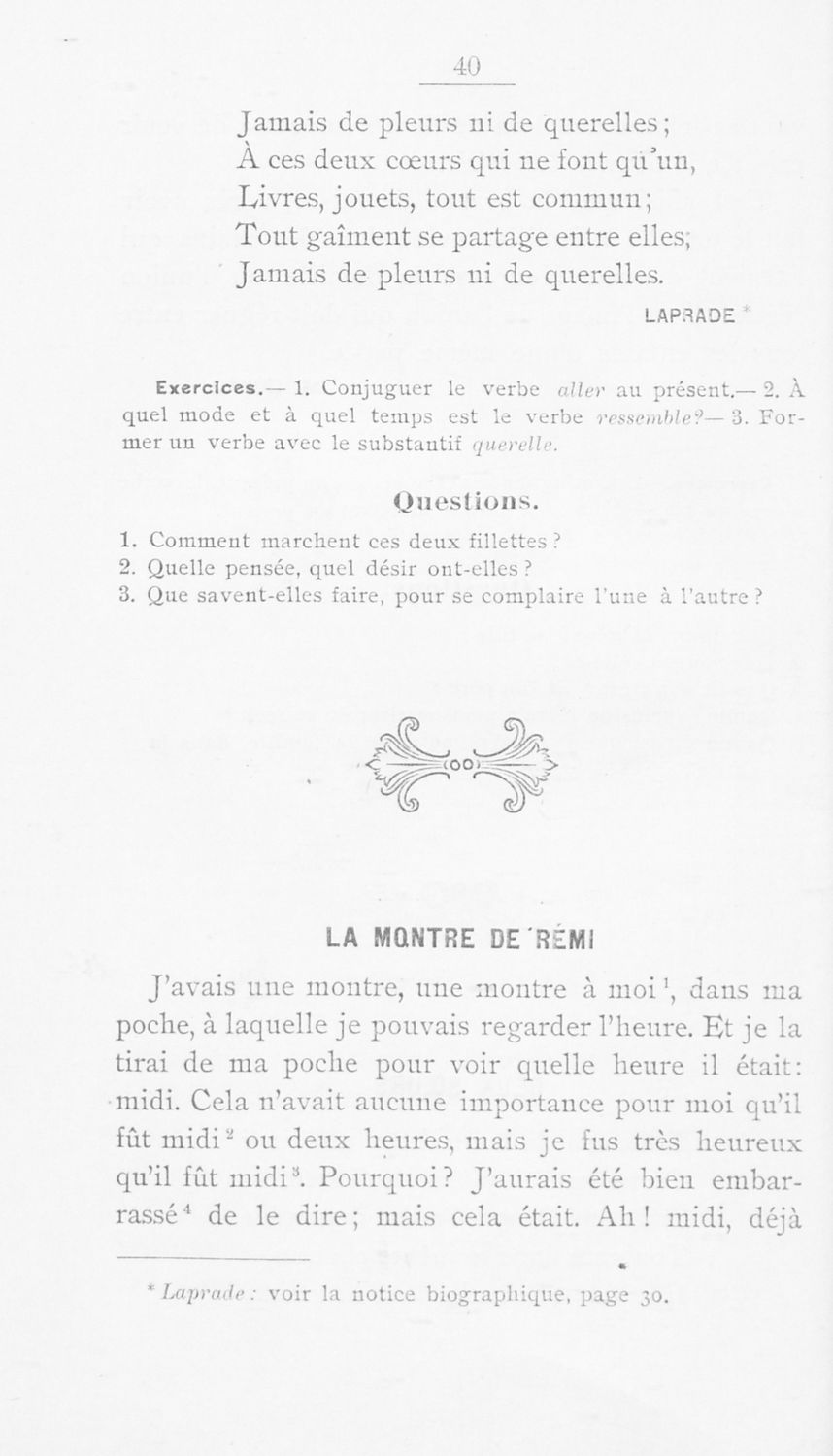 Σχολικό εγχειρίδιο Γαλλικών Α΄ Γυμνασίου και Γ΄ Αστικού Σχολείου που περιλαμβάνει αποσπάσματα έργων επιφανών Γάλλων συγγραφέων, σύντομα βιογραφικά σημειώματα, επεξηγηματικά σχόλια, ασκήσεις και λεξιλόγιο.