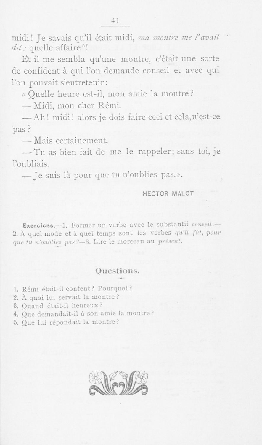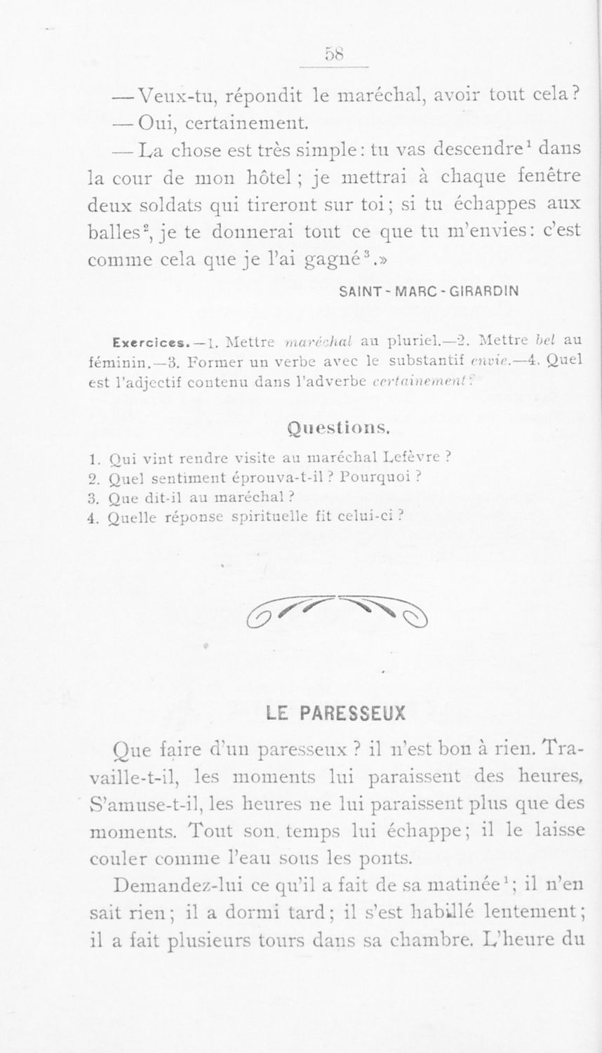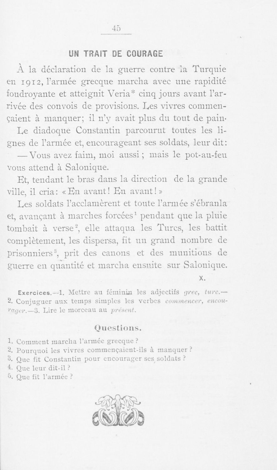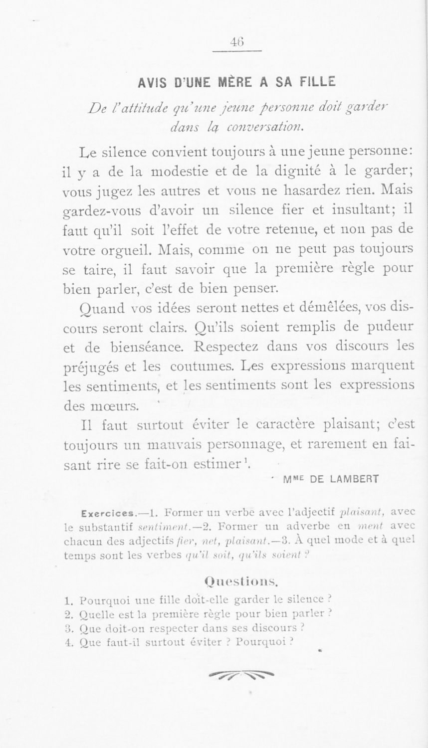 Σχολικό εγχειρίδιο Γαλλικών για τις Γ΄ Γυμνάσιου, Β΄ Διδασκαλείου Θηλέων και Α' Διδασκαλείου Αρρένων που περιέχει αποσπάσματα έργων Γάλλων συγγραφέων, και γλωσσικά και ερμηνευτικά σχόλια.
