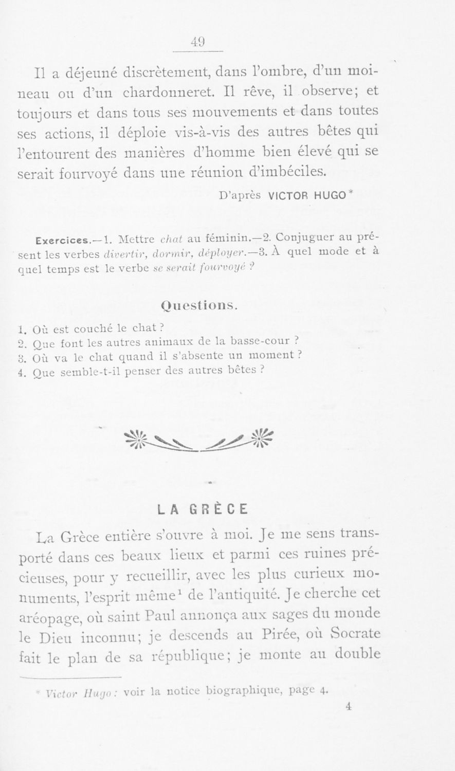Σχολικό εγχειρίδιο Γαλλικών Α΄ Γυμνασίου και Β΄ και Γ΄ Αστικού Σχολείου που περιλαμβάνει αποσπάσματα έργων επιφανών Γάλλων συγγραφέων, σύντομα βιογραφικά σημειώματα, επεξηγηματικά σχόλια, ασκήσεις και λεξιλόγιο.