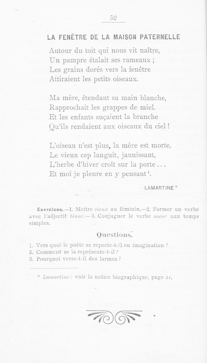 Σχολικό εγχειρίδιο Γαλλικής γλώσσας των τάξεων της Γ΄ Γυμνάσιου, Β΄ Διδασκαλείου Θηλέων και Α' Διδασκαλείου Αρρένων που περιέχει σειρά ποιημάτων και πεζών Γάλλων συγγραφέων, σύντομα βιογραφικά σημειώματα, ...