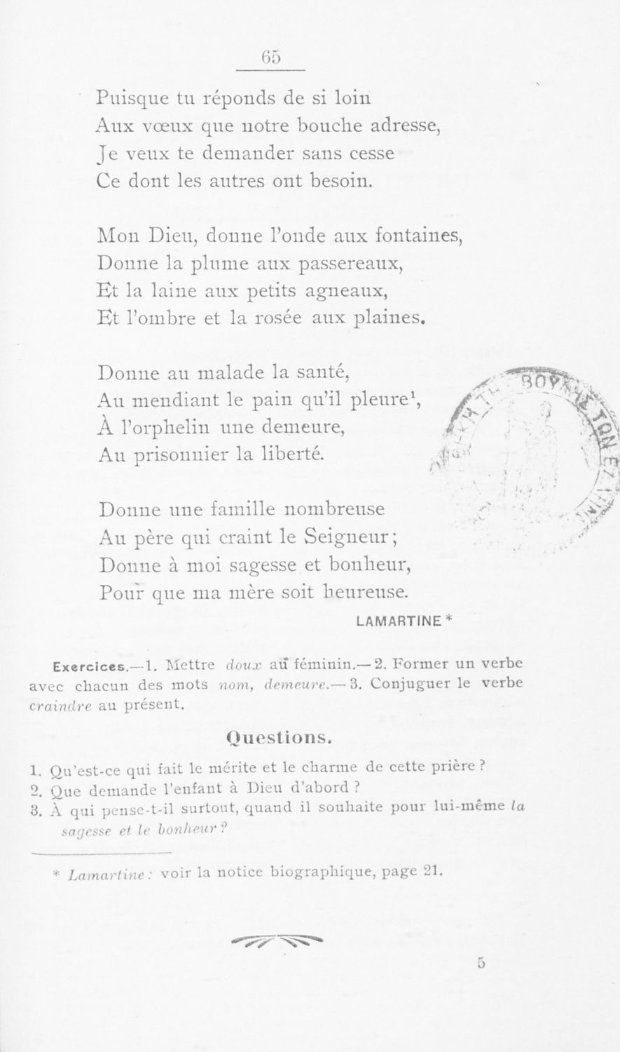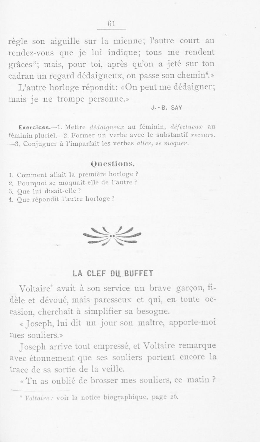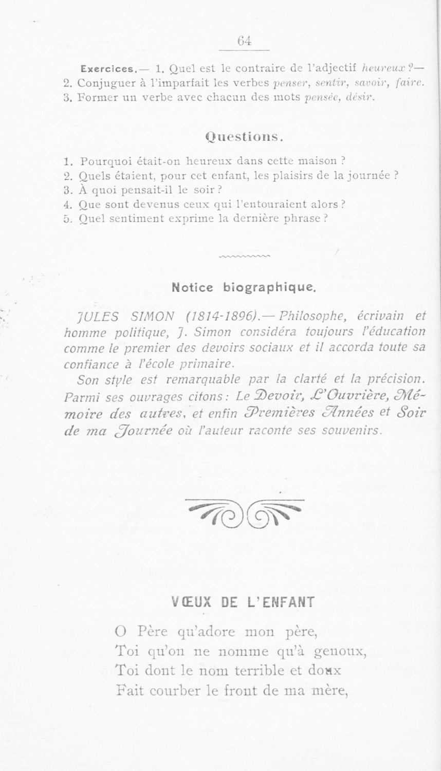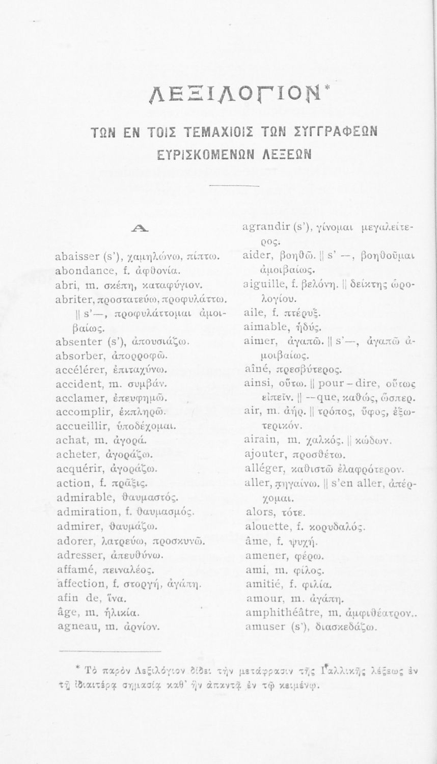 Σχολικό εγχειρίδιο Γαλλικών Α΄ Γυμνασίου και Β΄ και Γ΄ Αστικού Σχολείου που περιλαμβάνει αποσπάσματα έργων επιφανών Γάλλων συγγραφέων, σύντομα βιογραφικά σημειώματα, επεξηγηματικά σχόλια, ασκήσεις και λεξιλόγιο.
