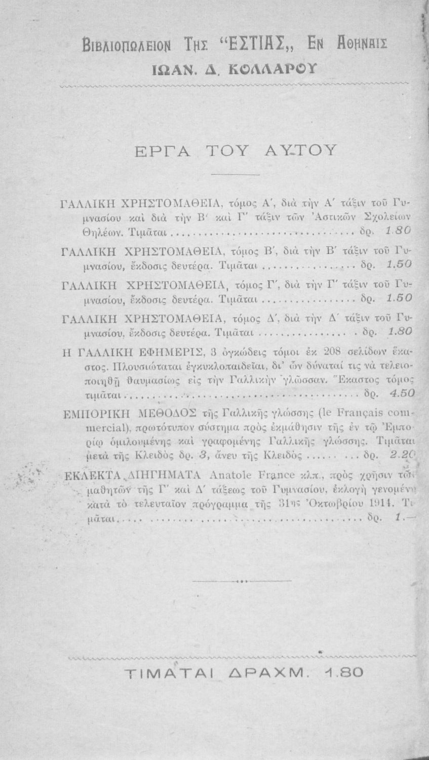 Εκδότης: Ιωάννης Δ. Κολλάρος, Βιβλιοπωλείο της "Εστίας" Έτος έκδοσης: 1916 Τόπος έκδοσης: Αθήνα |