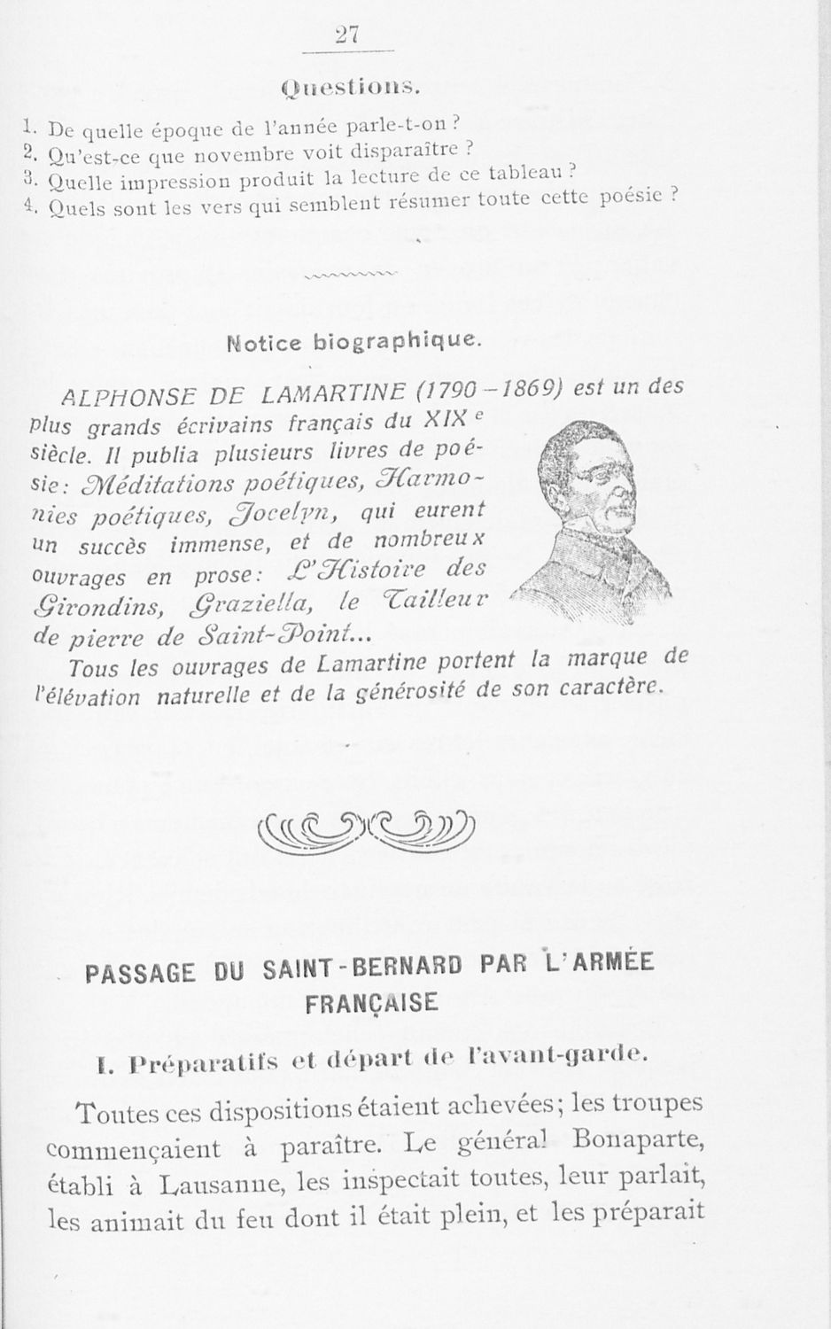 Σχολικό εγχειρίδιο Γαλλικής γλώσσας των τάξεων της Γ΄ Γυμνάσιου, Β΄ Διδασκαλείου Θηλέων και Α' Διδασκαλείου Αρρένων που περιέχει σειρά ποιημάτων και πεζών Γάλλων συγγραφέων, σύντομα βιογραφικά σημειώματα, ...