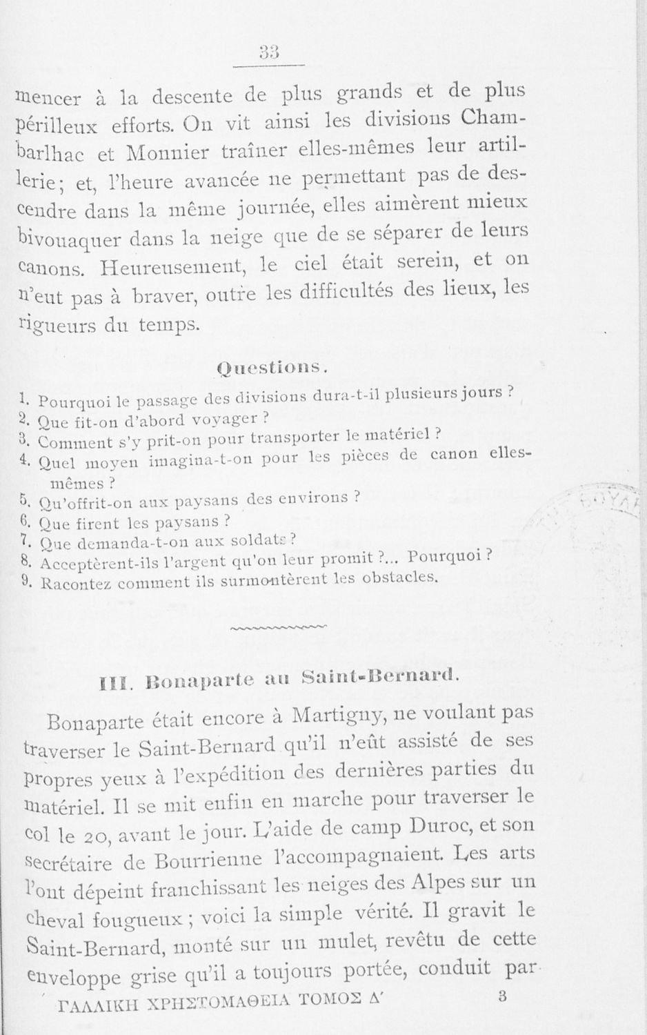 Γραμματική της Γαλλικής γλώσσας για τα Τετρατάξια Γυμνάσια, τη Γ΄ τάξη των Αστικών Σχολείων των Θηλέων και τα Διδασκαλεία της Δημοτικής Εκπαίδευσης που περιλαμβάνει θεωρία, ασκήσεις και λεξιλόγιο.