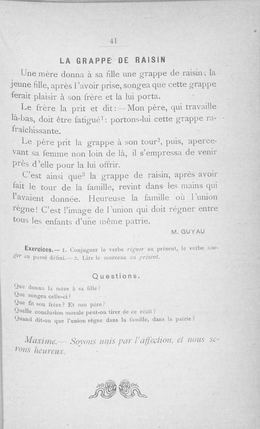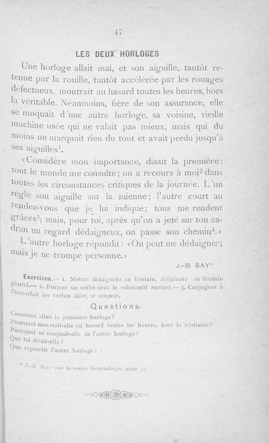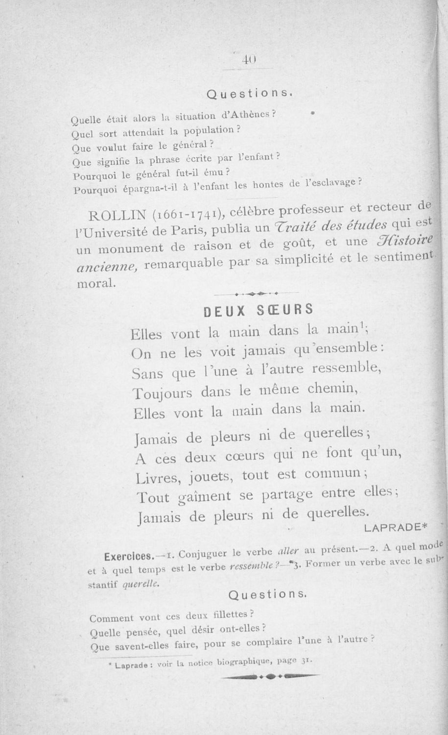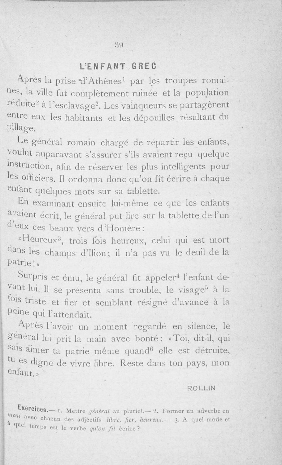 Βαθμίδα εκπαίδευσης: Δευτεροβάθμια Τάξη: Α' Γυμνασίου / Γ' Αστικού Σχολείου Μάθημα: Γαλλικά Γλώσσα: Καθαρεύουσα Παρουσίαση περιεχομένου: Σχολικό εγχειρίδιο Γαλλικών Α΄ Γυμνασίου και Γ΄ Αστικού Σχολείου που περιλαμβάνει αποσπάσματα έργων επιφανών Γάλλων συγγραφέων, σύντομα βιογραφικά σημειώματα, επεξηγηματικά σχόλια, ασκήσεις και λεξιλόγιο. |