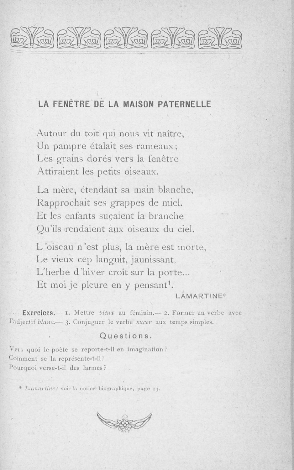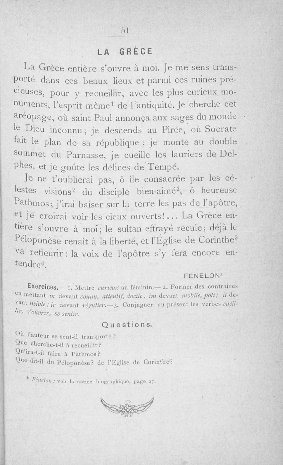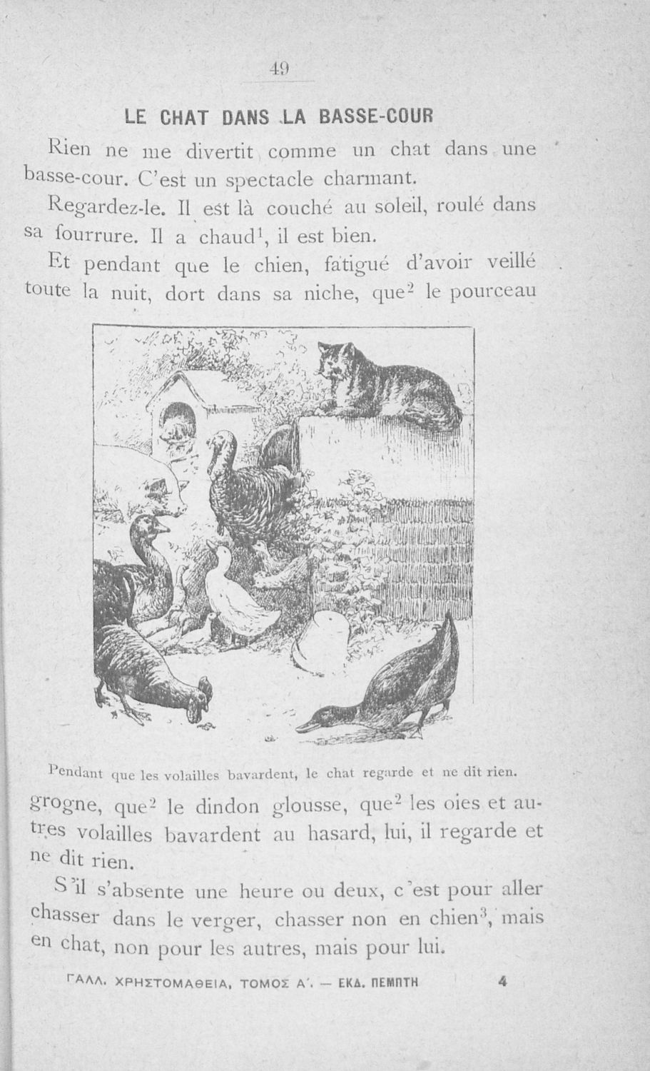 Σχολικό εγχειρίδιο Γαλλικών Α΄ Γυμνασίου και Γ΄ Αστικού Σχολείου που περιλαμβάνει αποσπάσματα έργων επιφανών Γάλλων συγγραφέων, σύντομα βιογραφικά σημειώματα, επεξηγηματικά σχόλια, ασκήσεις και λεξιλόγιο.
