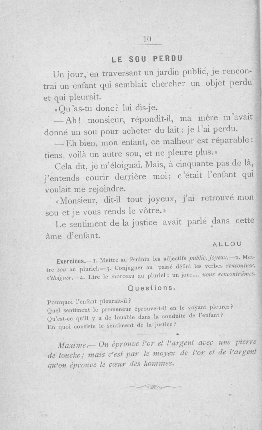 Βαθμίδα εκπαίδευσης: Δευτεροβάθμια Τάξη: Α' Γυμνασίου / Γ' Αστικού Σχολείου Μάθημα: Γαλλικά Γλώσσα: Καθαρεύουσα Παρουσίαση περιεχομένου: Σχολικό εγχειρίδιο Γαλλικών Α΄ Γυμνασίου και Γ΄ Αστικού Σχολείου που περιλαμβάνει αποσπάσματα έργων επιφανών Γάλλων συγγραφέων, σύντομα βιογραφικά σημειώματα, επεξηγηματικά σχόλια, ασκήσεις και λεξιλόγιο. |