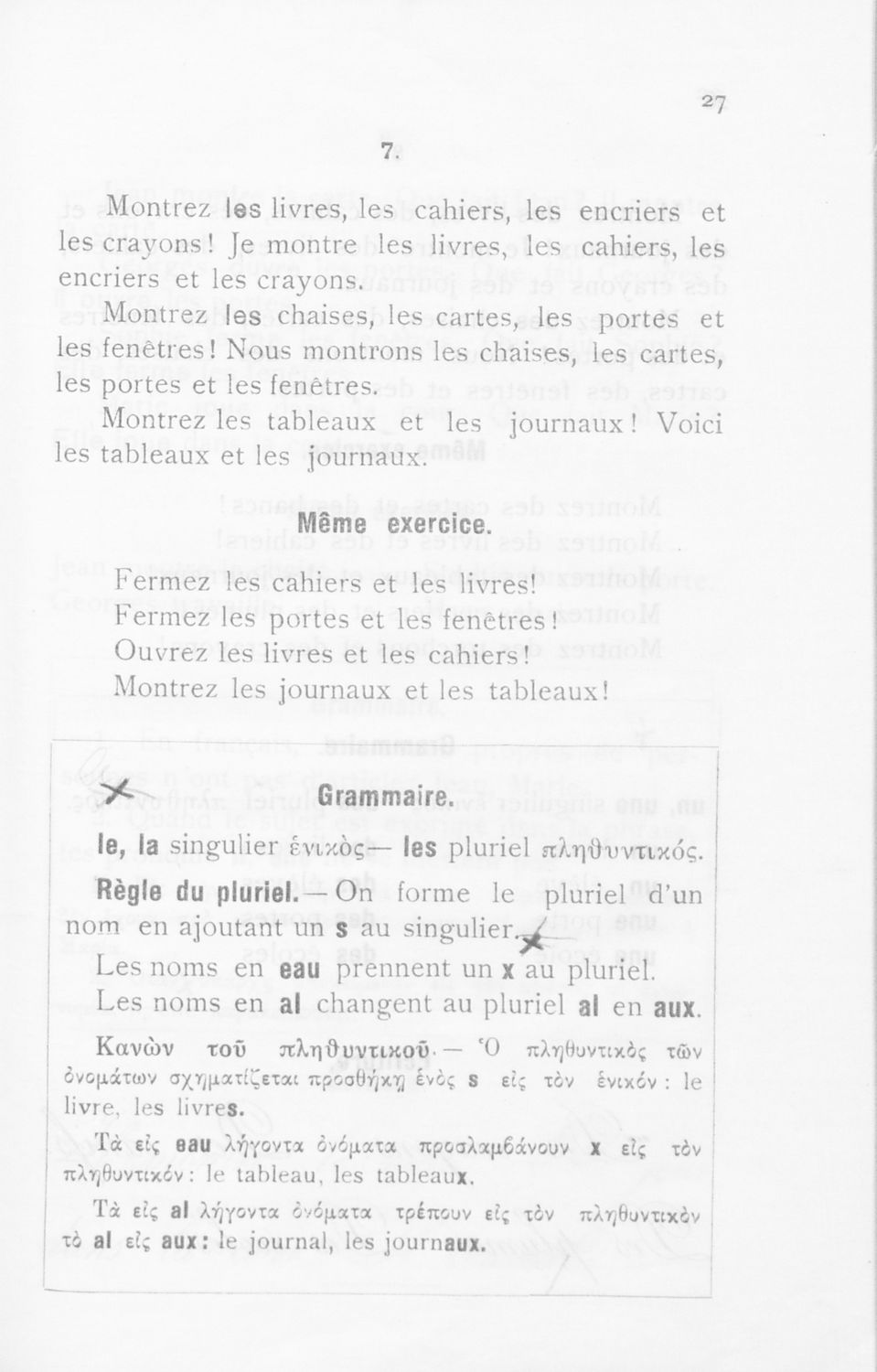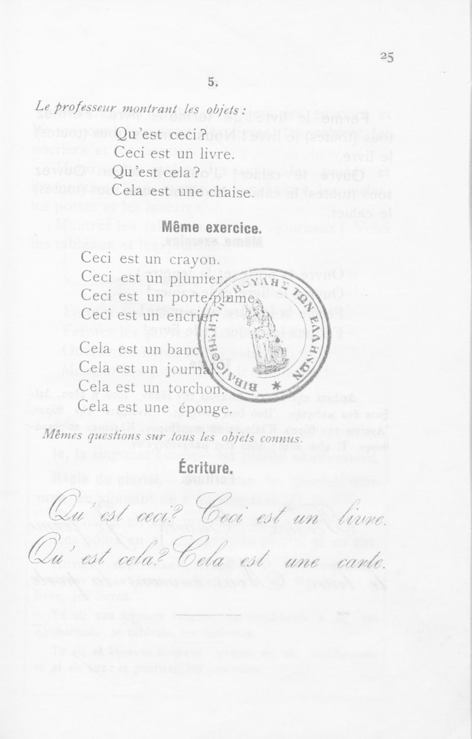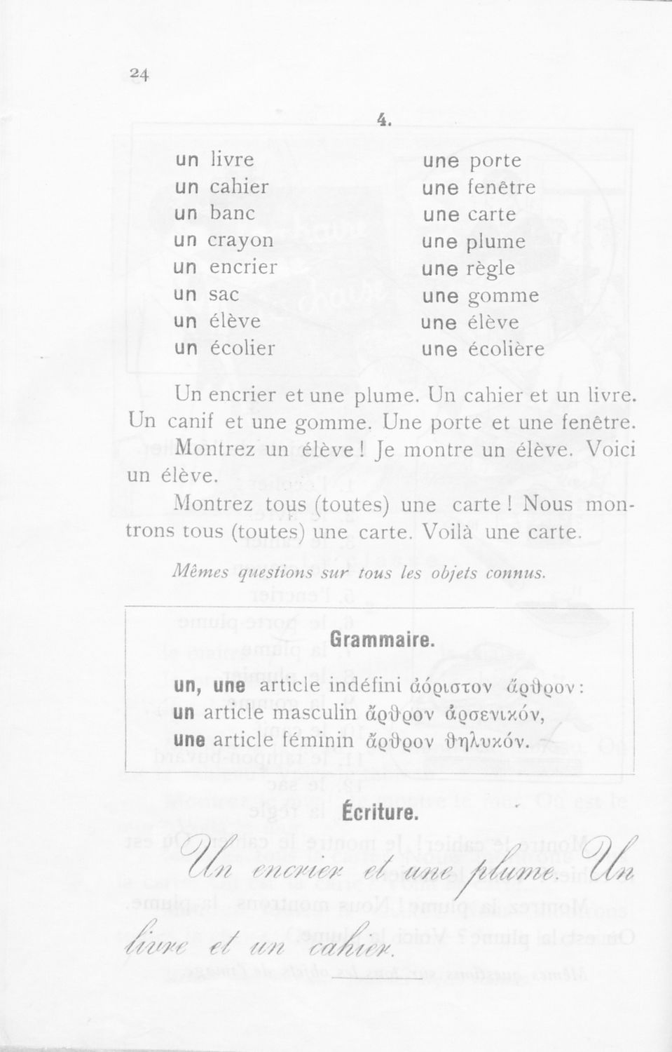 Τα πρώτα μαθήματα. Γαλλικόν Βιβλίον της Α΄ Τάξεως