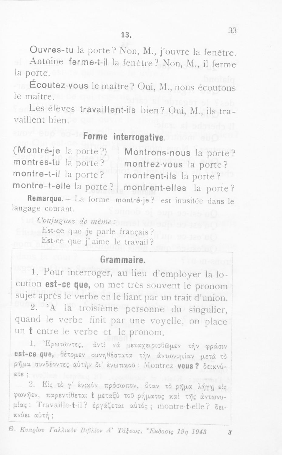 Σχολικό εγχειρίδιο Α΄ Τάξη Αστικών Σχολείων, Γ΄ Γυμνασίων Νέου Τύπου για το μάθημα των Γαλλικών. Περιέχει κείμενα, γραμματικές και λεξιλογικές παρατηρήσεις του συγγραφέα. Περιλαμβάνει και λεξιλόγιο.