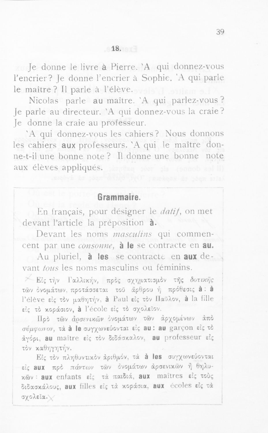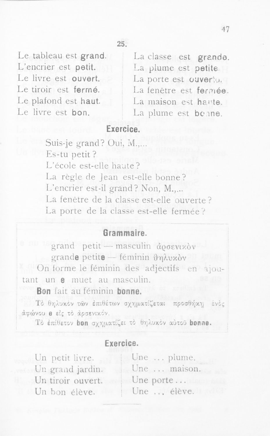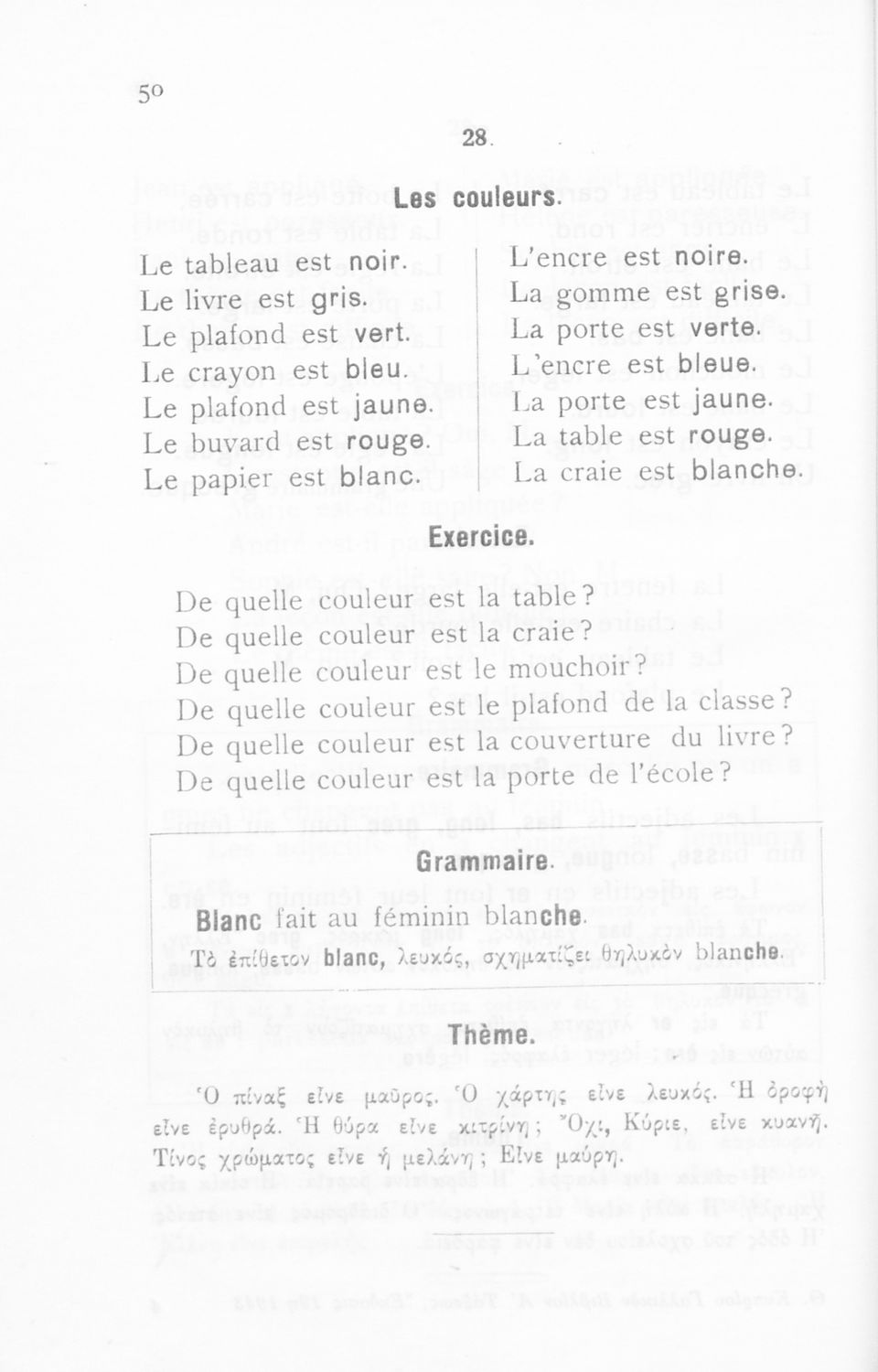 Τα πρώτα μαθήματα. Γαλλικόν Βιβλίον της Α΄ Τάξεως