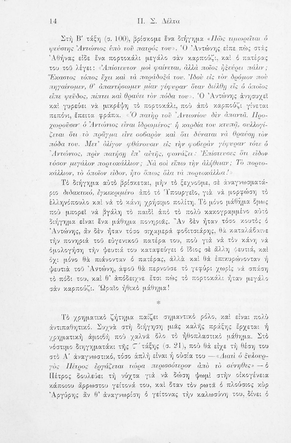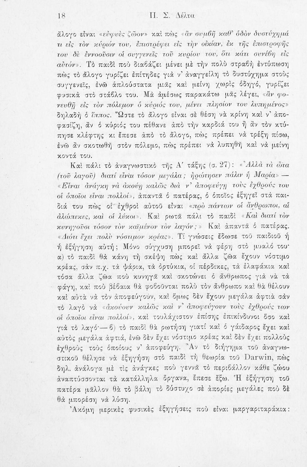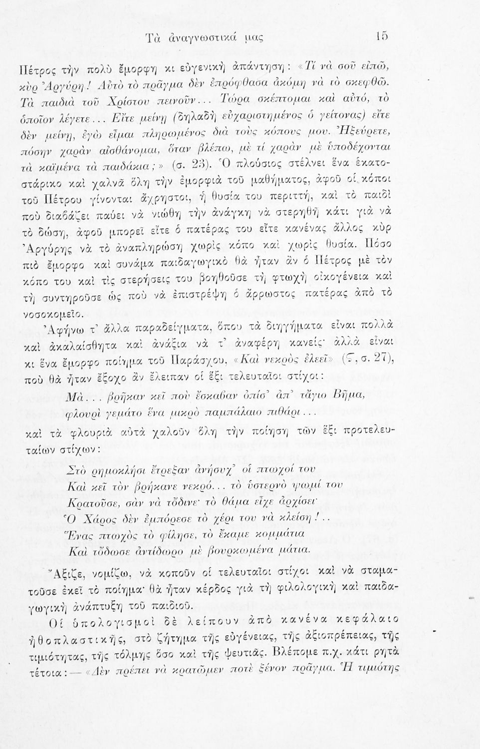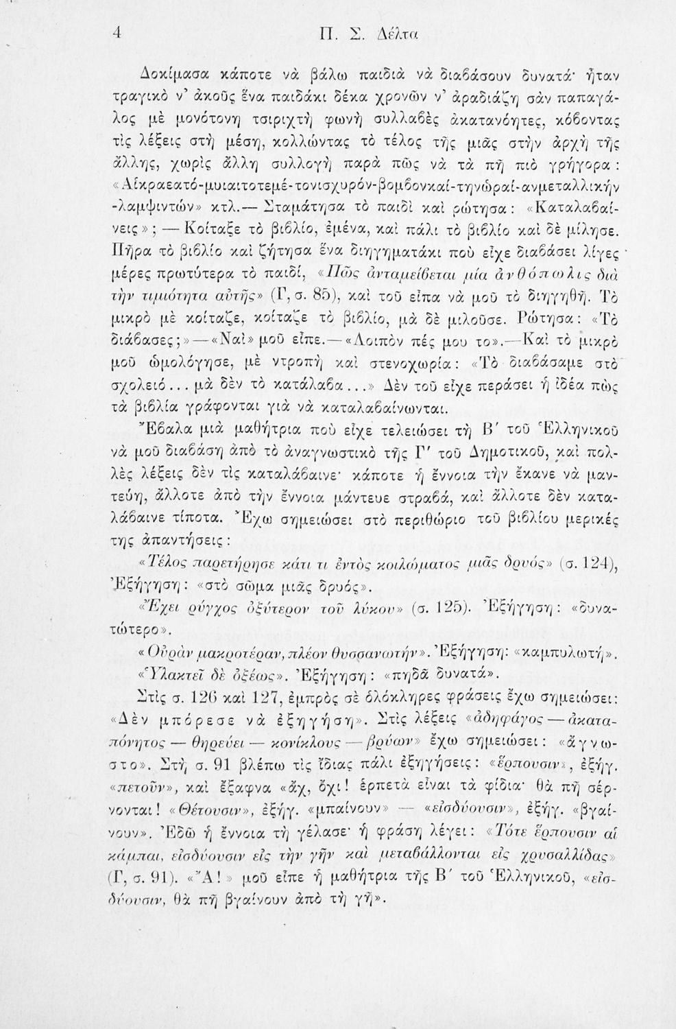 Άρθρο που πρωτοδημοσιεύτηκε στο Δελτίο του Εκπαιδευτικού Ομίλου (1913, 3, 232-256) και ασκεί δριμεία κριτική στα αναγνωστικά της εποχής τόσο στη μορφή, στο ύφος και στη γλώσσα όσο και στο περιεχόμενο και στη στοχοθεσία.