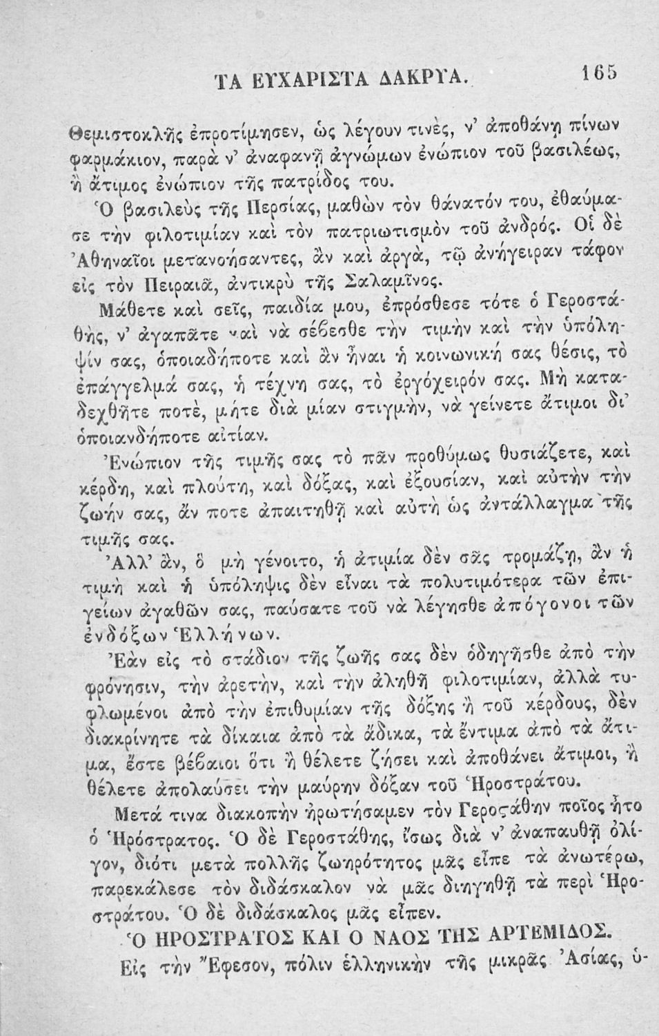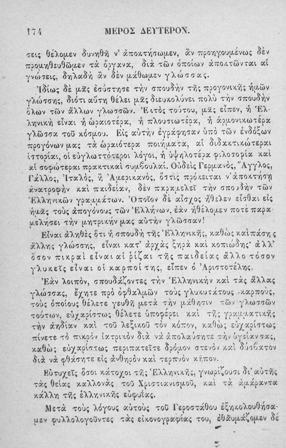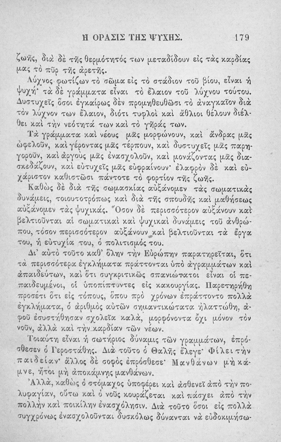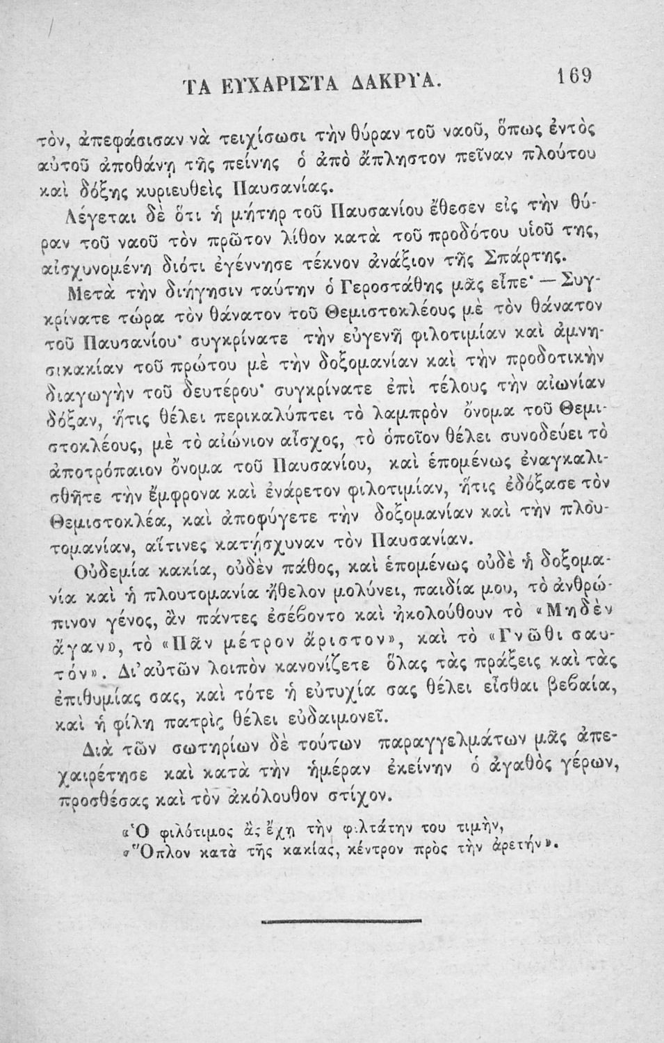 Αναγνωστικό των ανωτέρων τάξεων του Δημοτικού. Το βιβλίο χρησιμοποιήθηκε αρχικά ως ελεύθερο ανάγνωσμα για παιδιά, ενώ στη συνέχεια χρησιμοποιήθηκε ως Αναγνωστικό στο δεύτερο μισό του 19ου αιώνα. Περιέχει αφηγήσεις κυρίως από την αρχαία ελληνική ιστορία και από τη χριστιανική θρησκεία, οι οποίες αποσκοπούν στην εθνική και ηθική καλλιέργεια των μαθητών.