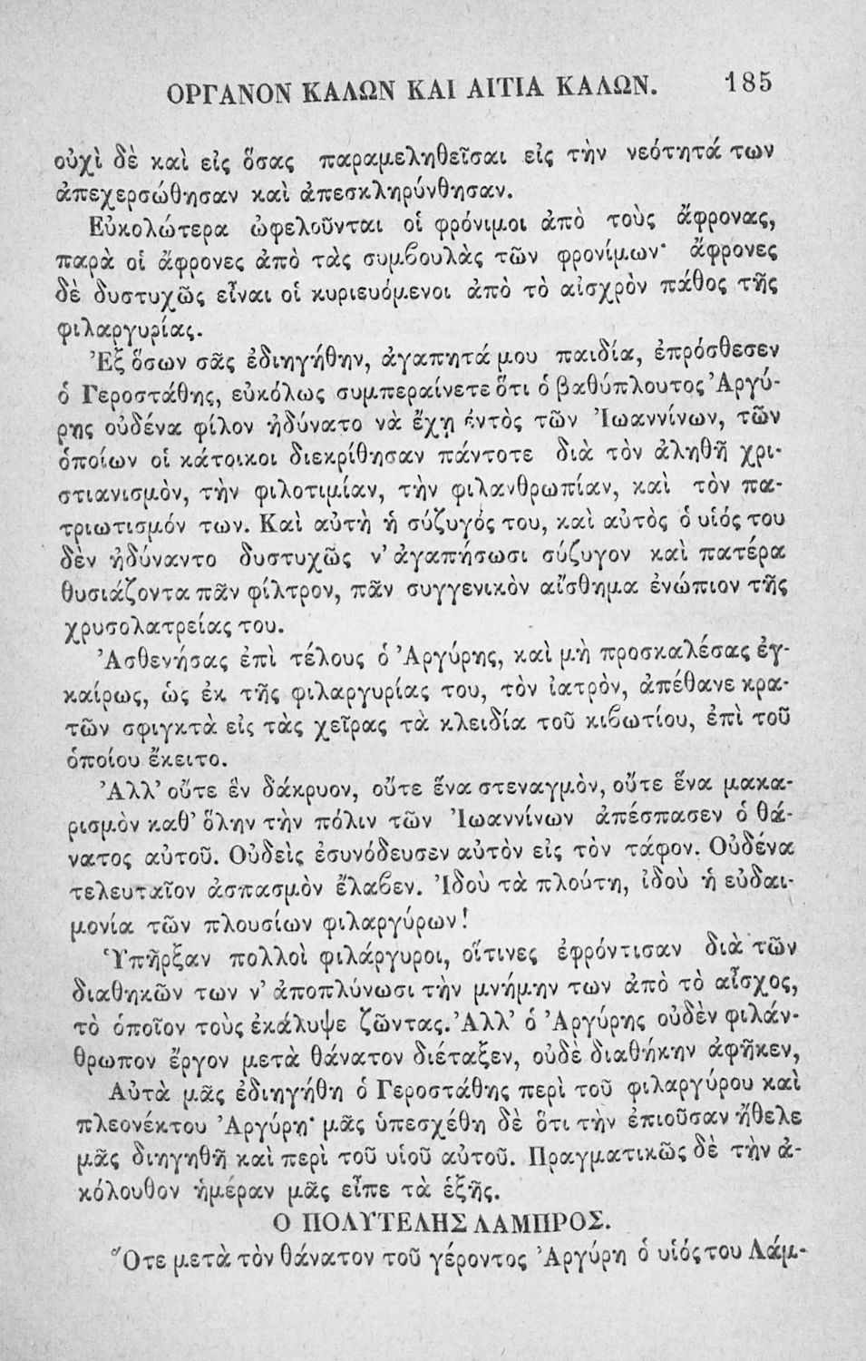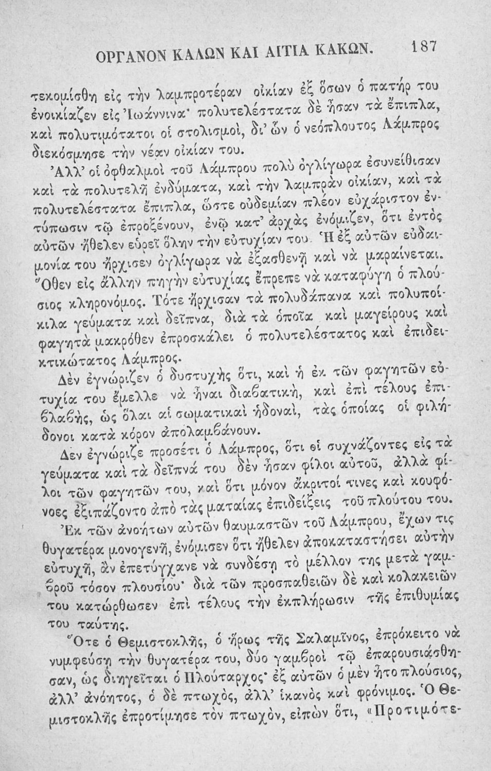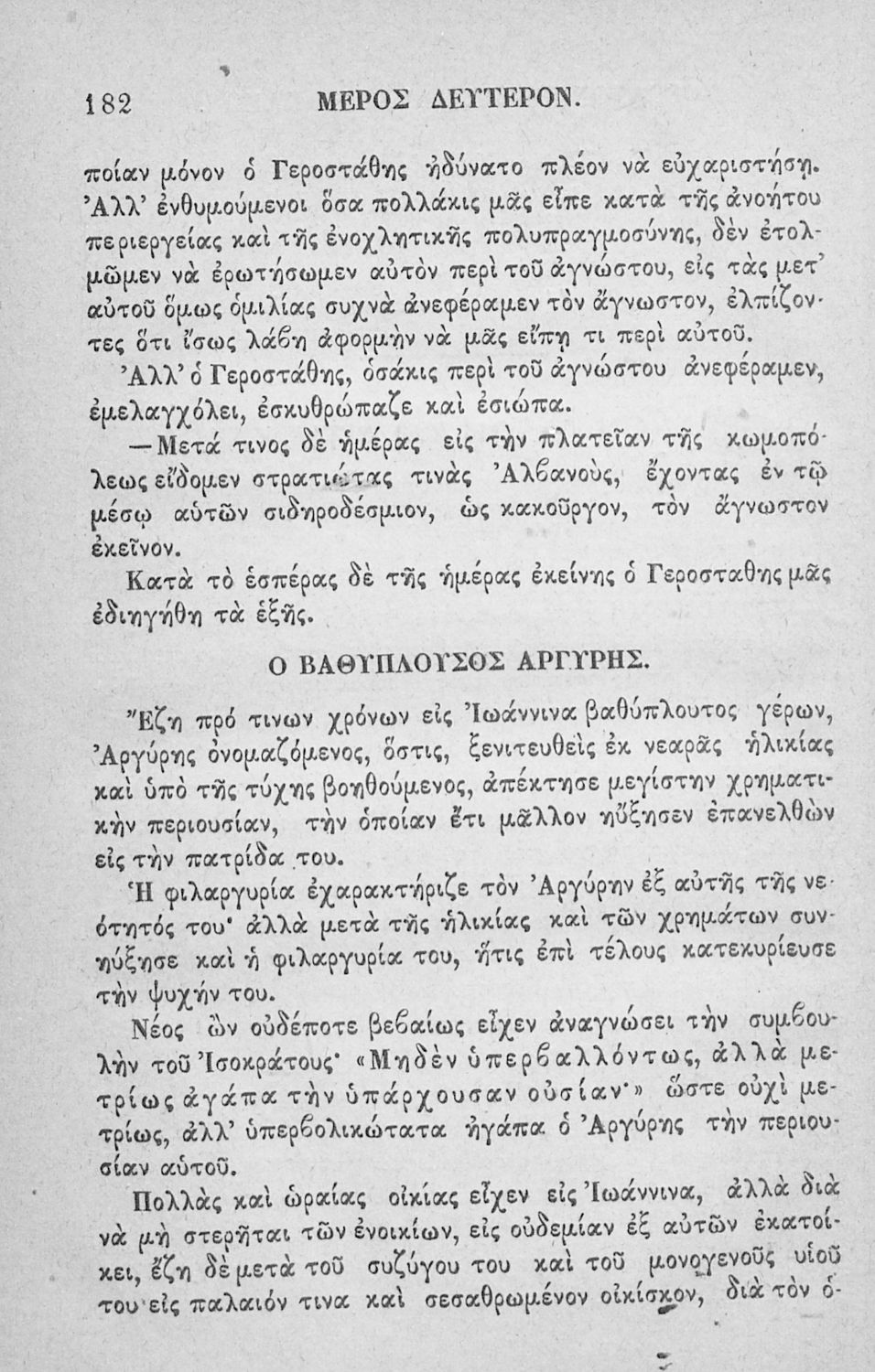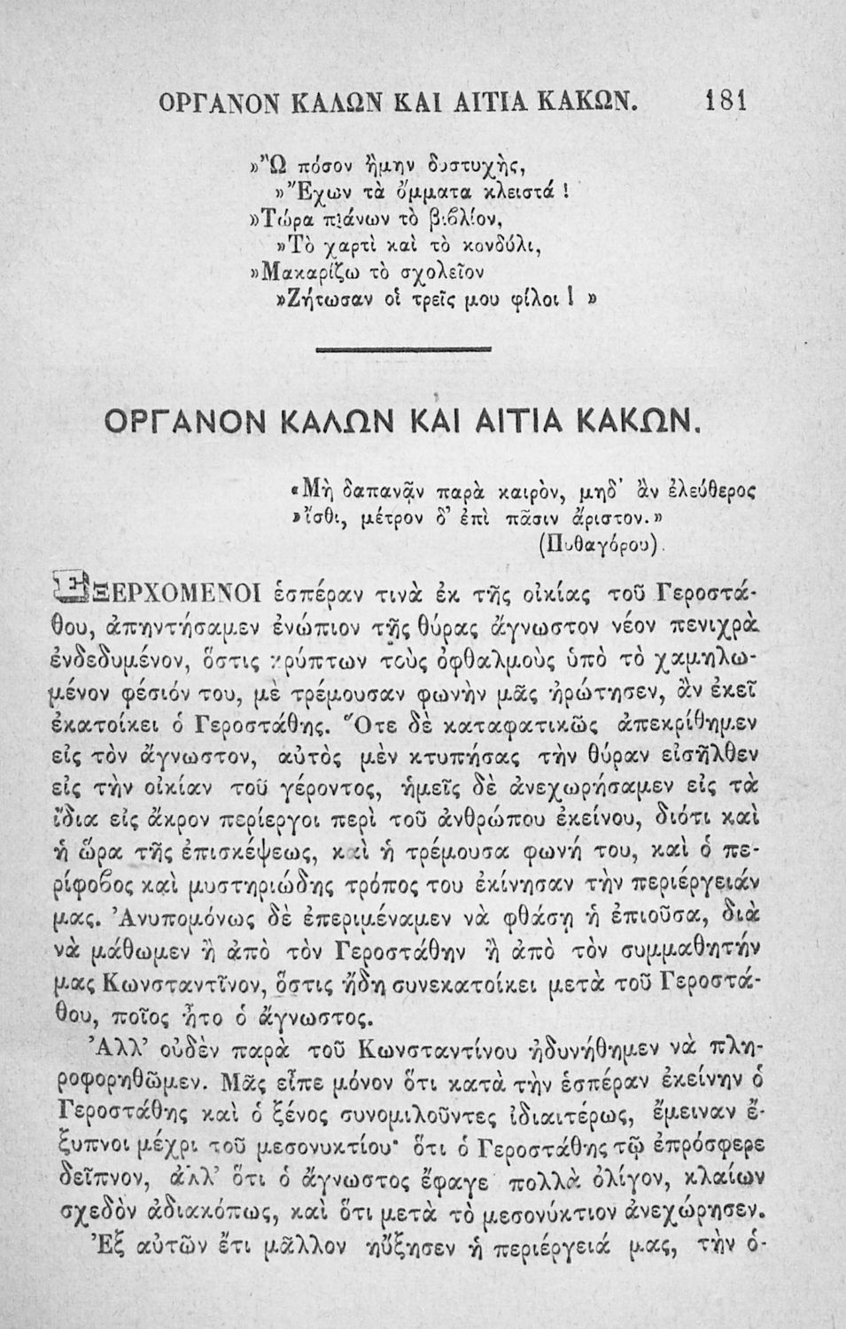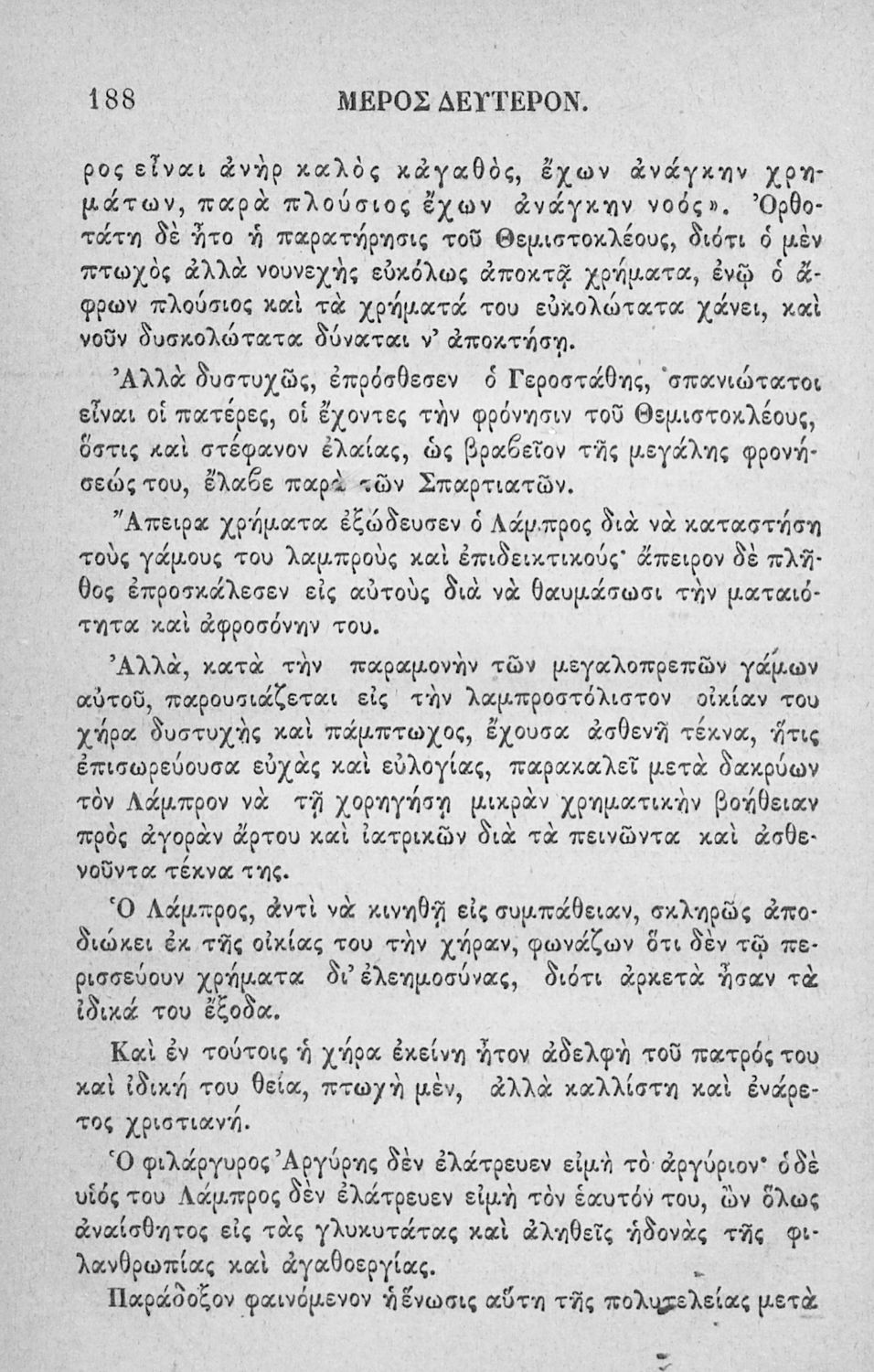 Αναγνωστικό των ανωτέρων τάξεων του Δημοτικού. Το βιβλίο χρησιμοποιήθηκε αρχικά ως ελεύθερο ανάγνωσμα για παιδιά, ενώ στη συνέχεια χρησιμοποιήθηκε ως Αναγνωστικό στο δεύτερο μισό του 19ου αιώνα. Περιέχει αφηγήσεις κυρίως από την αρχαία ελληνική ιστορία και από τη χριστιανική θρησκεία, οι οποίες αποσκοπούν στην εθνική και ηθική καλλιέργεια των μαθητών.