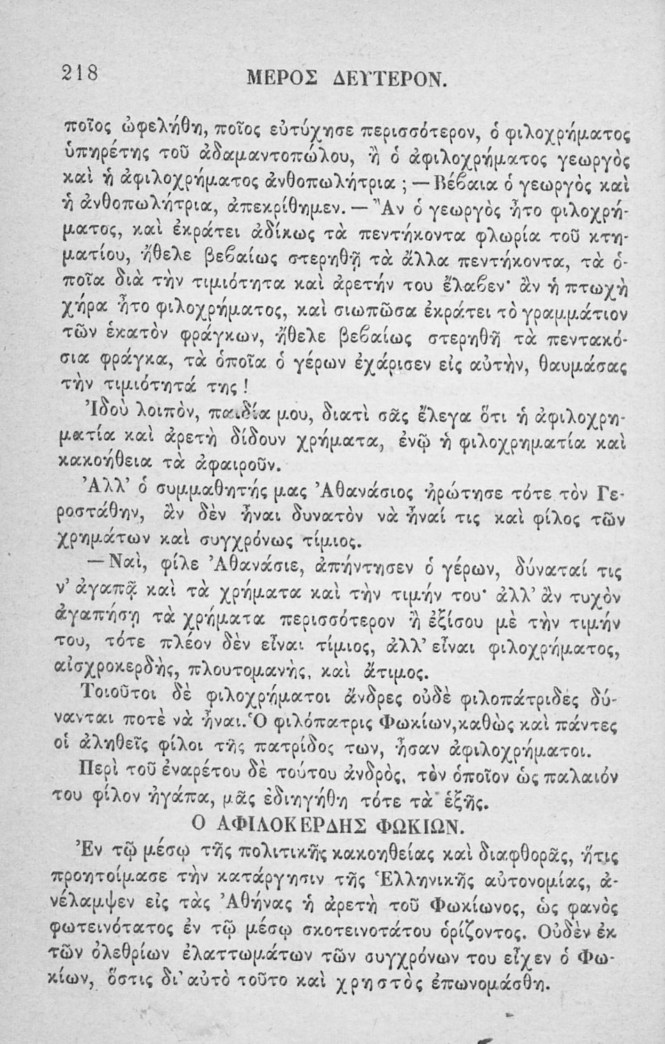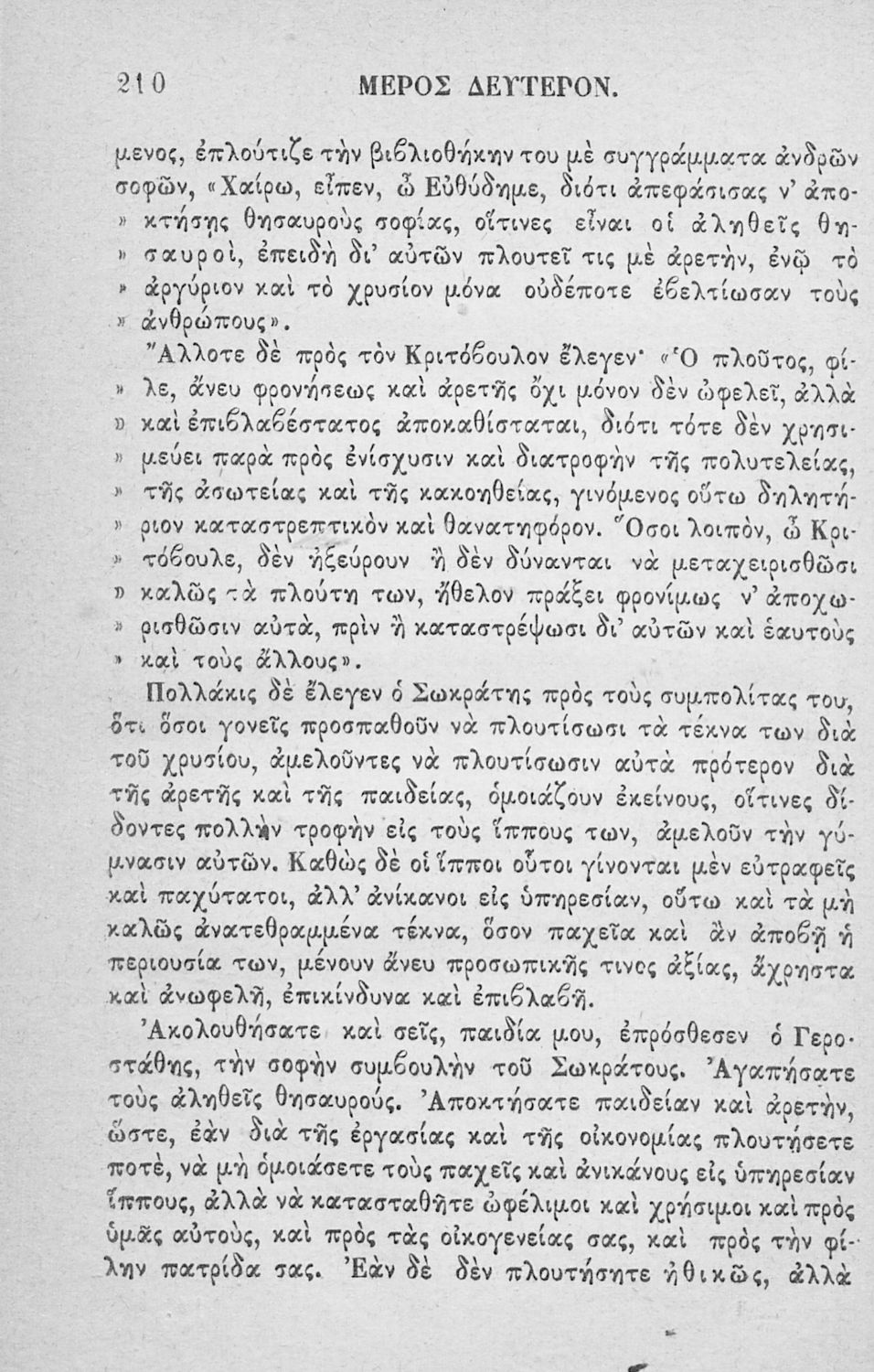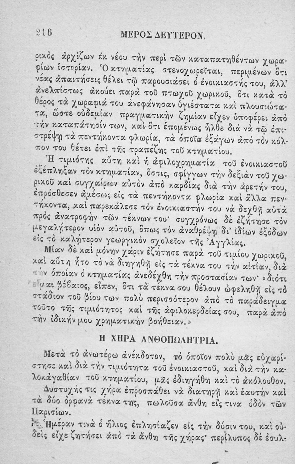 Αναγνωστικό των ανωτέρων τάξεων του Δημοτικού. Το βιβλίο χρησιμοποιήθηκε αρχικά ως ελεύθερο ανάγνωσμα για παιδιά, ενώ στη συνέχεια χρησιμοποιήθηκε ως Αναγνωστικό στο δεύτερο μισό του 19ου αιώνα. Περιέχει ...