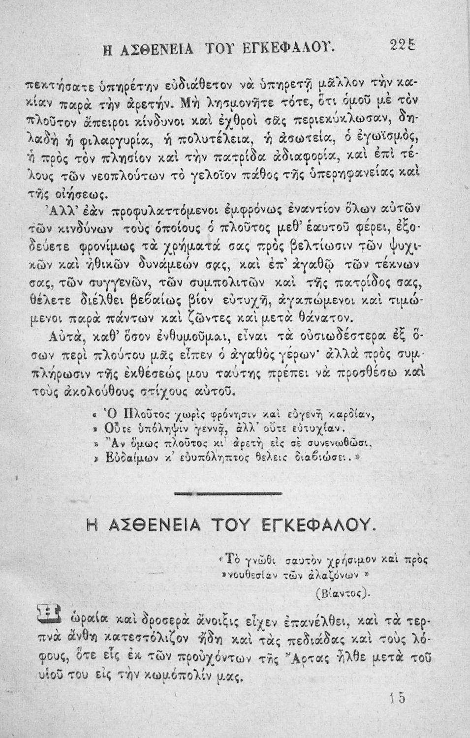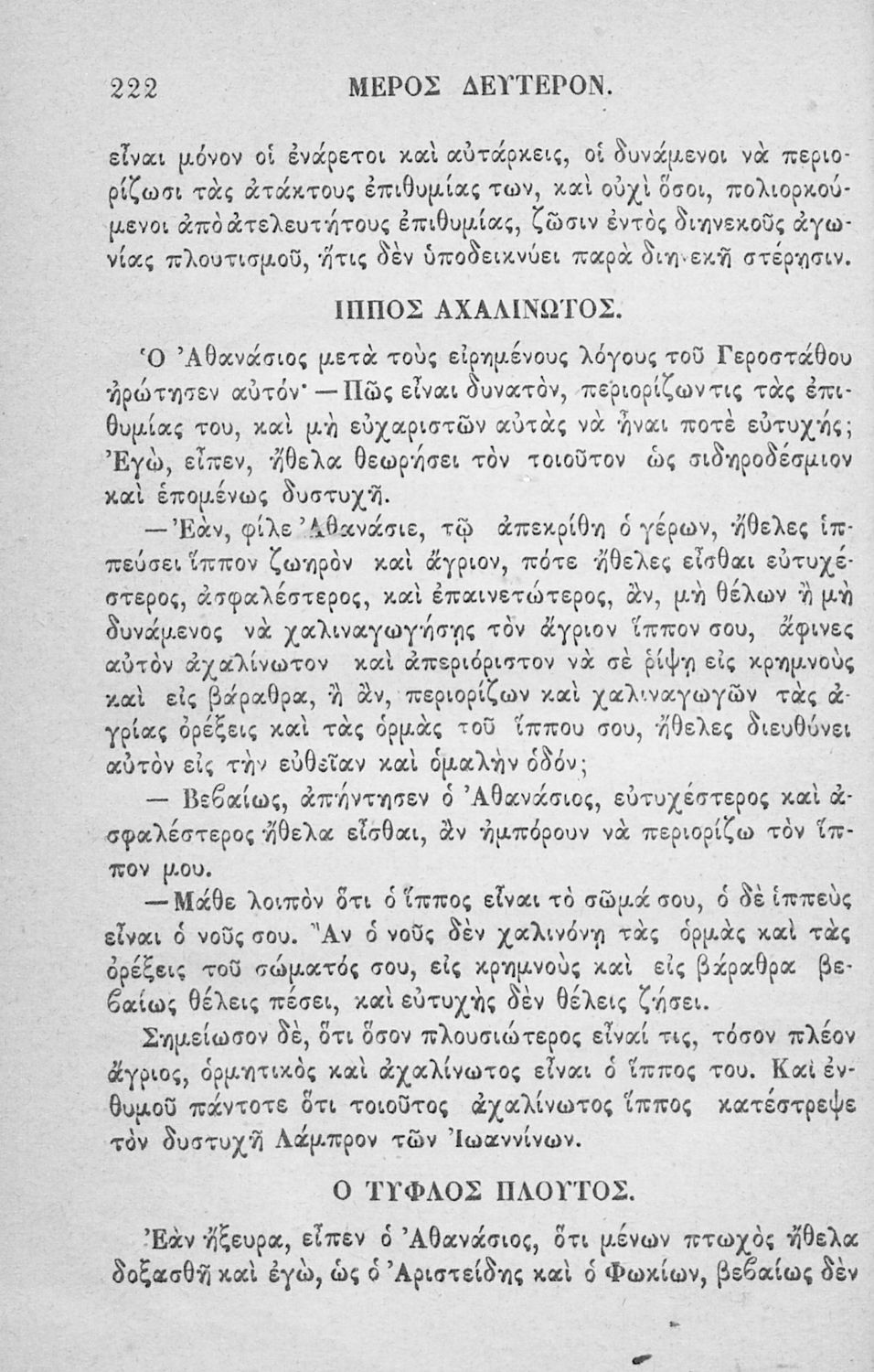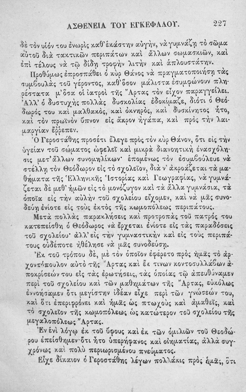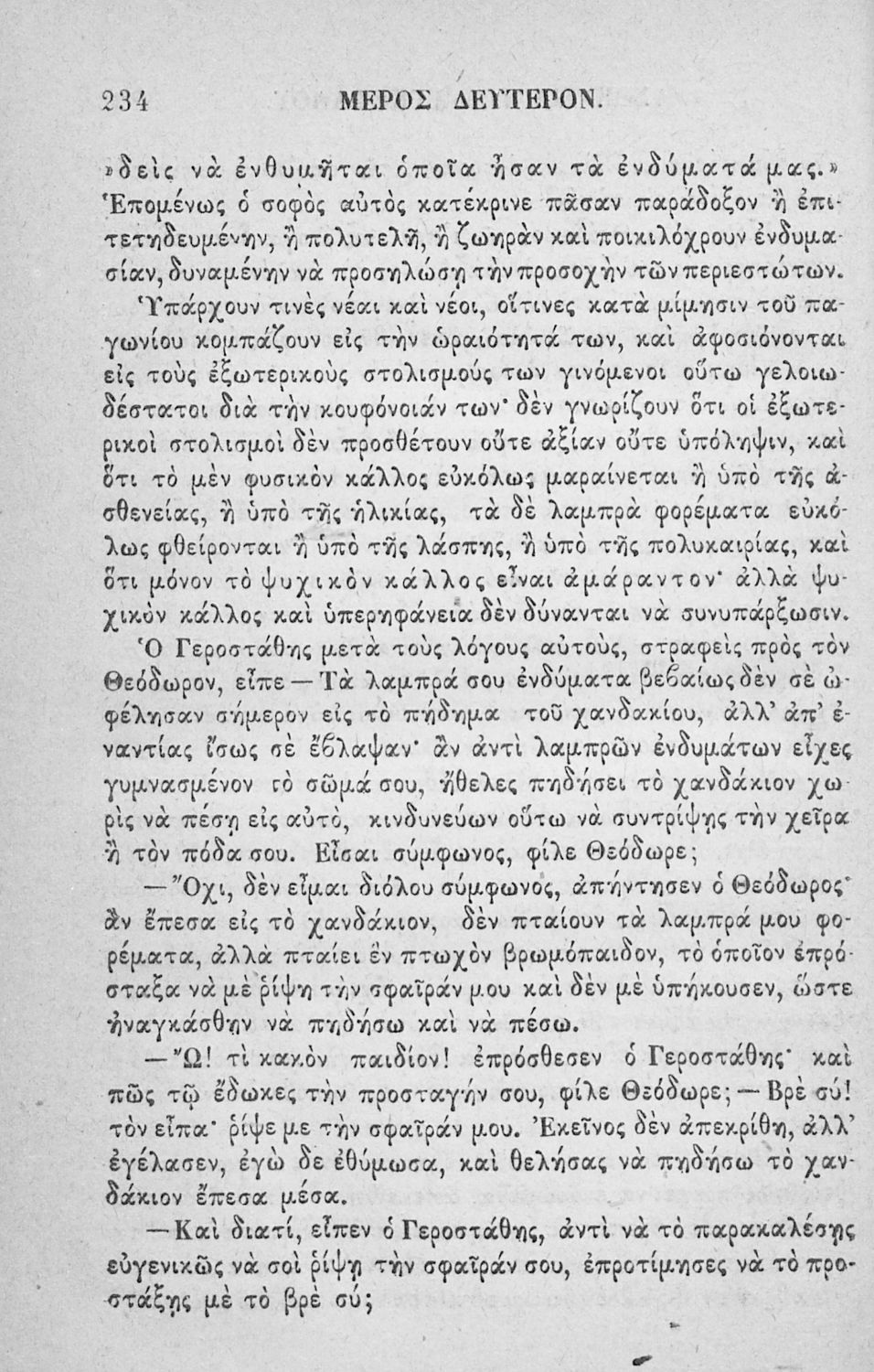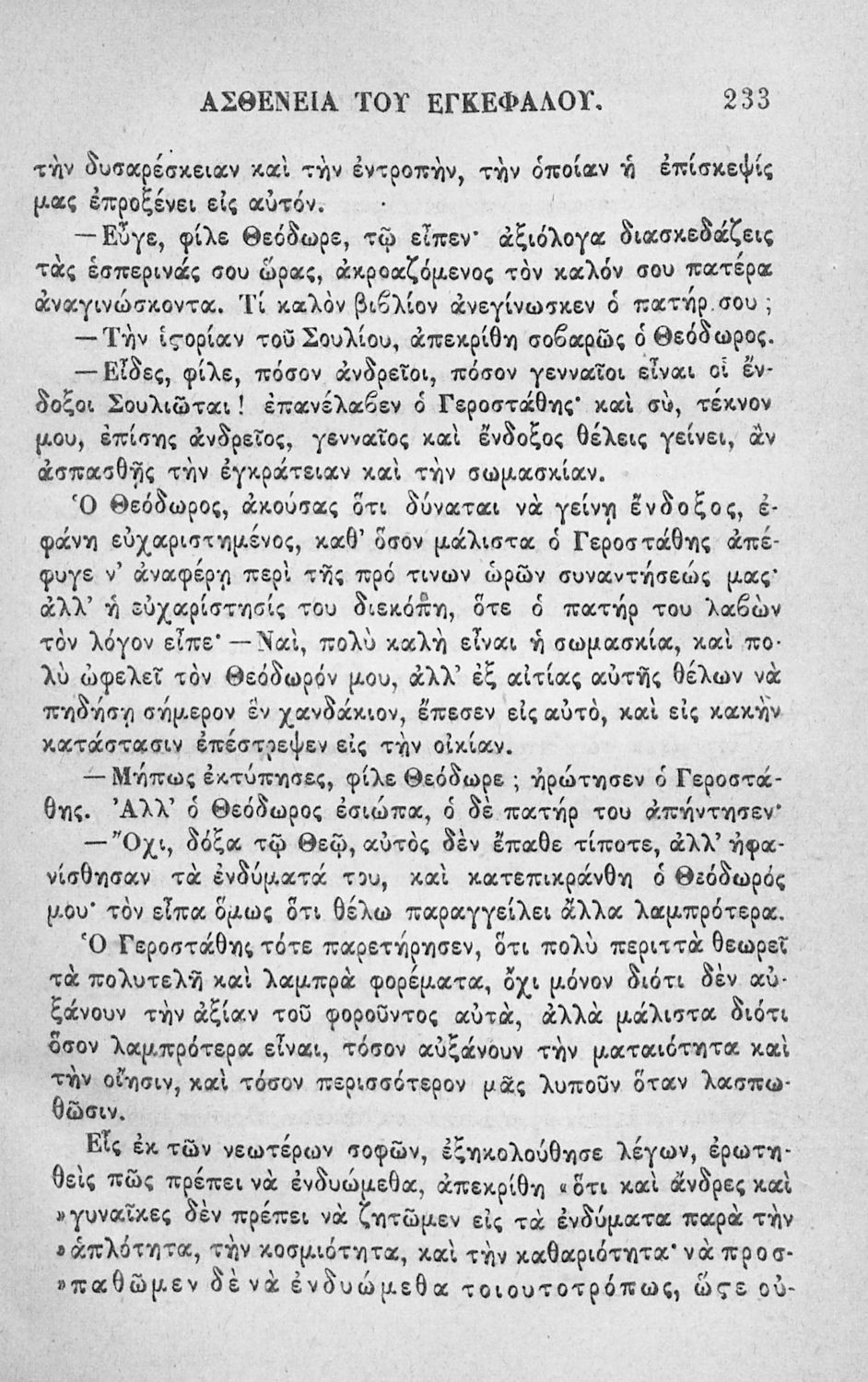 Αναγνωστικό των ανωτέρων τάξεων του Δημοτικού. Το βιβλίο χρησιμοποιήθηκε αρχικά ως ελεύθερο ανάγνωσμα για παιδιά, ενώ στη συνέχεια χρησιμοποιήθηκε ως Αναγνωστικό στο δεύτερο μισό του 19ου αιώνα. Περιέχει αφηγήσεις κυρίως από την αρχαία ελληνική ιστορία και από τη χριστιανική θρησκεία, οι οποίες αποσκοπούν στην εθνική και ηθική καλλιέργεια των μαθητών.