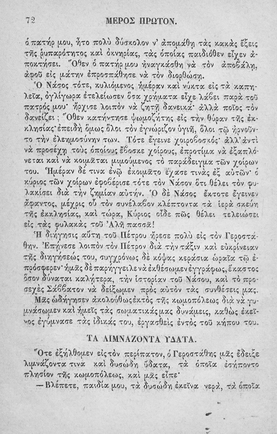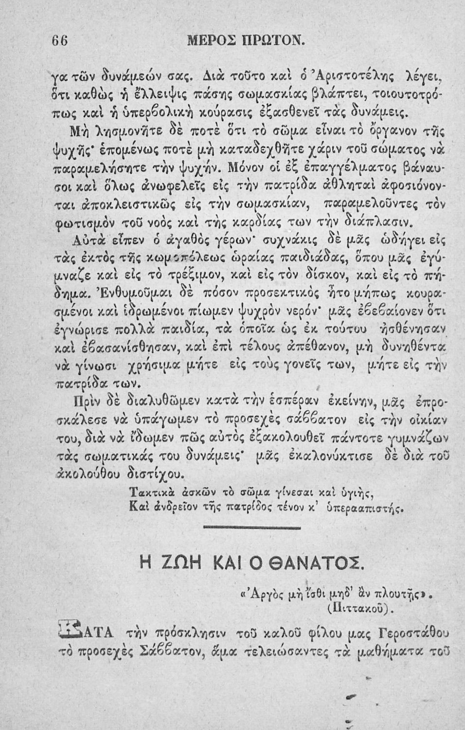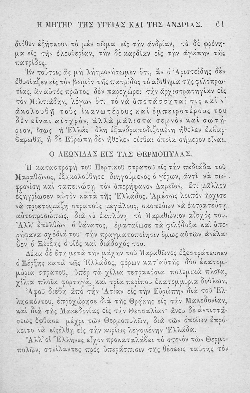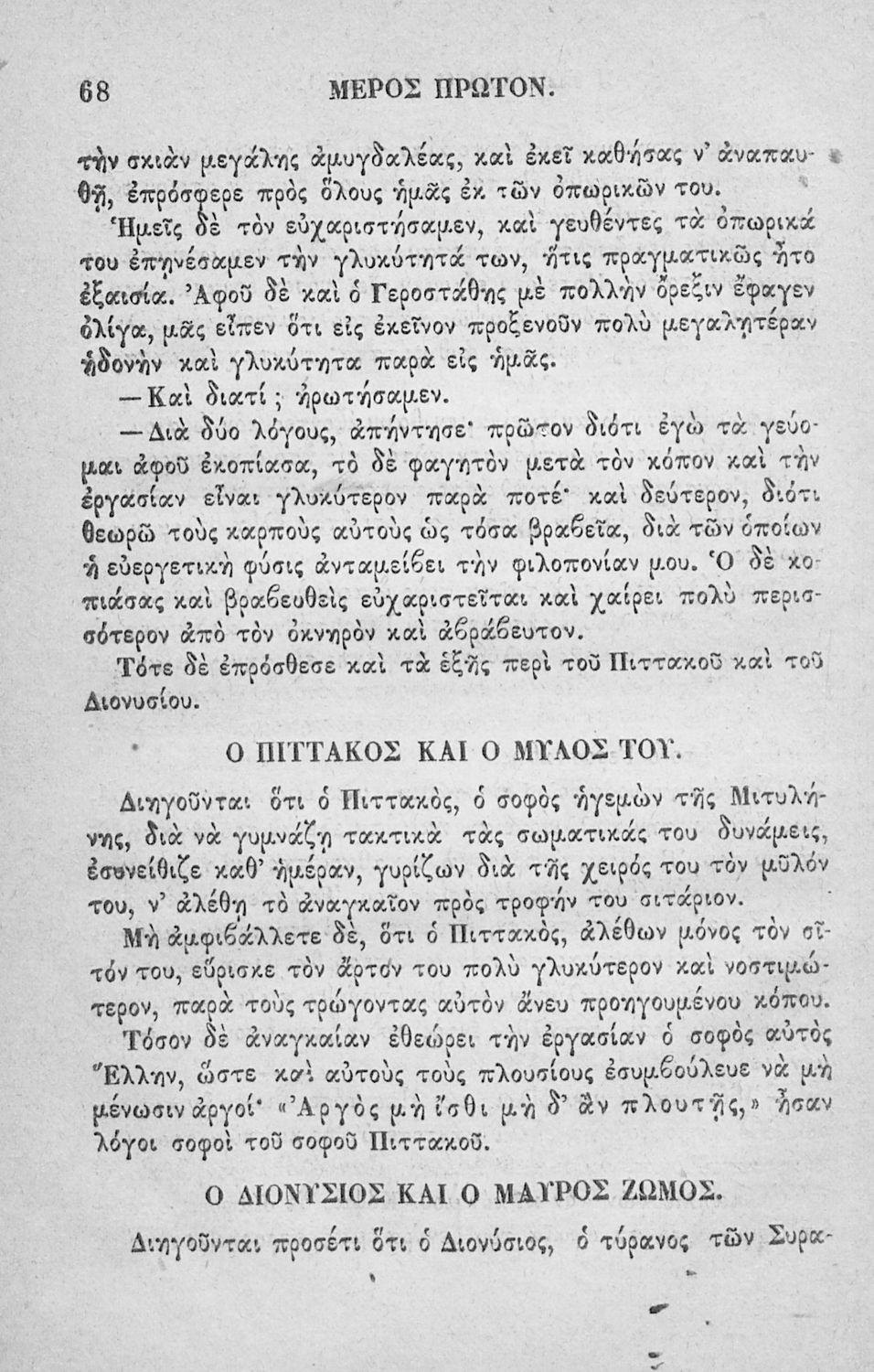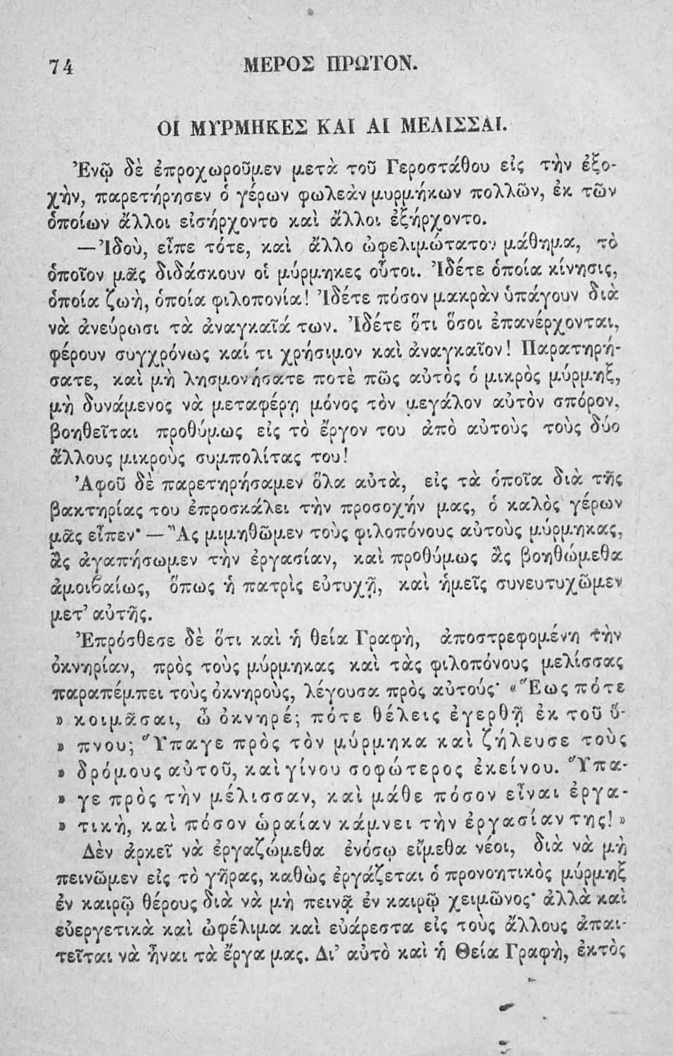 Αναγνωστικό των ανωτέρων τάξεων του Δημοτικού. Το βιβλίο χρησιμοποιήθηκε αρχικά ως ελεύθερο ανάγνωσμα για παιδιά, ενώ στη συνέχεια χρησιμοποιήθηκε ως Αναγνωστικό στο δεύτερο μισό του 19ου αιώνα. Περιέχει αφηγήσεις κυρίως από την αρχαία ελληνική ιστορία και από τη χριστιανική θρησκεία, οι οποίες αποσκοπούν στην εθνική και ηθική καλλιέργεια των μαθητών.