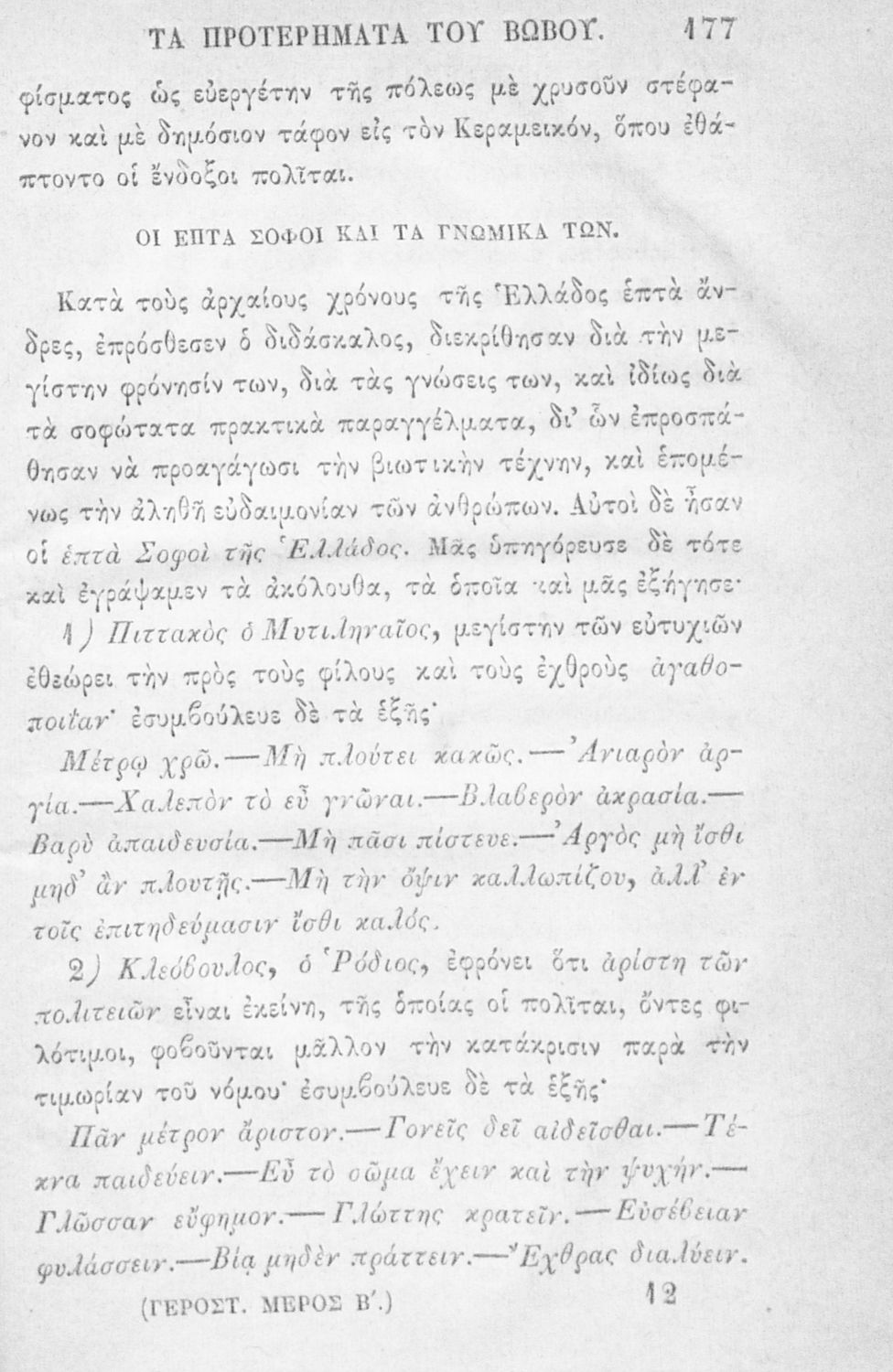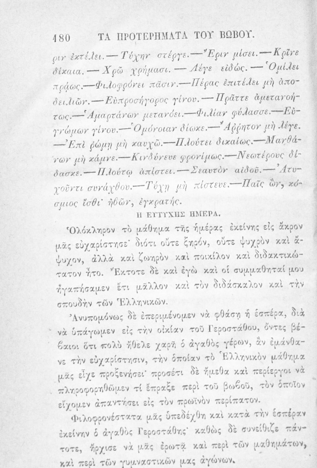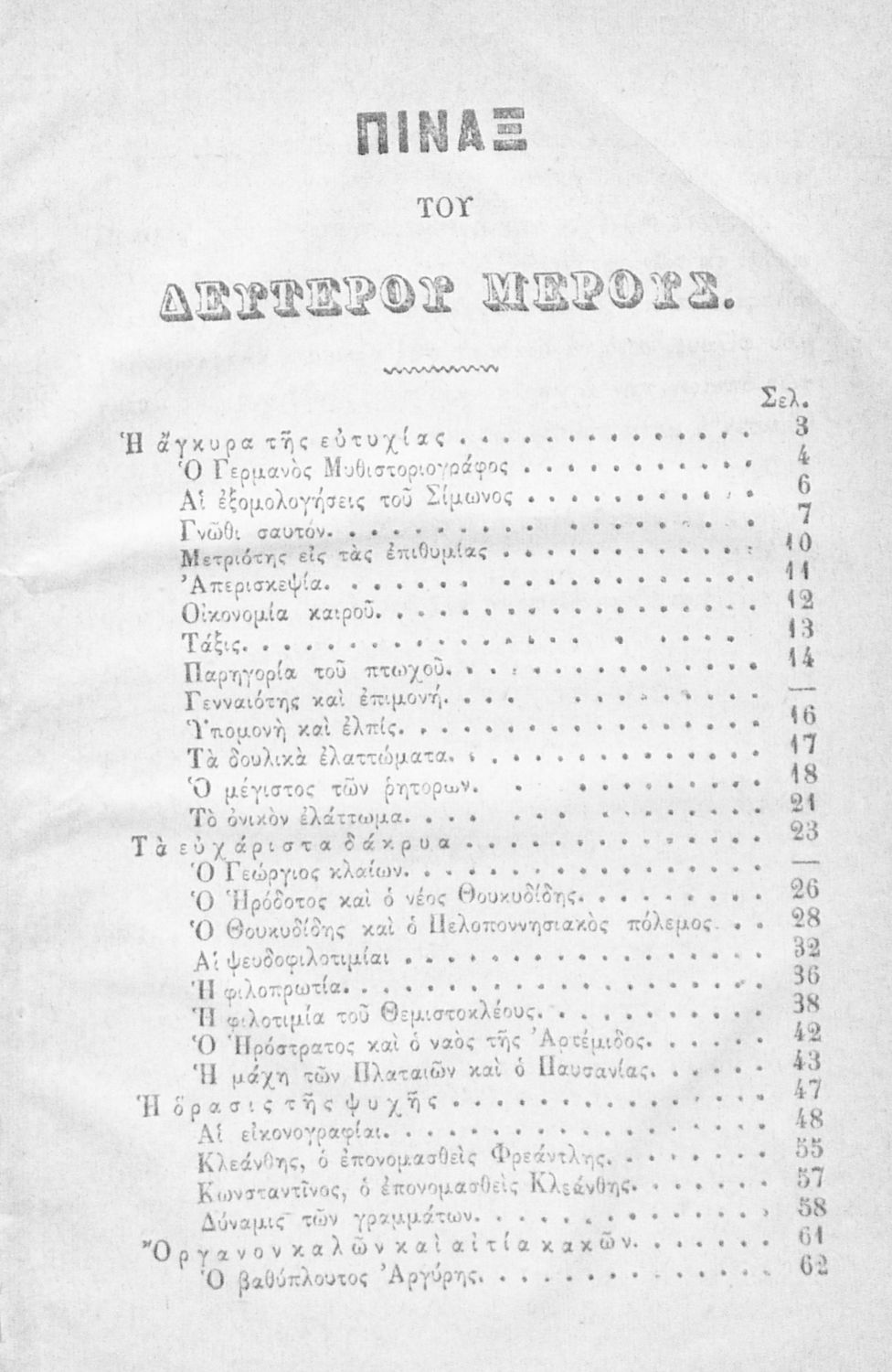 Αναγνωστικό των ανωτέρων τάξεων του Δημοτικού. Το βιβλίο χρησιμοποιήθηκε αρχικά ως ελεύθερο ανάγνωσμα για παιδιά, ενώ στη συνέχεια χρησιμοποιήθηκε ως Αναγνωστικό στο δεύτερο μισό του 19ου αιώνα. Περιέχει αφηγήσεις κυρίως από την αρχαία ελληνική ιστορία και από τη χριστιανική θρησκεία, οι οποίες αποσκοπούν στην εθνική και ηθική καλλιέργεια των μαθητών.