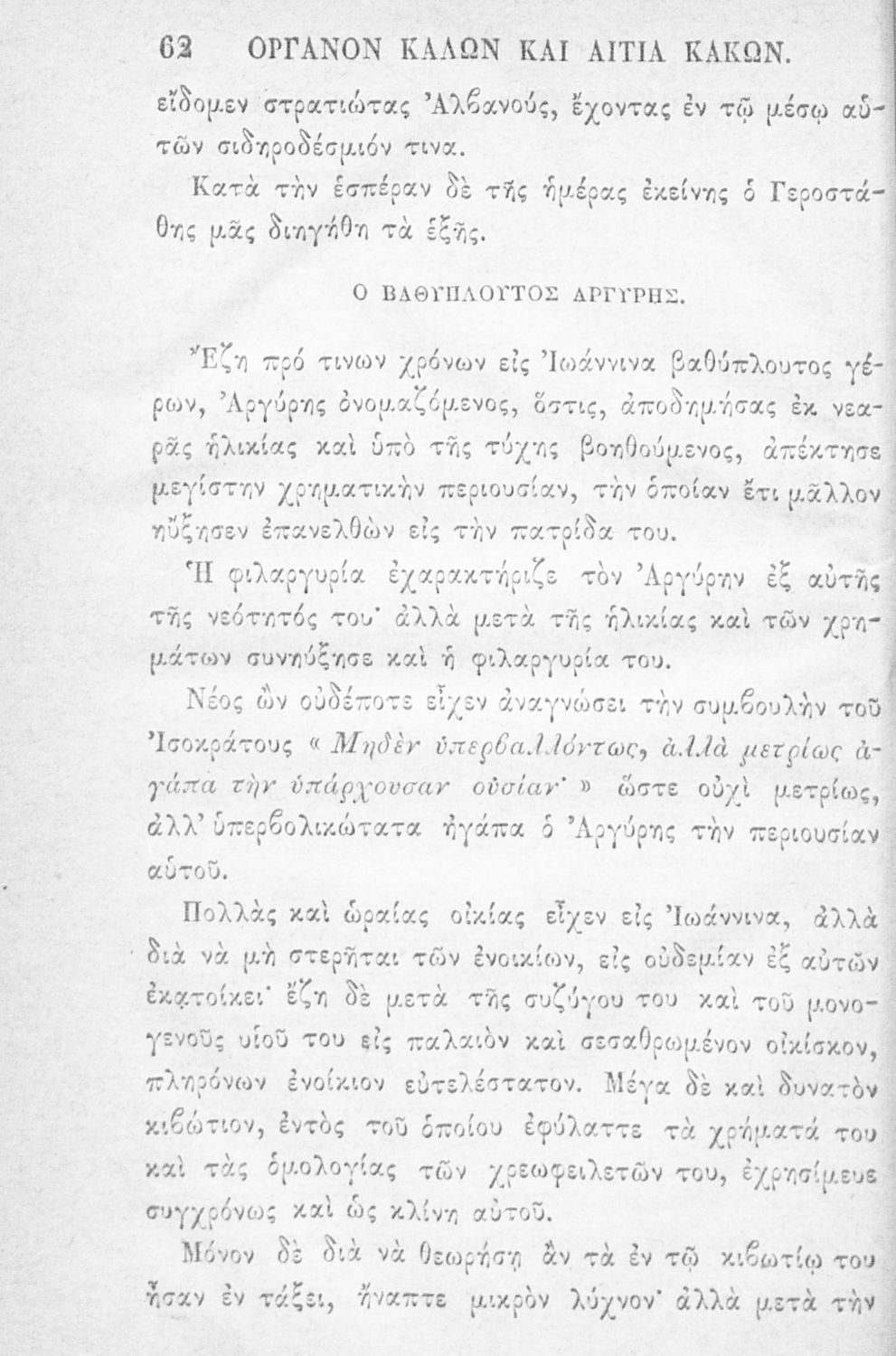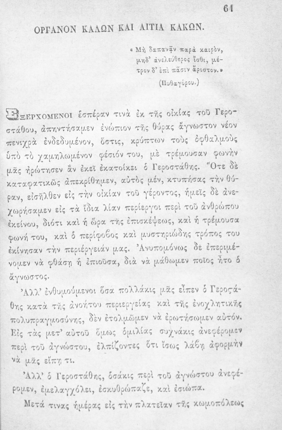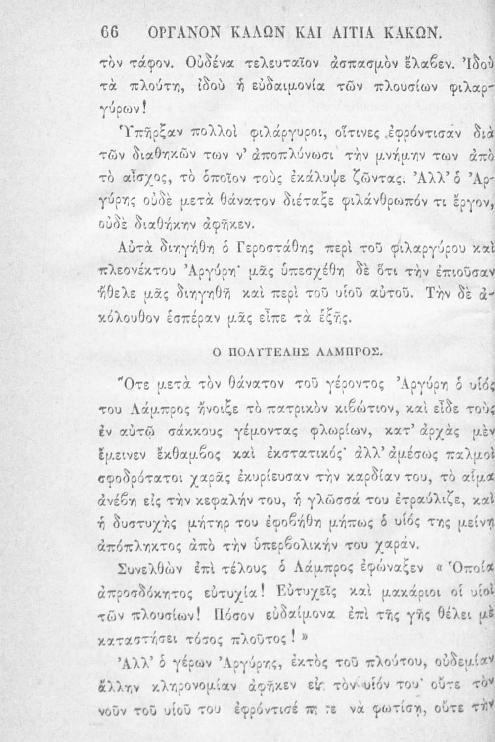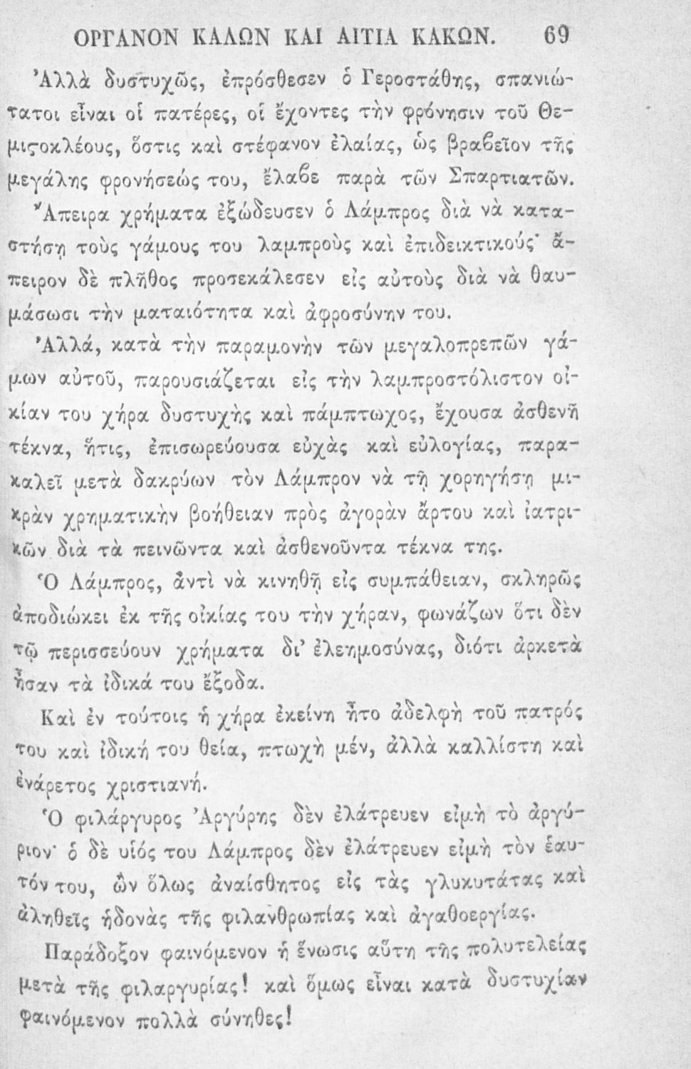 Αναγνωστικό των ανωτέρων τάξεων του Δημοτικού. Το βιβλίο χρησιμοποιήθηκε αρχικά ως ελεύθερο ανάγνωσμα για παιδιά, ενώ στη συνέχεια χρησιμοποιήθηκε ως Αναγνωστικό στο δεύτερο μισό του 19ου αιώνα. Περιέχει αφηγήσεις κυρίως από την αρχαία ελληνική ιστορία και από τη χριστιανική θρησκεία, οι οποίες αποσκοπούν στην εθνική και ηθική καλλιέργεια των μαθητών.