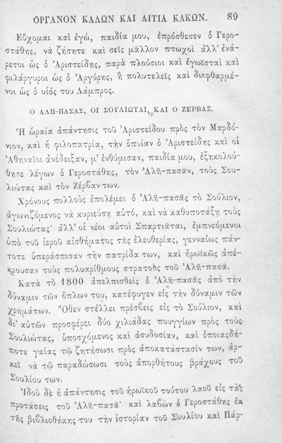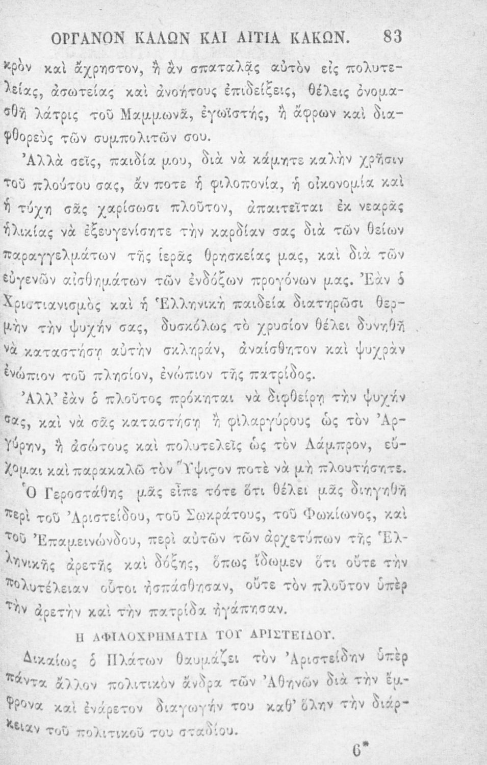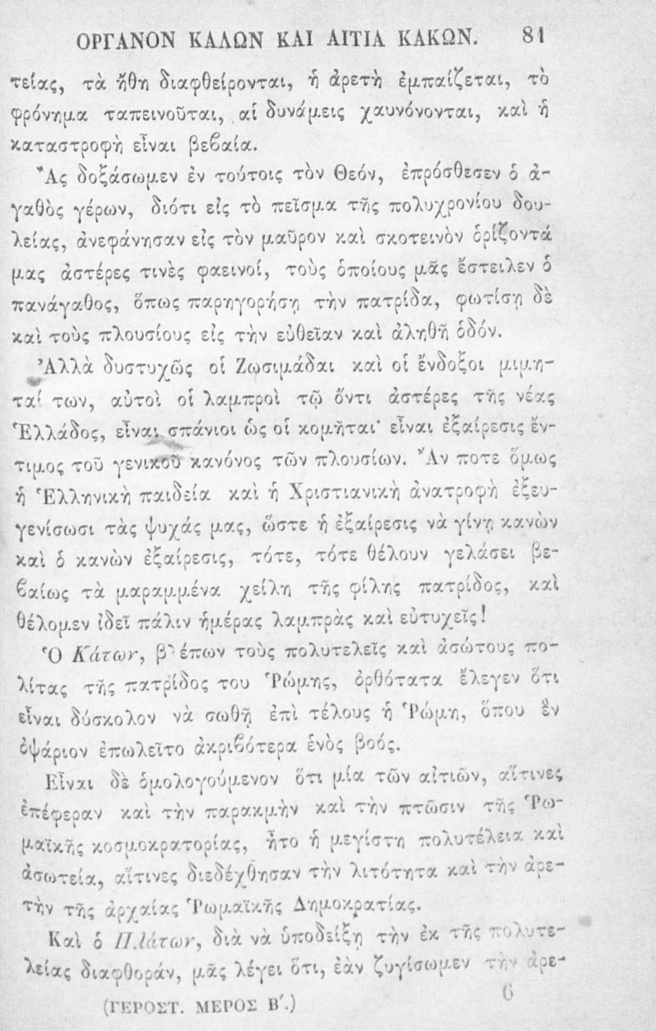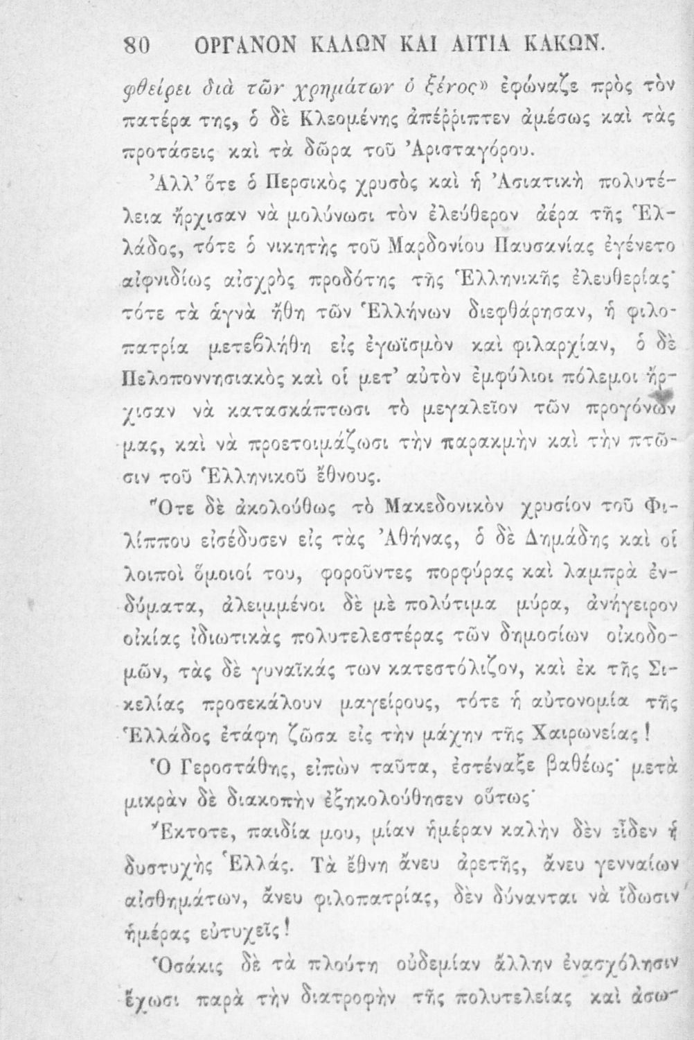 Αναγνωστικό των ανωτέρων τάξεων του Δημοτικού. Το βιβλίο χρησιμοποιήθηκε αρχικά ως ελεύθερο ανάγνωσμα για παιδιά, ενώ στη συνέχεια χρησιμοποιήθηκε ως Αναγνωστικό στο δεύτερο μισό του 19ου αιώνα. Περιέχει αφηγήσεις κυρίως από την αρχαία ελληνική ιστορία και από τη χριστιανική θρησκεία, οι οποίες αποσκοπούν στην εθνική και ηθική καλλιέργεια των μαθητών.