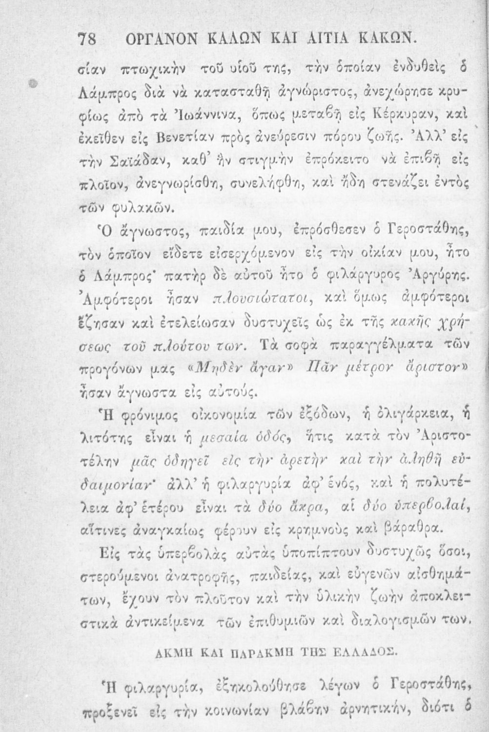 Αναγνωστικό των ανωτέρων τάξεων του Δημοτικού. Το βιβλίο χρησιμοποιήθηκε αρχικά ως ελεύθερο ανάγνωσμα για παιδιά, ενώ στη συνέχεια χρησιμοποιήθηκε ως Αναγνωστικό στο δεύτερο μισό του 19ου αιώνα. Περιέχει ...