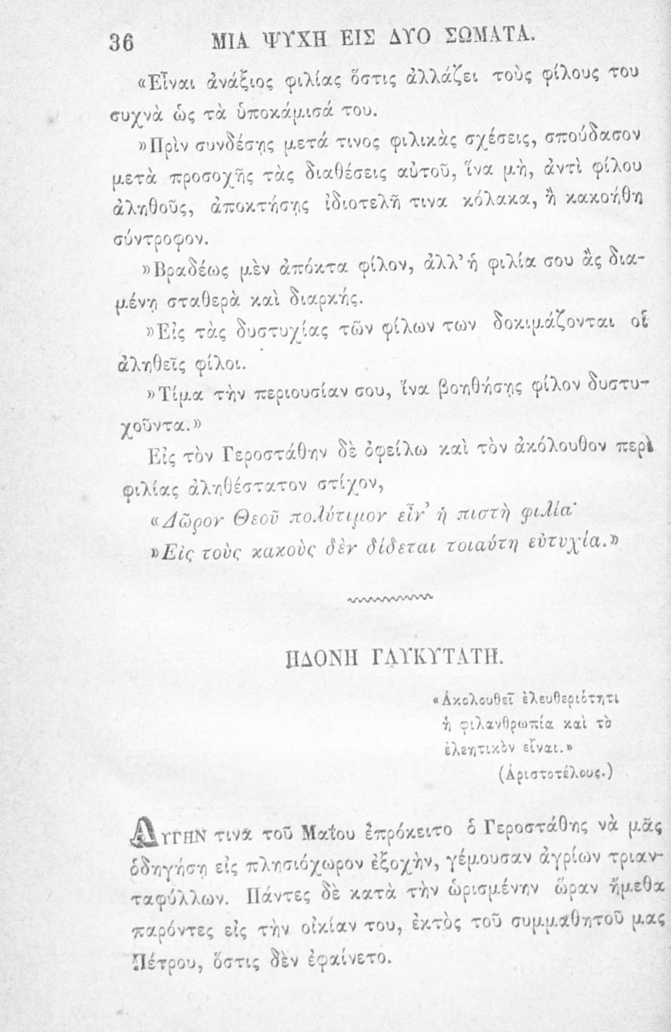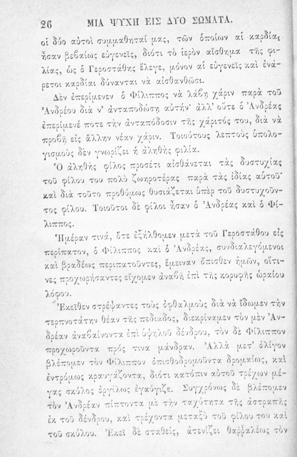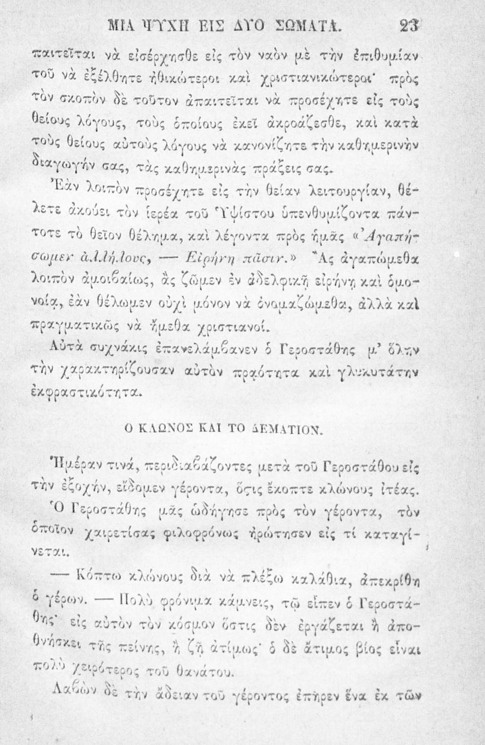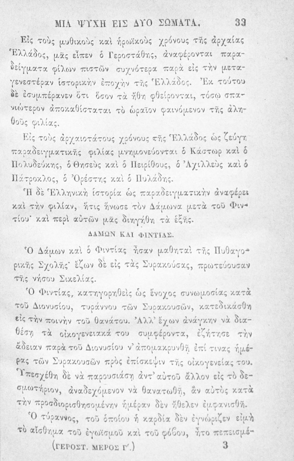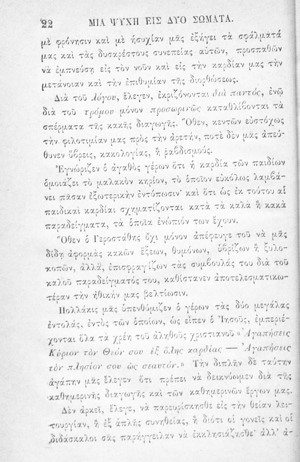 520 ## _aΑναγνωστικό των ανωτέρων τάξεων του Δημοτικού. Το βιβλίο χρησιμοποιήθηκε αρχικά ως ελεύθερο ανάγνωσμα για παιδιά, ενώ στη συνέχεια χρησιμοποιήθηκε ως Αναγνωστικό στο δεύτερο μισό του 19ου αιώνα. Περιέχει αφηγήσεις κυρίως από την αρχαία ελληνική ιστορία και από τη χριστιανική θρησκεία, οι οποίες αποσκοπούν στην εθνική και ηθική καλλιέργεια των μαθητών.