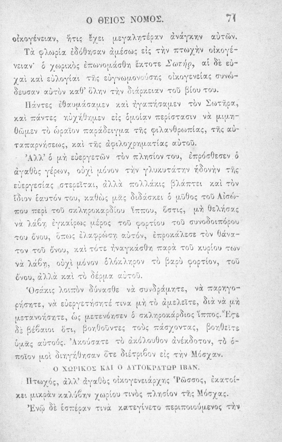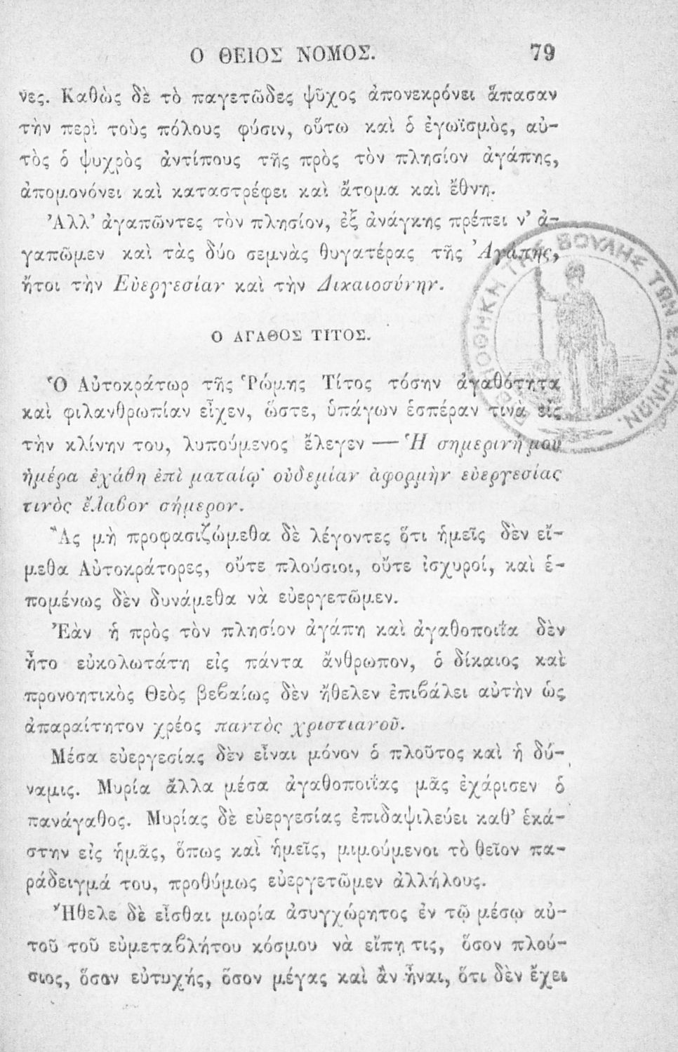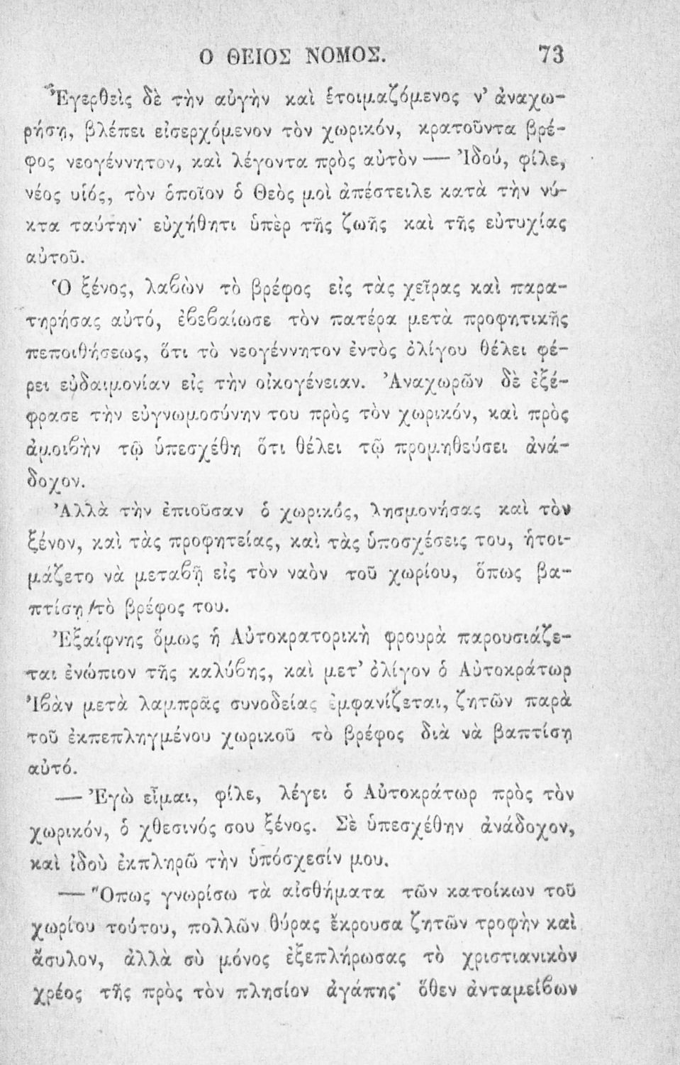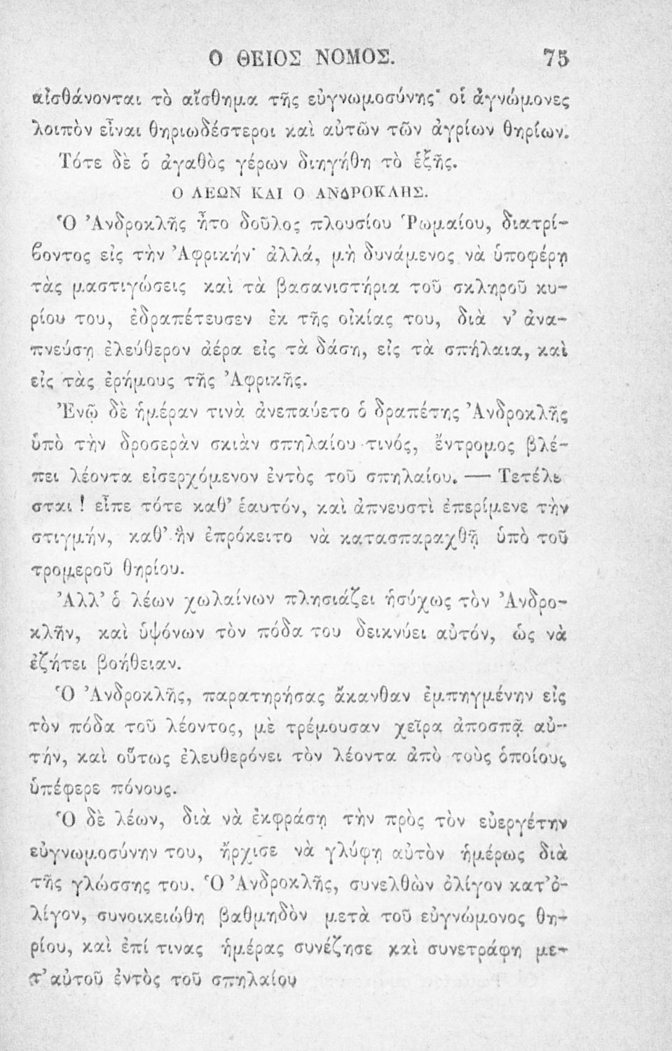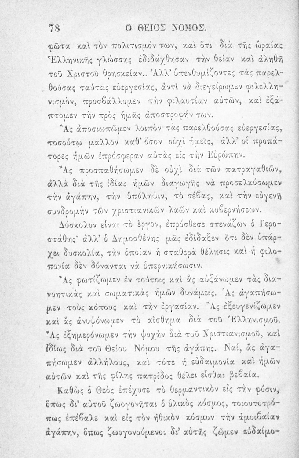 520 ## _aΑναγνωστικό των ανωτέρων τάξεων του Δημοτικού. Το βιβλίο χρησιμοποιήθηκε αρχικά ως ελεύθερο ανάγνωσμα για παιδιά, ενώ στη συνέχεια χρησιμοποιήθηκε ως Αναγνωστικό στο δεύτερο μισό του 19ου αιώνα. Περιέχει αφηγήσεις κυρίως από την αρχαία ελληνική ιστορία και από τη χριστιανική θρησκεία, οι οποίες αποσκοπούν στην εθνική και ηθική καλλιέργεια των μαθητών.